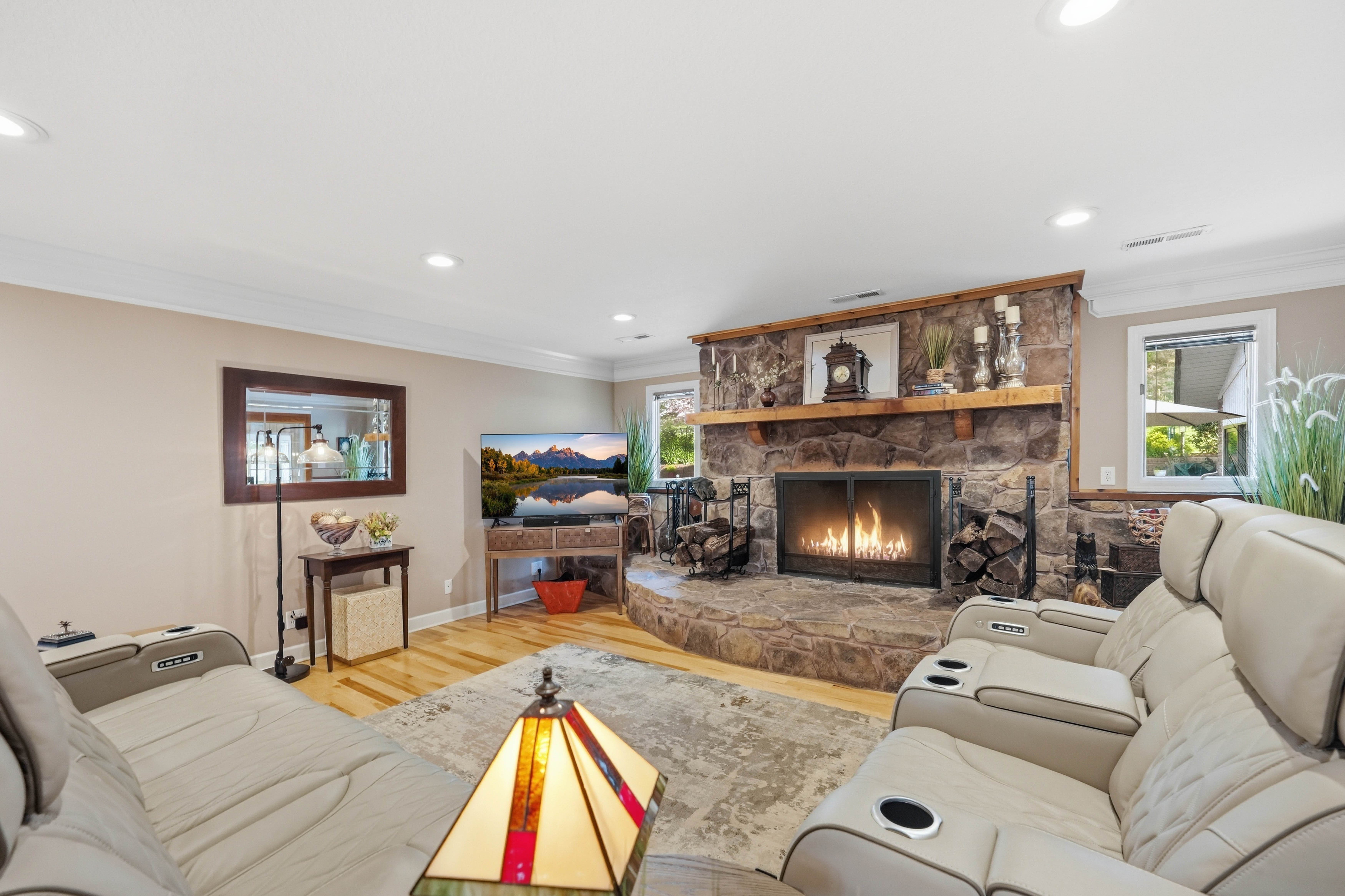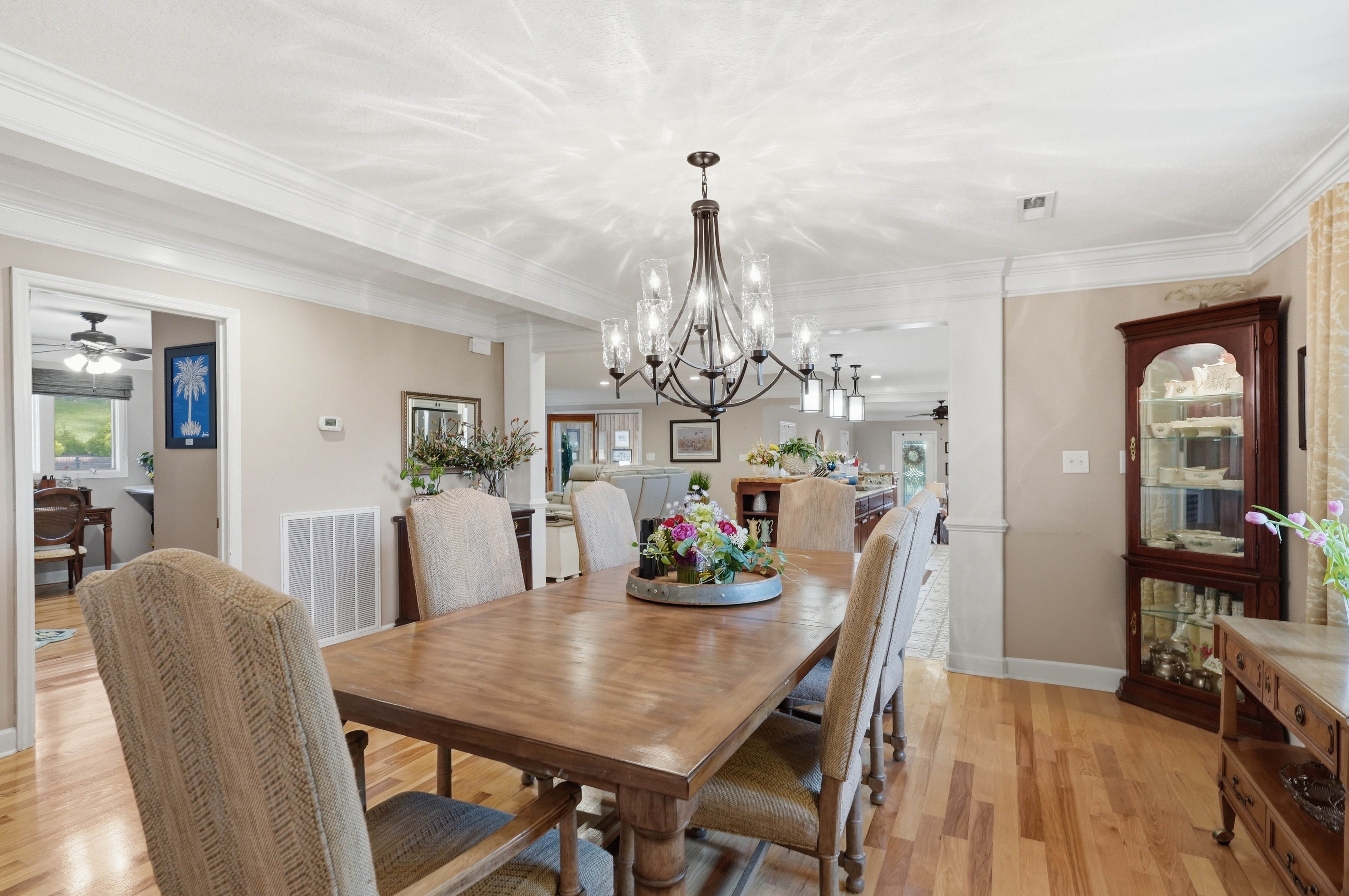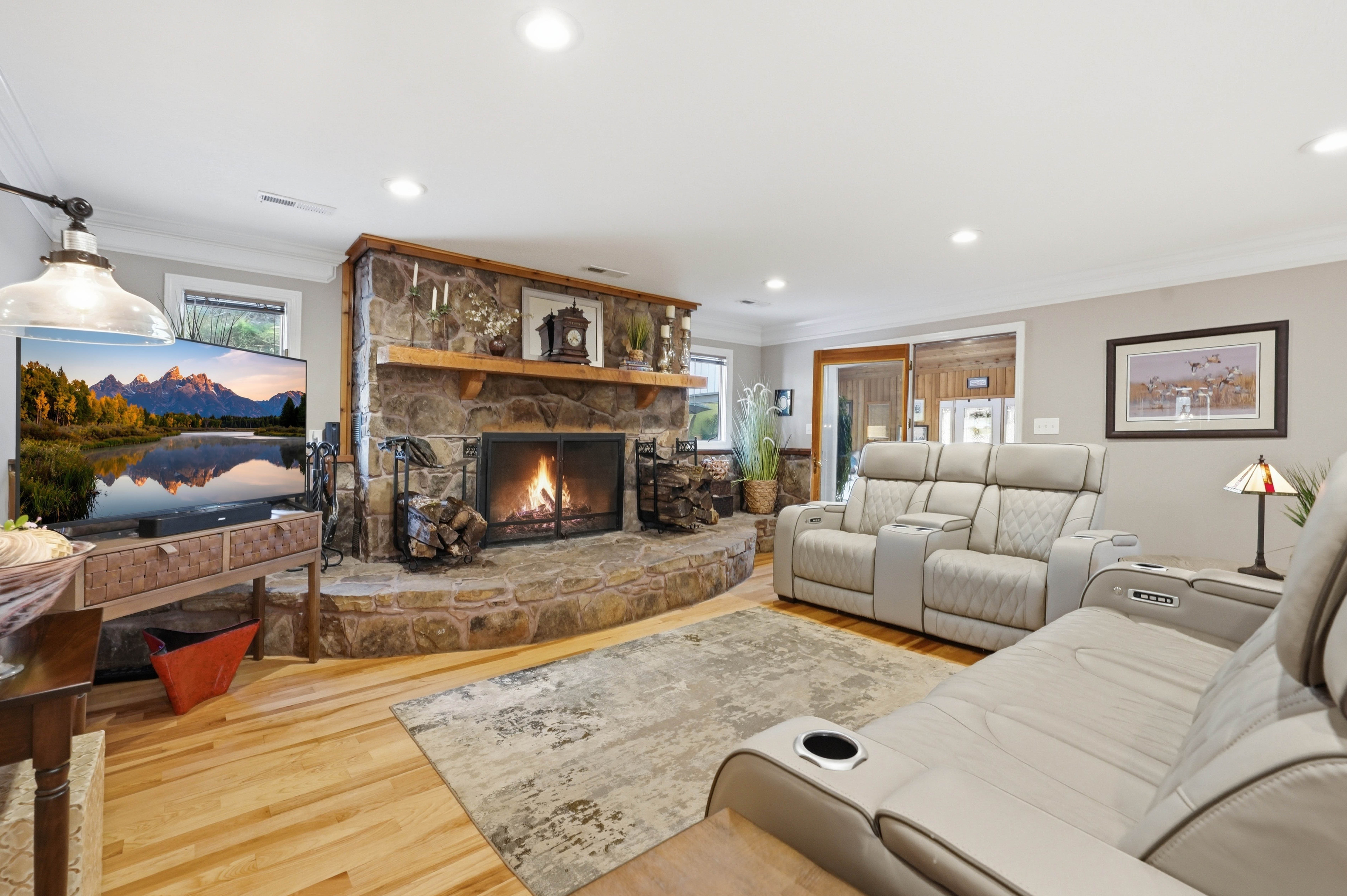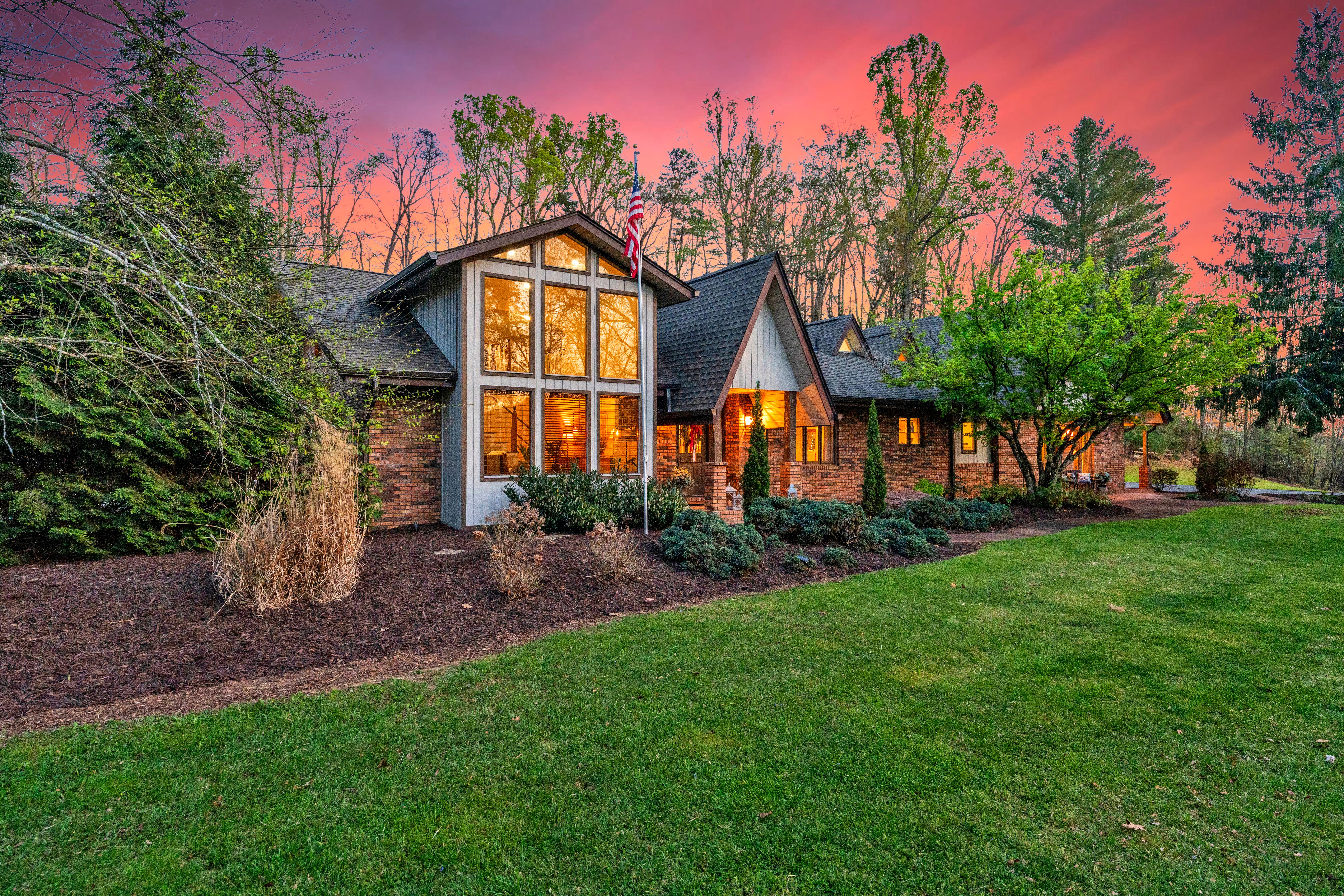 Spectacular estate resting on 8.97 acres, surrounded by scenic Appalachian Mountain beauty, mature landscaping, wooded privacy, two tranquil ponds, and picturesque views of the Holston River from the front porch! As you approach, a winding driveway leads you to the residence, showcasing the home's distinctive architecture and the unique blend of exterior finishes that set it apart. Offering over 7,000 square feet of living space, the home combines scale with striking natural surroundings. This exceptional property truly offers it all, designed with both luxury and entertaining in mind. Defined by strategically placed soaring ceilings that invite an abundance of natural light, the open floor plan spans the entire home from the moment you enter. The seamless flow creates a sense of openness, warmth, and effortless connection throughout. Living in Northeast Tennessee means experiencing the beauty of every season. On cooler evenings, the den's dramatic full-wall fireplace becomes the perfect gathering place, relaxing by the fire, enjoying the gentle crackle, and sipping hot chocolate or your favorite beverage. Flowing seamlessly into a second living area is an extraordinary sunroom. This show-stopping space features cathedral ceilings, a second kitchen/bar area, rich brick flooring and exposed brick walls. Summer truly shines here, centered around the incredible resort-style pool retreat. If you love to entertain, this setting is second to none. The waterfall serves as a stunning focal point, adding both serenity and visual appeal to the outdoor space. End the day gathered around the fire pit on a cool evening, the perfect way to unwind. Thoughtfully designed for multi-generational living, the home features two kitchens, two laundry areas, and flexible spaces that can easily accommodate private living quarters. It offers 4 bedrooms and 4 full baths, including a main-level primary suite and an additional primary option upstairs. Meticulously maintained with all the work already completed. Featuring a brand-new saltwater pool with decking and waterfall, beautifully remodeled baths, a new roof, gutters, HVAC, appliances and so much more. Select furnishings may be negotiable with an acceptable offer. Beyond its appeal as a private estate, this property offers investment potential. Ideally suited for short-term rentals, with ample acreage for additional cabins or homes, it also presents exciting possibilities as an event venue. Conveniently located in the Tri-Cities, offering easy access to a wide variety of dining, shopping, top-rated schools, parks, medical facilities, the airport, Bristol Motor Speedway, Hard Rock Casino, Bristol's birthplace of country music, Abingdon's vibrant arts scene, and endless outdoor recreation including golf, hiking, biking, boating, and fishing for outdoor enthusiasts. Turn-key, resort-style living ready to welcome its next owner!