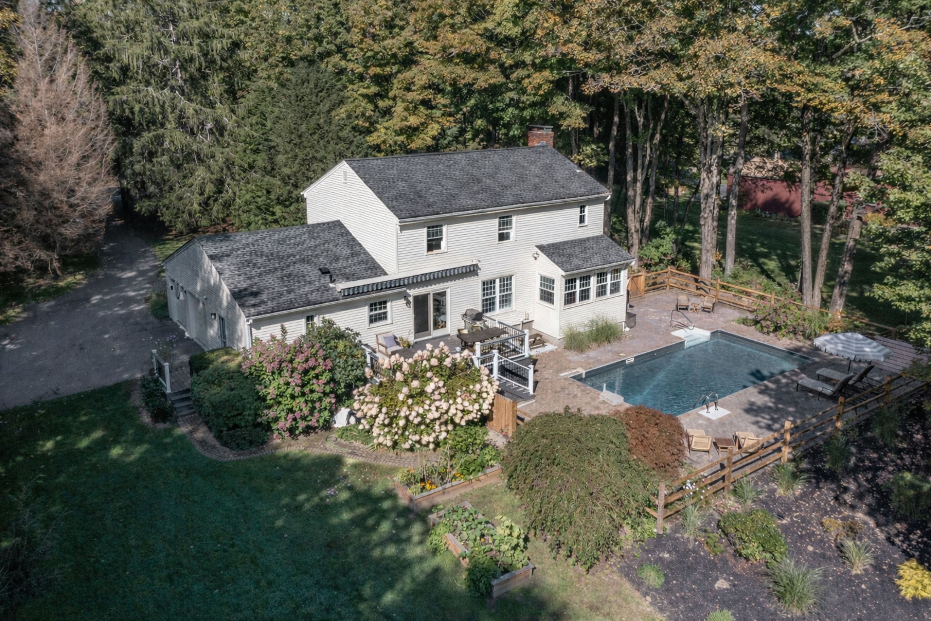Newly renovated Litchfield Riverfront Oasis with pool, four bedrooms and a designer's eye throughout. This thoughtfully reimagined 4-bedroom Colonial sits on 2.85 park-like acres that lead directly to 100+ ft of frontage on the Bantam River. At the heart of the home is a true Chef's Kitchen -showcasing Dekton countertops (the preference of culinary legend Thomas Keller), a Bertazzoni range + hood and an expansive appliance garage. The open-concept main level flows seamlessly from the formal living room with gas fireplace to a sun-drenched sunroom with French doors, leading to a composite deck and heated in-ground pool. Every inch has been refined, from the refinished hardwoods and designer lighting to the newly epoxy-floored home gym/garage. The upper level features a spacious Primary Suite with newly renovated bathroom and walk-in closet (with custom built-ins). Along with three additional guest bedrooms with hardwood flooring. The partially finished lower level includes a full bath and abundant storage. Enjoy mature Japanese Maples, stunning cherry tree and raised garden beds in a quiet country setting just minutes from Litchfield Green, Morris, and Washington. Whether a weekend retreat or full-time residence, your riverfront oasis awaits.