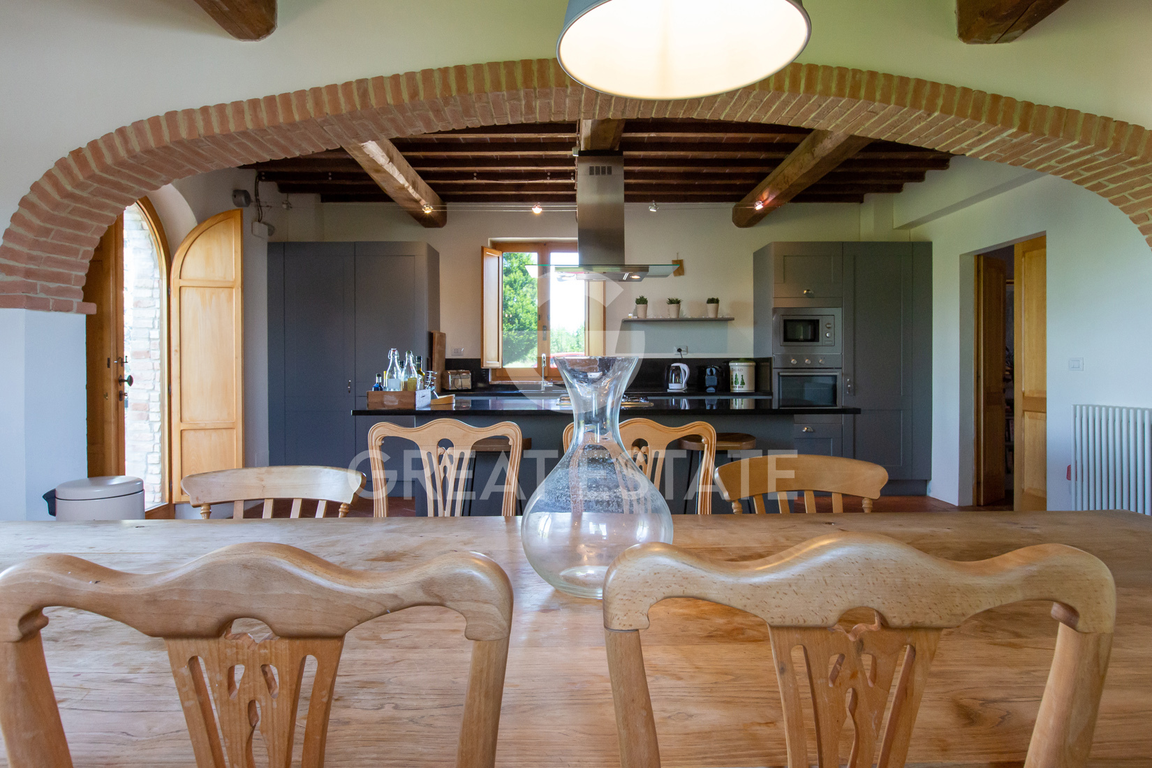 The property was completely renovated in 2006 using handmade terracotta, exposed wooden beams, and, in general, all the typical elements of traditional farmhouses. Functional and more contemporary features were introduced, such as travertine in the bathrooms. It is maintained in perfect condition and ready for immediate use, requiring no further work.