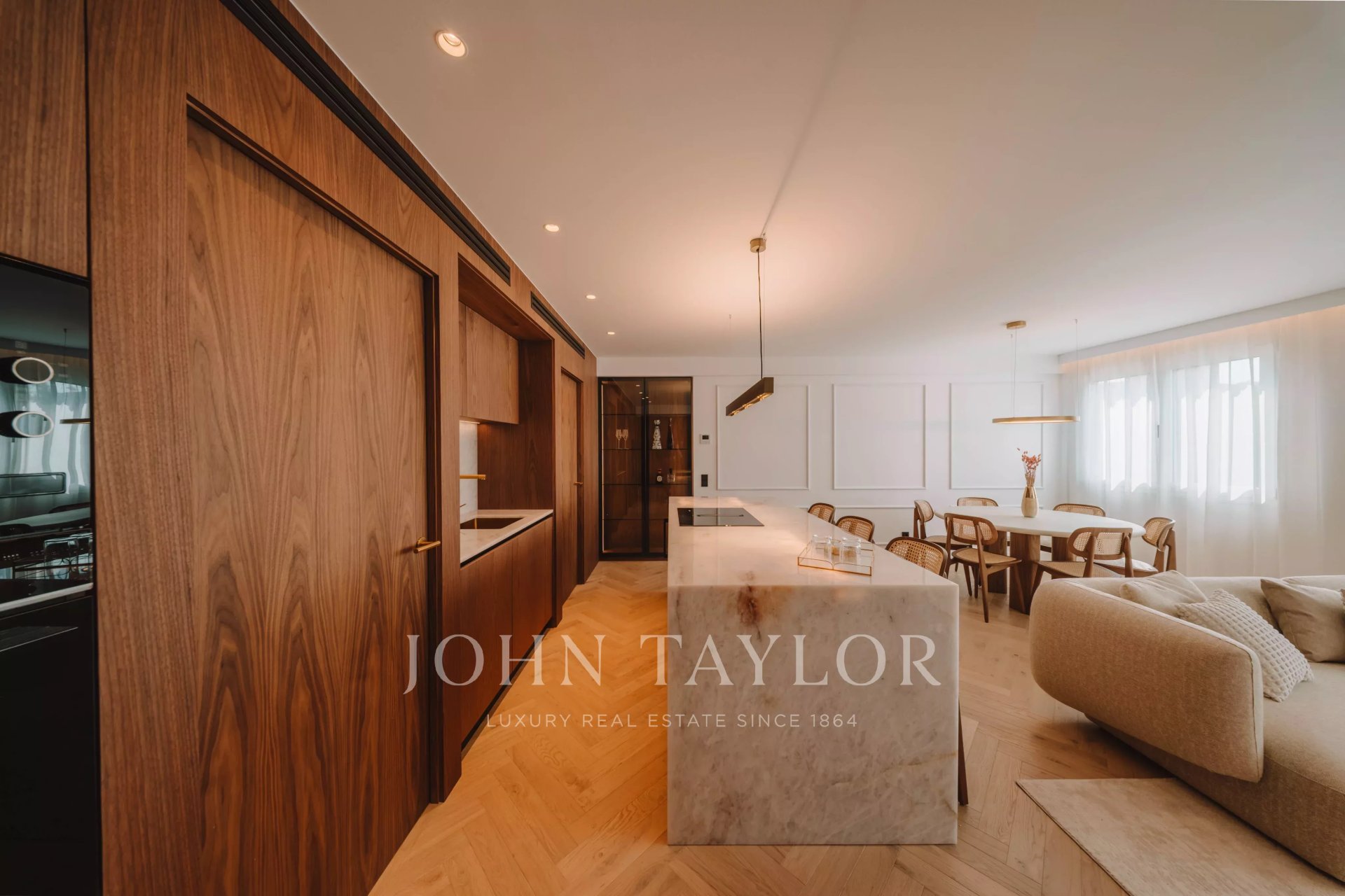 Situated in a central and well-connected area of Palma, this refined apartment presents an excellent opportunity to reside in the heart of Mallorca’s capital. Within easy reach are luxury boutiques, renowned restaurants, the historic old town, leading medical facilities, and all essential services.Located on the fourth floor of a well-maintained building, the property is entirely exterior, offering open views and an east-facing orientation that fills the interiors with natural light throughout the day and warm sunsets year-round.With 129 m² of usable space, the apartment features three bedrooms and two bathrooms, thoughtfully designed for both comfort and functionality. Fully renovated in 2025 by a prestigious local design studio, it showcases high-end finishes, including bespoke walnut carpentry throughout and a designer kitchen crafted in the same noble material, complemented by a natural stone countertop imported from Brazil. The property is fully furnished with premium brands such as Ethnicraft and Paul Rogers, enhancing its refined and contemporary character.Additional features include built-in wardrobes in all bedrooms, a wine cooler, a separate laundry room with washer, dryer, and water softener, advanced acoustic insulation ensuring complete tranquillity, and a designer lighting system with energy-efficient installations.Sold fully furnished and equipped, including linens, appliances, and homeware, this turnkey residence is ideal as a primary home or an elegant pied-à-terre.Palma Centre with its national and international residents has become one of the most cosmopolitan second-home residence areas in the Mediterranean. Offering an incomparable selection of fine dining options, and cultural and sports activities together with its beach makes it an ideal location for a full-time or part-time residence. Due to the expansion of the city, many international investors are now looking to new areas that were in the past predominantly for locals. Area such as the Avenida’s, and its secondary streets have become increasingly attractive due to the competitive difference in prices. Palma offers the best transport hub on the island, just 15 minutes from the airport, with the main bus, metro & train station in the Plaza España and the excellent public transport system means having a car is not a necessity. The port, also in the centre offers numerous connections to the other Balearic Islands, mainland, and other countries, apart from being one of the top cruise ship destinations in the Mediterranean.