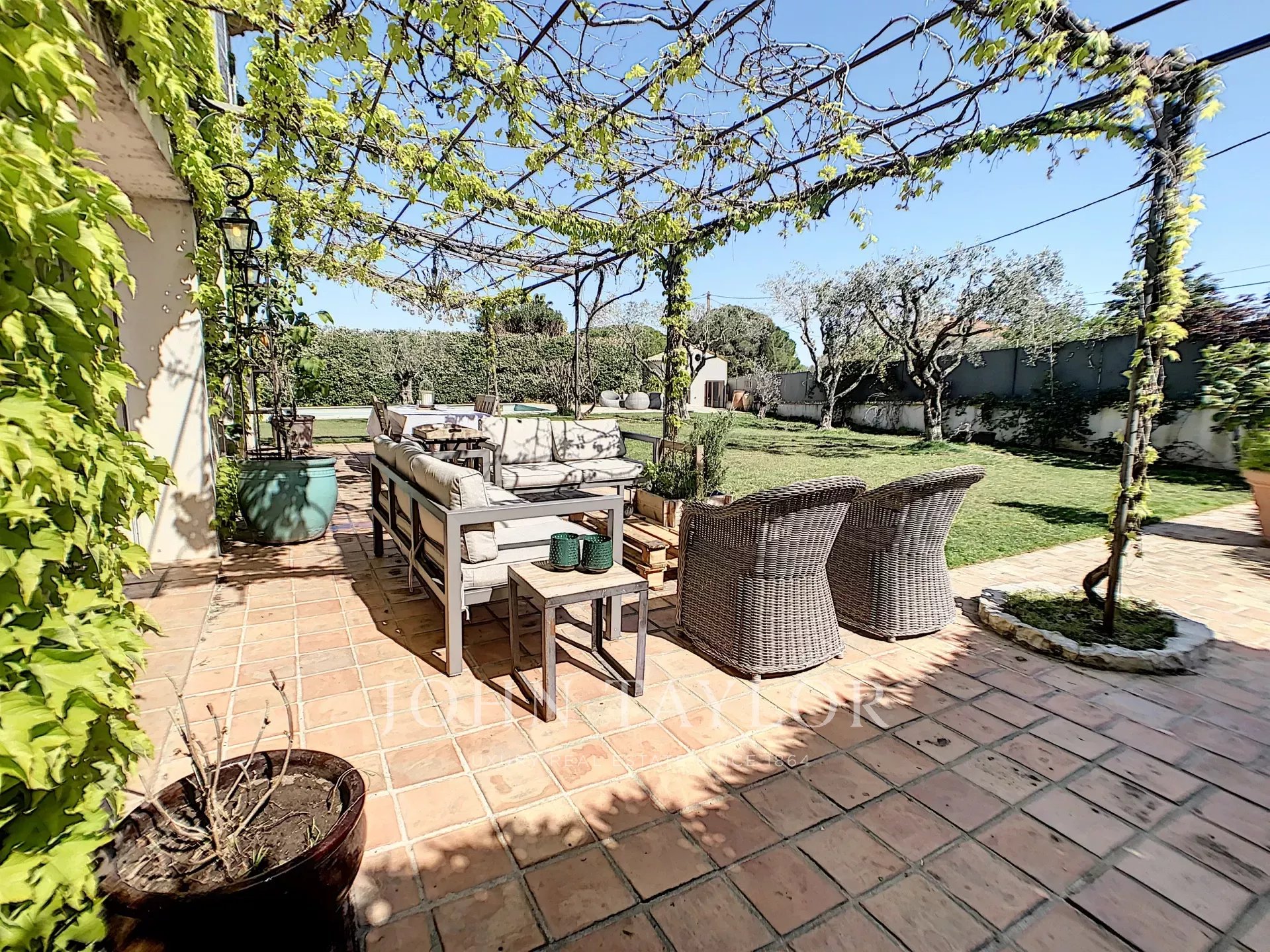 Located in one of the most sought-after neighborhoods of Mougins, this superb Provençal bastide impresses with its absolute tranquility and its flat land offering a large swimming pool.On the ground floor, it offers a bright and warm living space, open to a south-facing terrace with a cosy and lovely pergola, a friendly family kitchen, plus an independent ensuite bedroom.Upstairs, a huge master ensuite bedroom with its private Tropezian terrace, a second en-suite bedroom, as well as two other bedrooms sharing a bathroom.Ideally located near international schools, the Royal Golf, and Valbonne Sophia Antipolis, this tastefully renovated property in a cozy spirit is an opportunity not to miss.