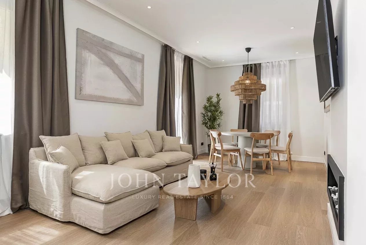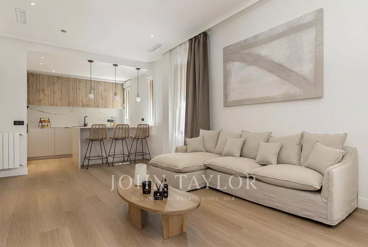 Discover this exquisite 147.05 m² apartment for sale in the prestigious Chamberí Almagro area of Madrid. Designed for ultimate comfort, this modern home offers two spacious bedrooms, a stylish open-plan living and dining area, and is fully furnished with chic, contemporary décor. The double glazing and sliding windows ensure a peaceful ambiance while letting in ample natural light. Step outside to enjoy a magnificent terrace, perfect for outdoor lounging and entertaining guests in a serene urban setting. The property also features advanced comforts such as air-conditioning, high-speed internet, and a videophone for security and convenience. The elegant layout is thoughtfully planned, making it ideal for families or couples seeking a luxurious lifestyle in the city.Residents benefit from practical amenities including a lift, disabled access, security door, and access control, guaranteeing both comfort and peace of mind. This ready-to-move-in apartment offers you the unique opportunity to live in one of Madrid’s most sought-after neighborhoods, combining style, security, and top-tier urban living.