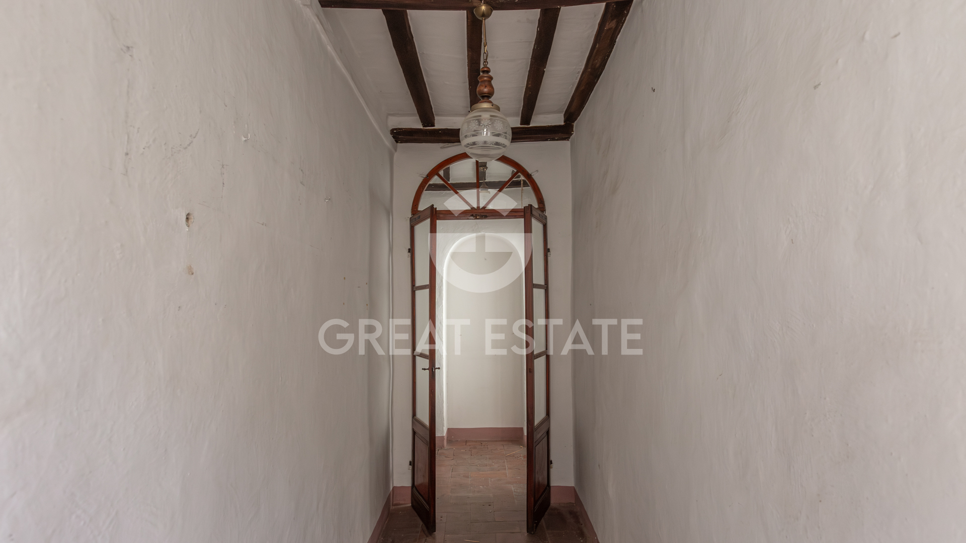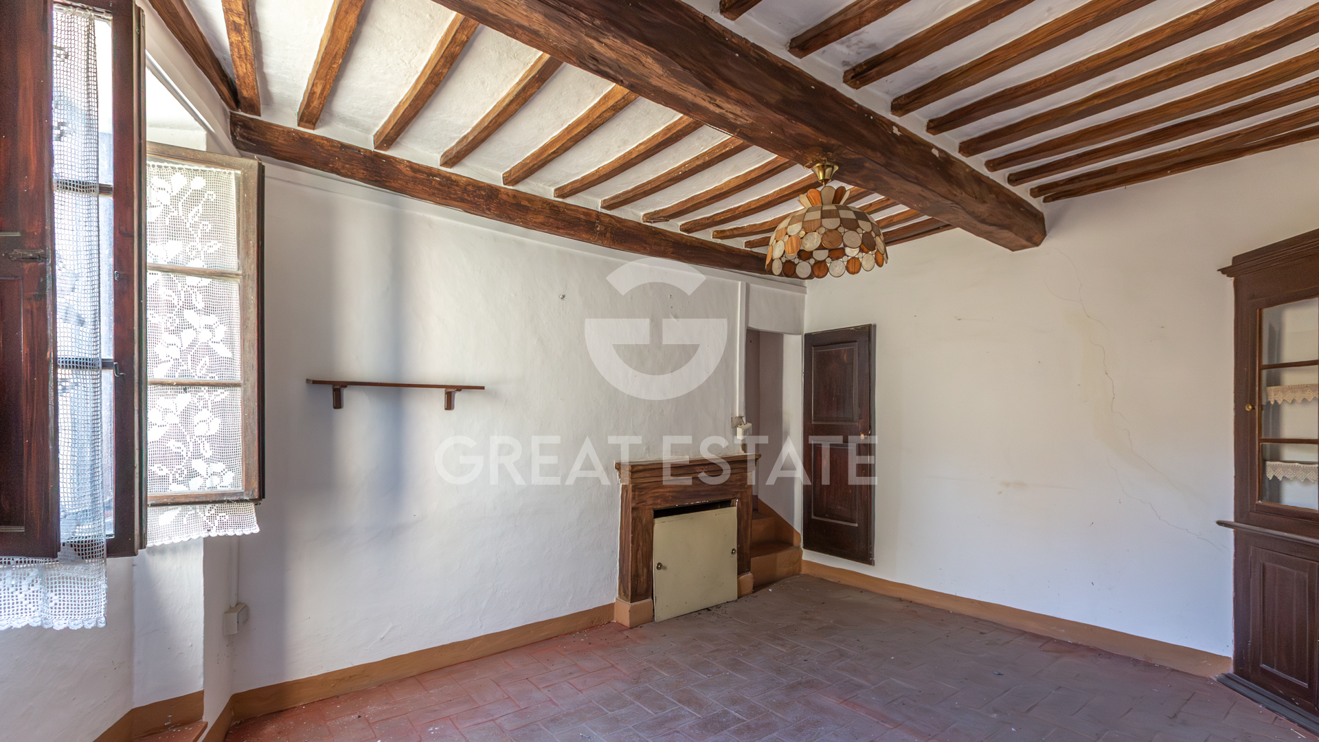 This apartment preserves an antique handmade terracotta floor; the ceiling features wooden beams and terracotta tiles. The systems need modernization, although they are in working order. The apartment requires updating.
