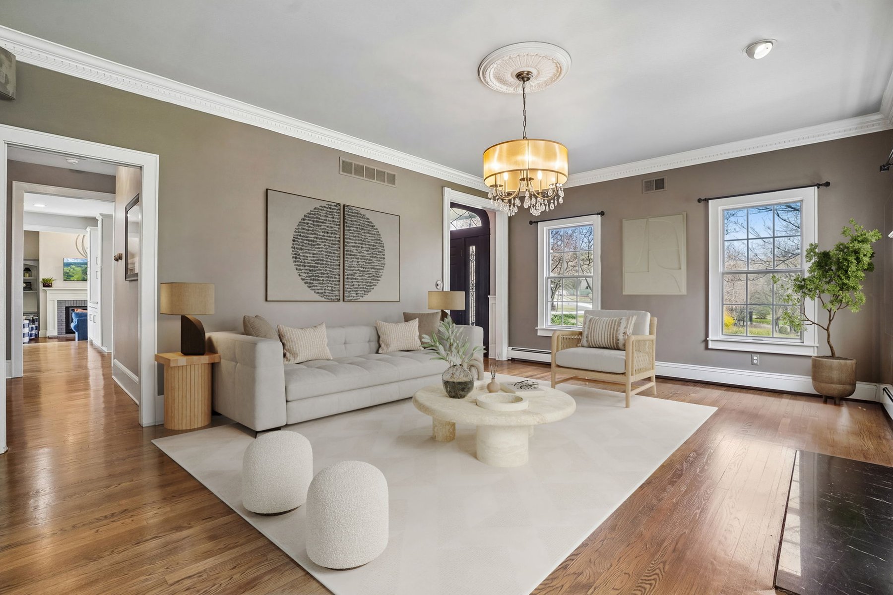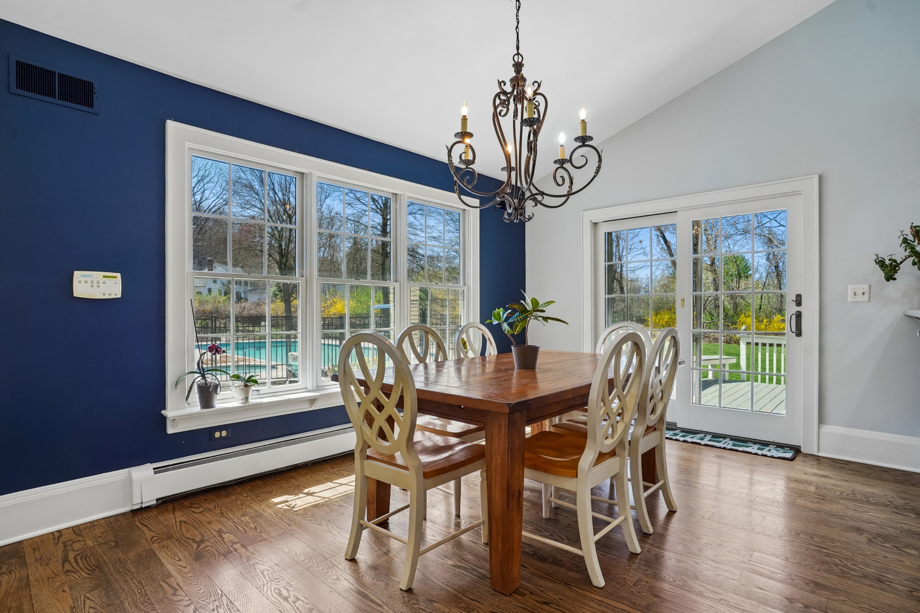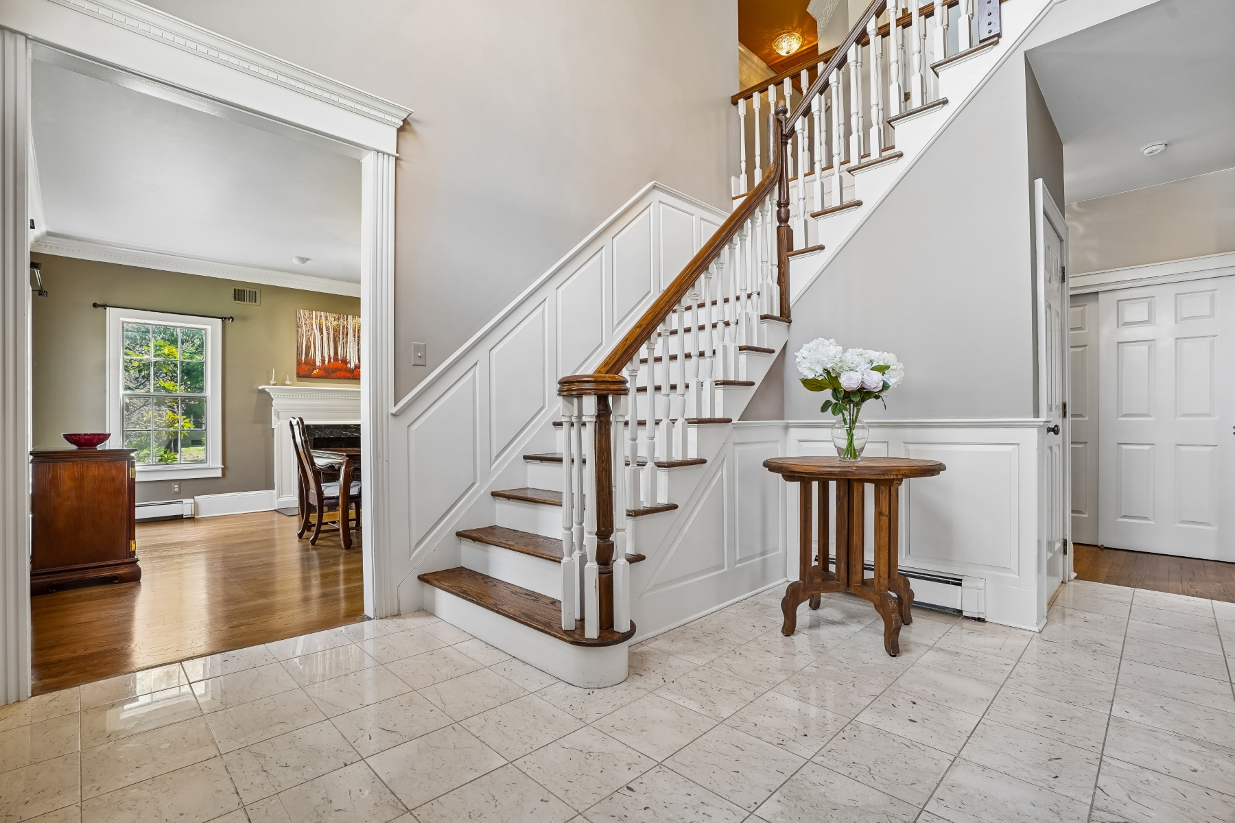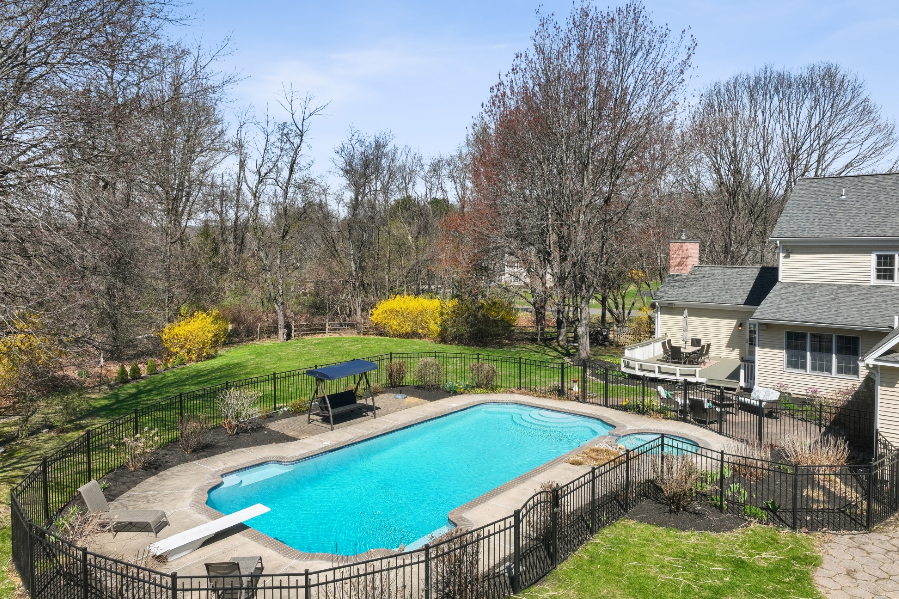 Experience the perfect blend of elegance and comfort in this custom-built Federal Colonial style residence, nestled in a sought-after cul-de-sac location. Set on beautifully landscaped park-like grounds, this home features an inviting in-ground pool, ideal for summer relaxation and entertaining.The updated gourmet kitchen is a chef's delight, showcasing modern appliances and a charming breakfast area that invites morning sunlight. A spacious bonus room with it own separate entrance offers versatility for guests or can be used for recreation. Additionally, a convenient first-floor office makes working from home a breeze. Updated bathrooms throughout the home offer both style and functionality. Freshly painted and meticulously maintained, this property features a new air-conditioning system installed four years ago, a boiler and hot water heater that are approximately three years old and a new roof that was added eight years ago.The recently upgraded pool enhances outdoor living, complemented by a meticulously designed paver driveway and parking area that boosts the property's curb appeal. With a generous two-car attached garage and an additional two-car detached garage with a loft and electricity, there's ample space for vehicles and storage. This move-in ready home presents an exceptional lifestyle in a desirable neighborhood, just steps away from parks and local amenities. Don't miss this rare opportunity.