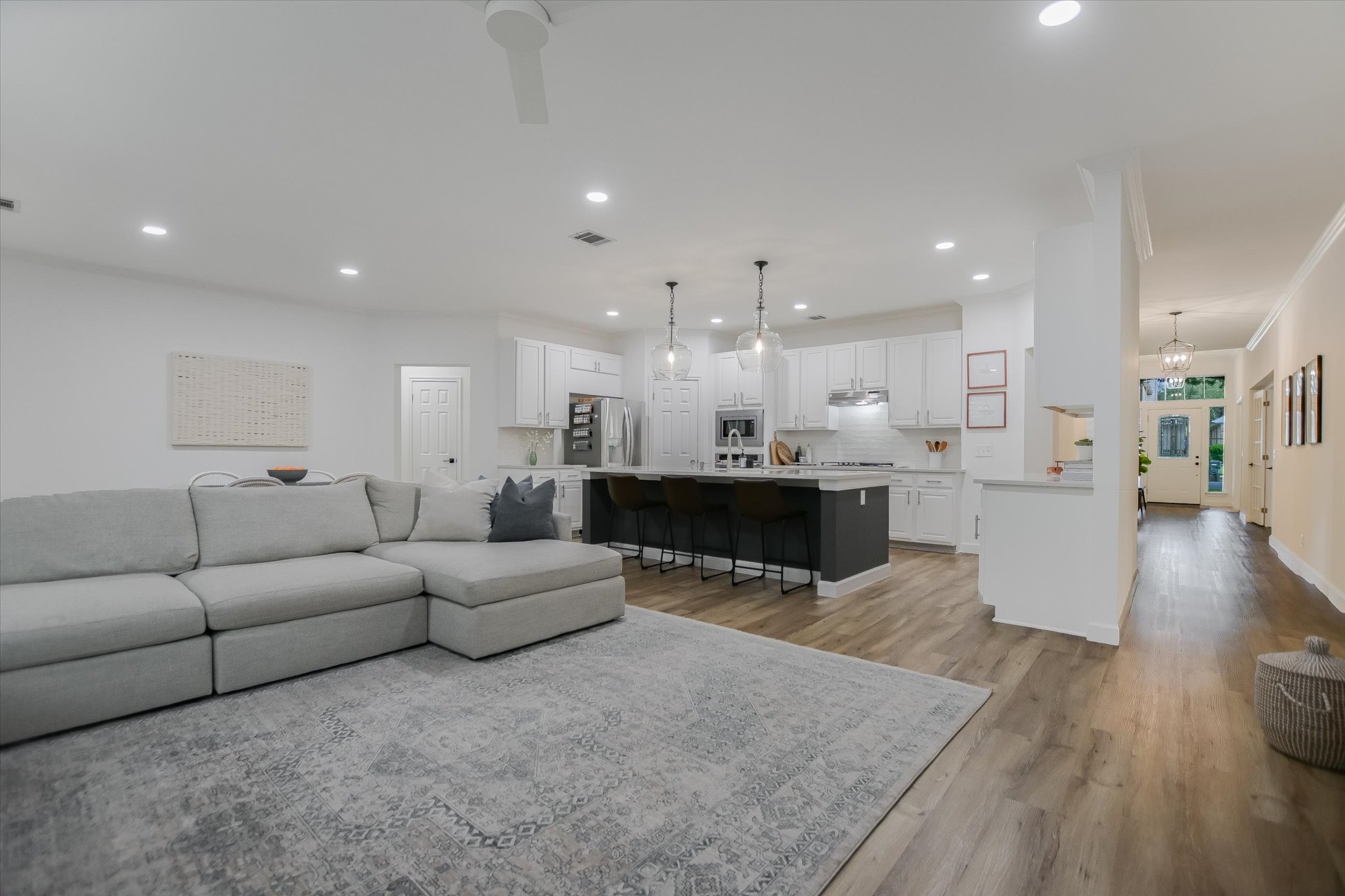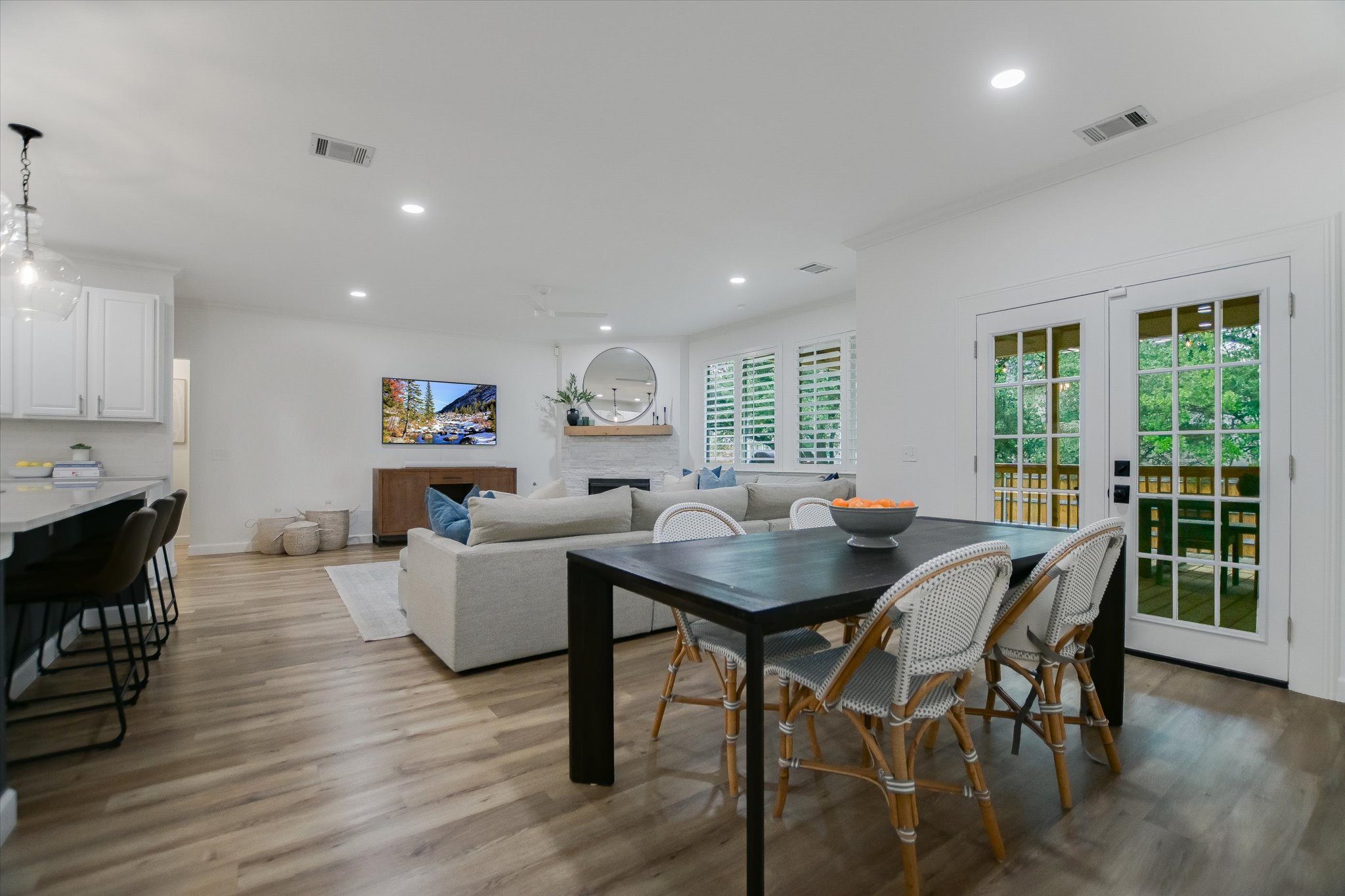 Pottery Barn pretty! Stunning, remodeled, single-story ranch in the Meadows of Brushy Creek. 5BR + office, beautifully renovated kitchen w/ quartz counters, blue-accented island, subway tile & 5-burner gas range. LVP flooring (2024), plantation shutters (2025), 5th BR addition (2025). Oversized primary suite, en suite guest room, media/playroom w/ wainscoting. Covered patio w/ fans & retractable sunscreen. Roof & HVAC replaced 2024. Walk to Pepper Rock Park. Round Rock ISD. Move-in ready — come see it!
