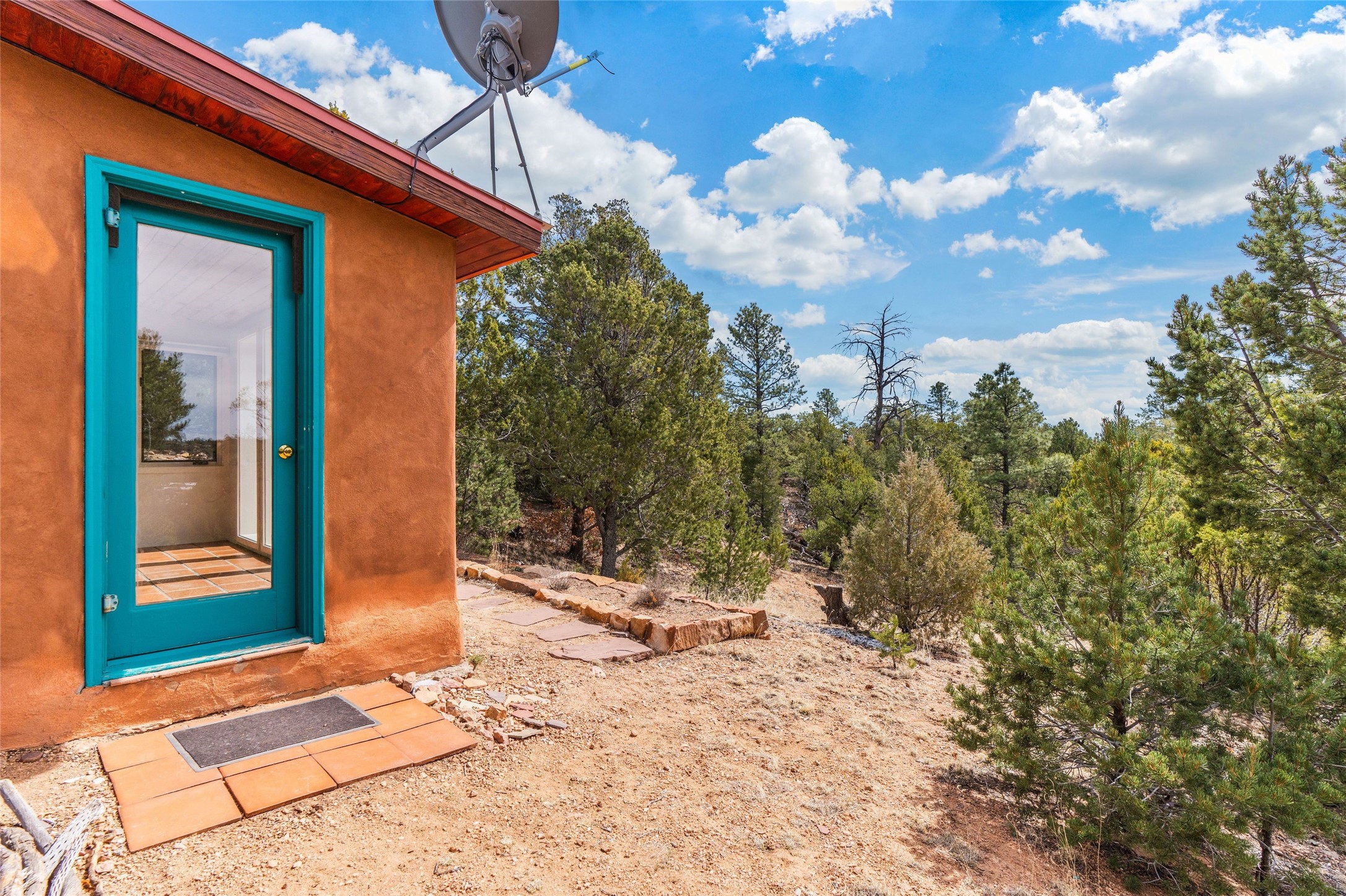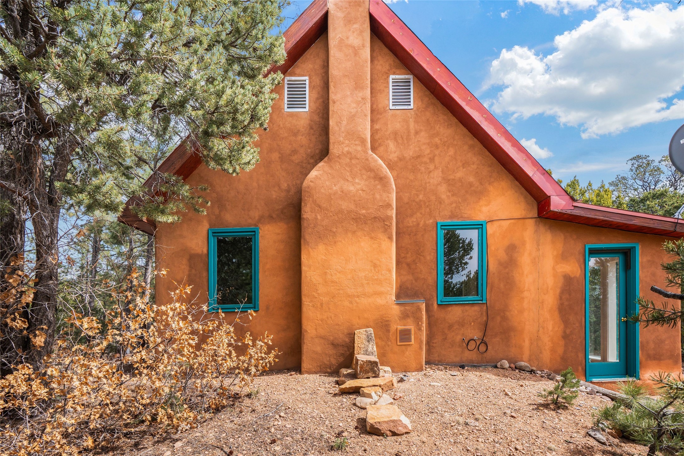 Nestled among the quiet hills of Cañada de los Alamos, this tranquil 1-bedroom, 1-bathroom retreat sits atop 5 private acres overlooking a sweeping green valley of ponderosa pines and juniper, with Cerros Negros rising softly in the distance. Positioned to take in both light and long views, the 1,138-square-foot home opens with a charming living room centered around a cozy wood-burning fireplace -- the heart of the space. Step down into the sun-drenched bonus room, an inviting space perfect for morning coffee, an afternoon read, or a peaceful work-from-home hideaway. Thoughtful storage is found throughout, including a usable attic extending the full length of the home, and a standalone shed. The pitched roof features a solar hot water panel that helps support energy-efficient water heating. Outside, the property is defined by quiet and natural beauty -- the soft wind moving through the forest, wildlife passing by, and clear night skies stretching overhead. Though wonderfully secluded, the home sits just about 25 minutes from the Plaza, offering a rare balance of mountain-retreat living with convenient access to Santa Fe’s amenities and nearby National Forest trails. A calming high-desert getaway with space, privacy, and possibility—ready for its next owner to make it their own.