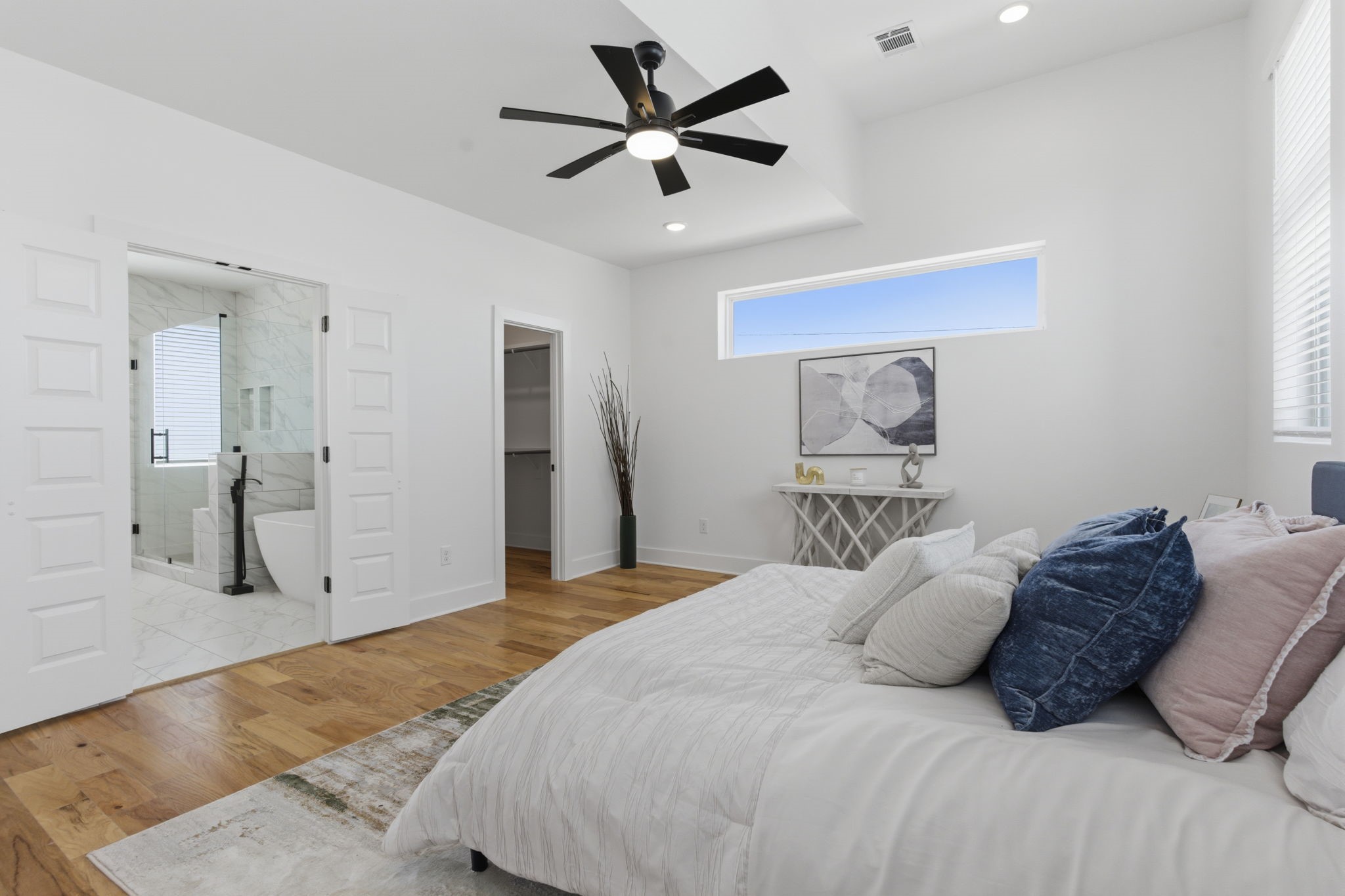 Welcome to 1920 Laverne Street—an inviting 3-bedroom, 3 full bathroom home thoughtfully designed for both everyday living and effortless entertaining. The first floor features a private guest suite with a full en-suite bath, perfect for visitors. On the second level, enjoy an open-concept kitchen and living area filled with natural light, ideal for hosting, along with an additional bedroom or flexible office space. The third floor offers a spacious primary retreat complete with an oversized en-suite bathroom, a large walk-in closet with built-ins, and access to a generous private balcony. Step outside to a wraparound-style private patio, perfect for intimate gatherings or cozy evenings enjoying the Houston weather. Conveniently located near Memorial City with easy access to major interstates, shopping, and dining. Ask about available $0 down loan programs for qualified buyers!