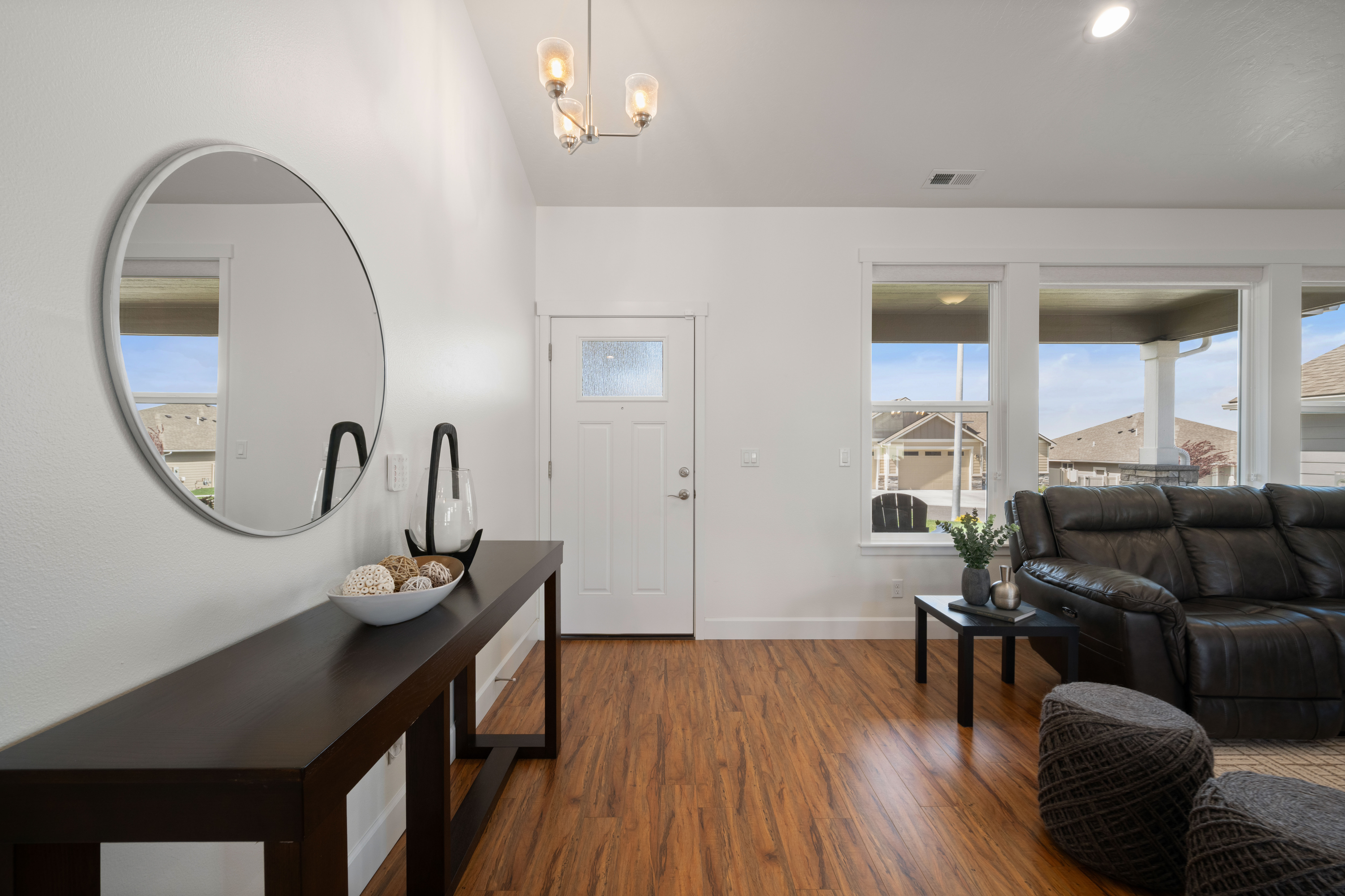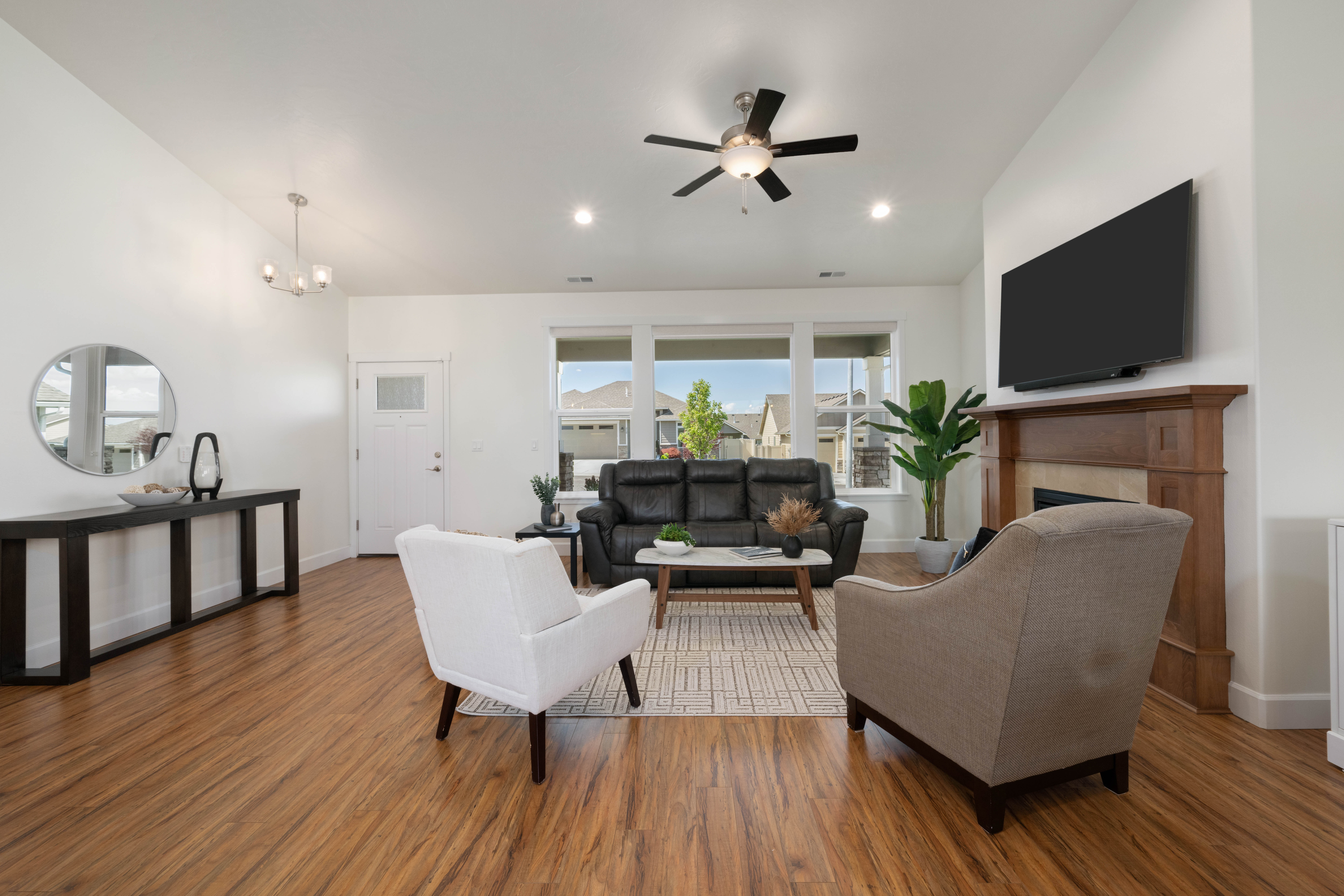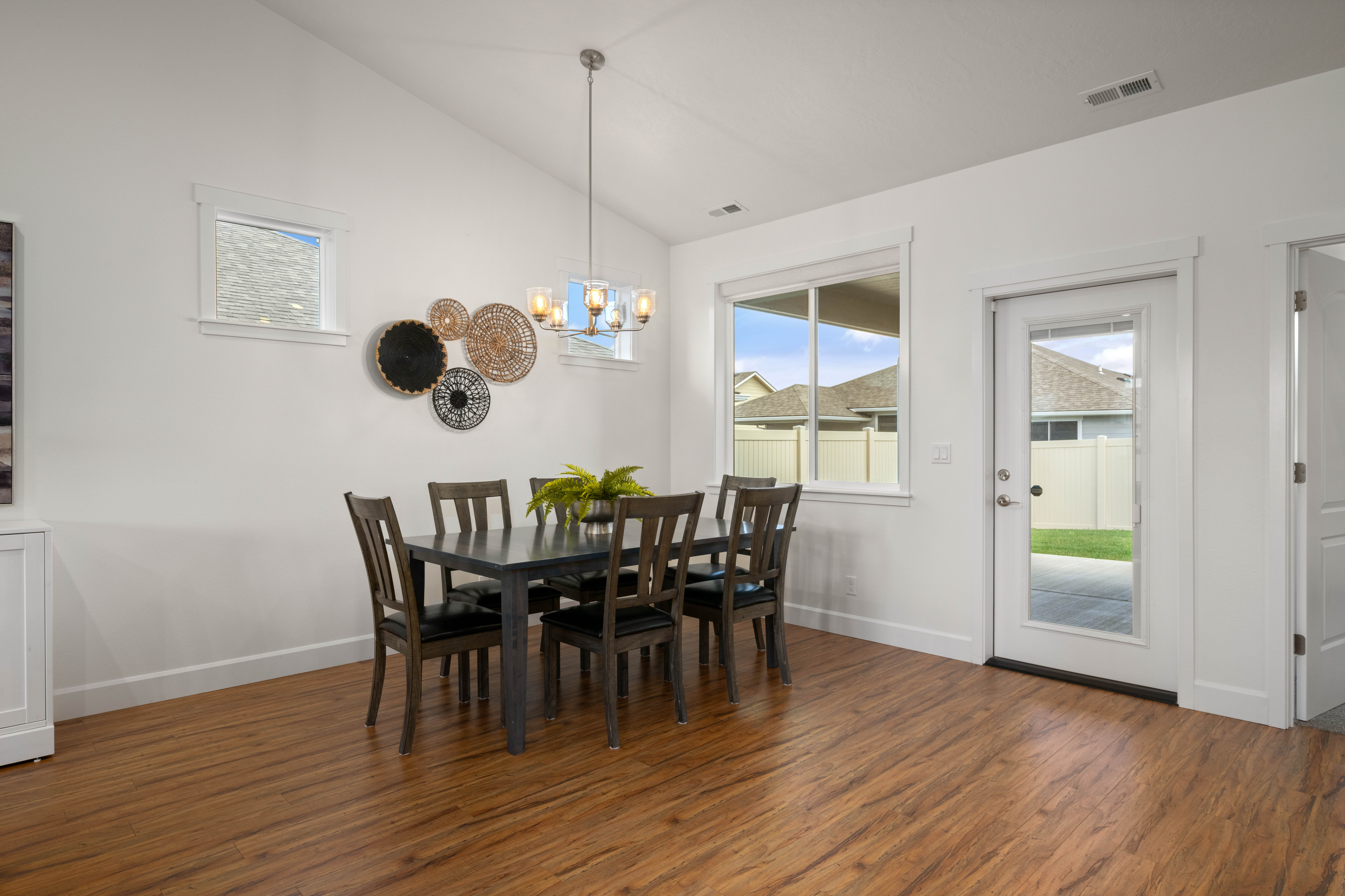 Located in the highly sought-after Village at Southridge, this nearly new home offers low-maintenance living in a gated 55+ community with resort-style amenities including a private clubhouse, pool, fitness center, dog park, and walking paths. Thoughtfully designed with an expansive great room and soaring vaulted ceilings, the open layout is filled with natural light and lives larger than its footprint. With minimal hallways and highly efficient use of space, the home delivers the feel and functionality of a much larger 1,600-1,700 sq ft floorplan. The kitchen and main living areas are finished with granite countertops, hardwood soft-close cabinetry, a tile backsplash, and durable laminate plank flooring, while tile accents the wet areas and plush carpet adds comfort in the bedrooms and closets. The spacious primary suite features a large bedroom, walk-in closet, and a well-appointed ensuite bath complete with a flush-entry, mud-settile shower and frameless glass door. This home stands out from the rest—priced below previous builder offerings for the same floor plan and already equipped with upgrades typically added after closing, including all appliances, window coverings and fresh paint. Enjoy outdoor living with both a west-facing covered front porch and an east-facing backyard featuring a large covered patio, for morning sunshine AND afternoon shade. The fully landscaped front and backyard are maintained through the HOA, allowing you to spend more time enjoying the community and less time on upkeep. Complete with a rare 3-car garage, this home offers the ideal blend of comfort, convenience, and value in one of the area’s premier active adult communities.