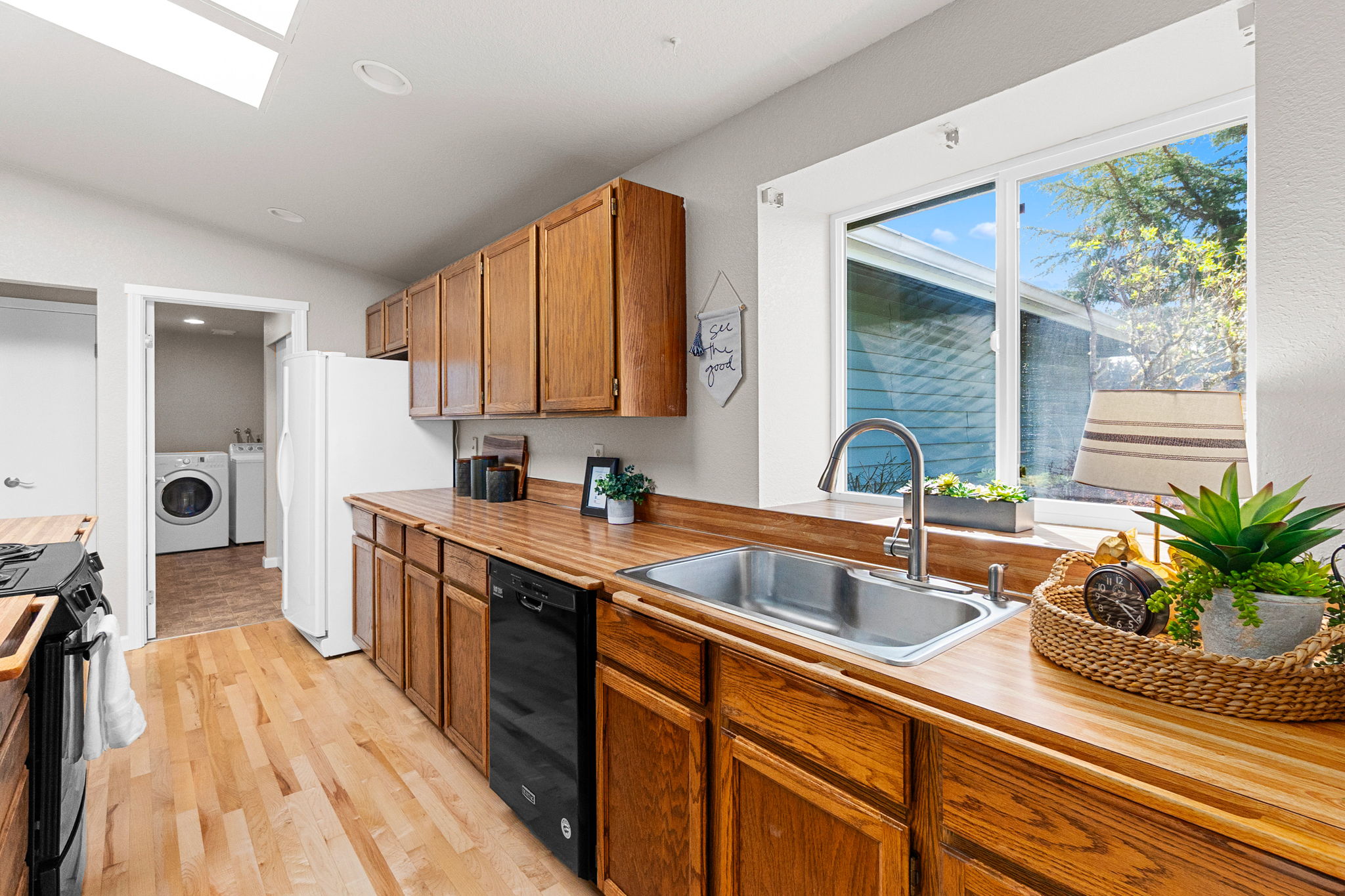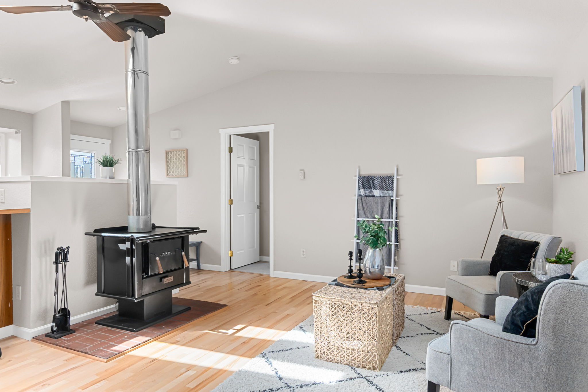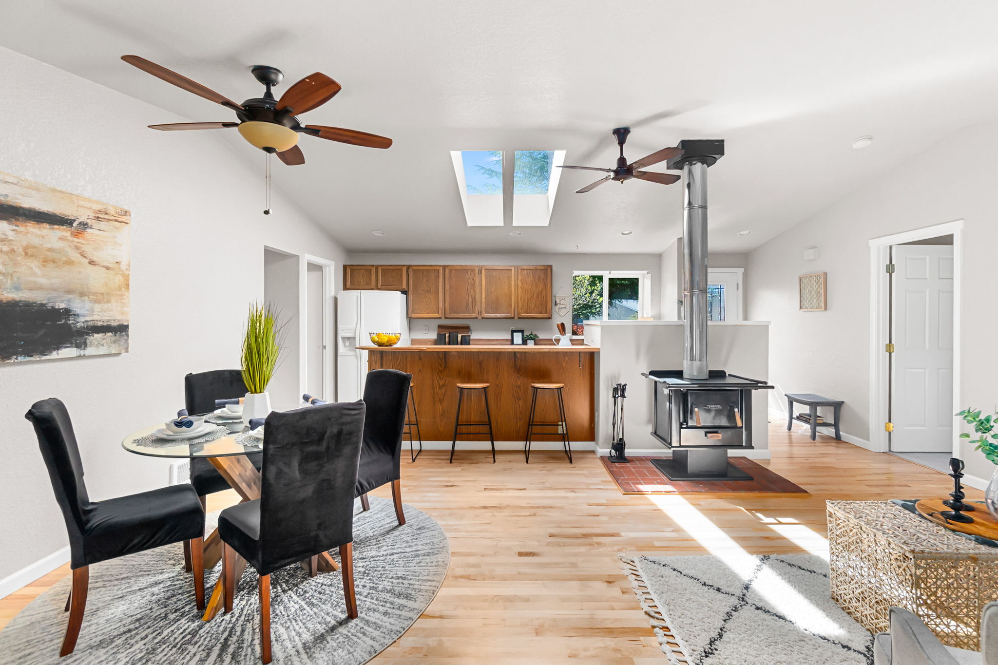 Welcome to this perfectly located rambler on a spacious lot surrounded by open spaces, offering a wonderful sense of privacy and calm. As you step inside, you're greeted by natural light and the warmth of a cozy wood stove, creating an inviting and comfortable atmosphere. The kitchen is positioned to take in views of greenery from both the front and back windows, making everyday moments feel connected to the outdoors. A flexible layout includes a second living area ideal for an office, hobbies, or additional gathering space, while the split-bedroom design offers added privacy and separation. Thoughtfully refreshed, this home features a newer roof, all new interior paint, brand-new carpet, and beautifully refinished hardwood floors. The crawl space and attic have been recently inspected, with a new vapor barrier and crawl space covers adding peace of mind. The fully fenced backyard provides space to relax and unwind, complete with a private covered deck where you can enjoy the sounds of nature with surrounding open space on two sides. Outbuildings offer additional storage or workspace options. Set in a quiet neighborhood close to neighborhood park and elementary school, close to Costco, The RAC, and the Nisqually Wildlife Refuge, with easy access to I-5 and just minutes to JBLM. Ample parking includes space for RV parking in addition to a two-car garage, offering flexibility for a variety of needs. Peacefully private and truly move-in ready.