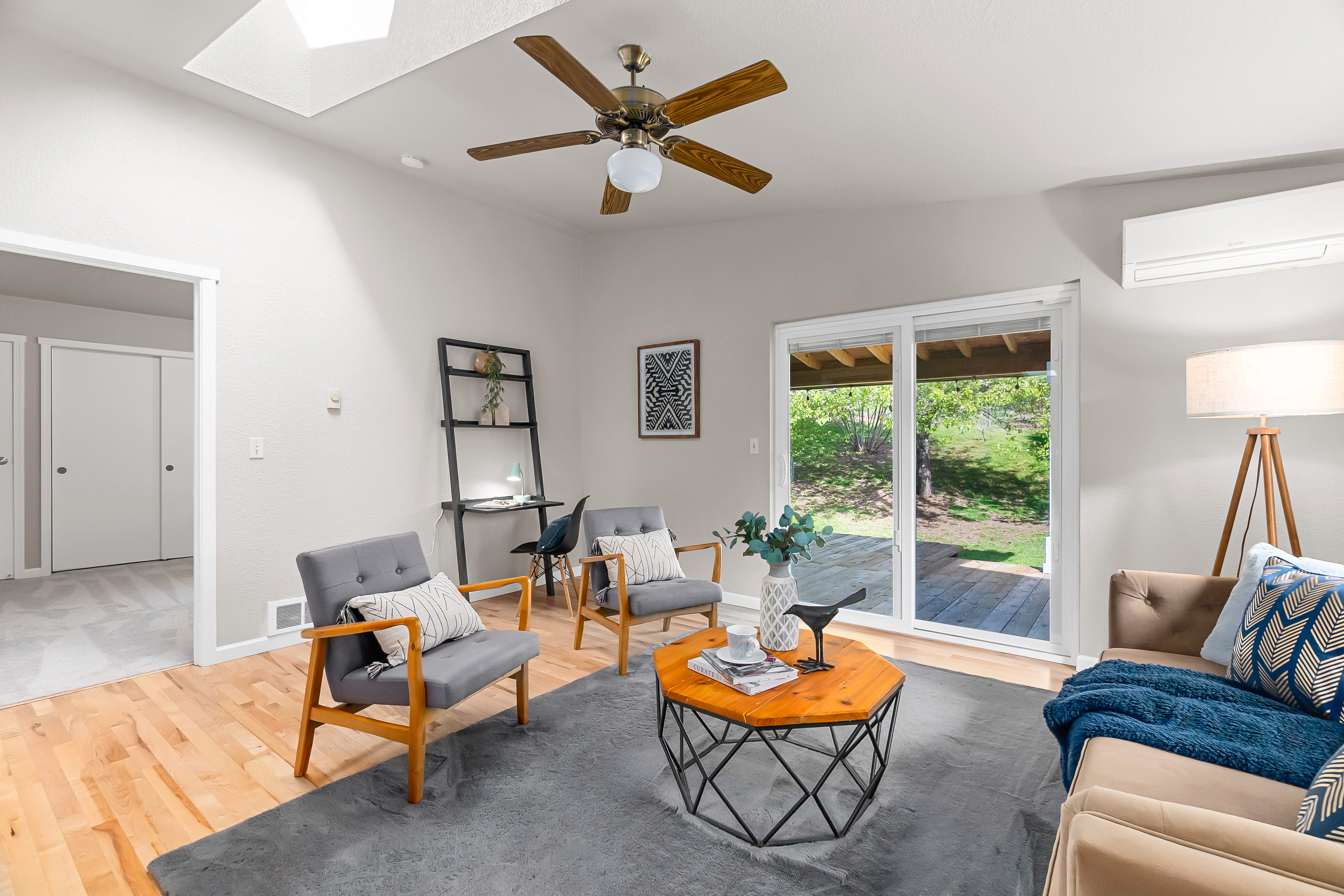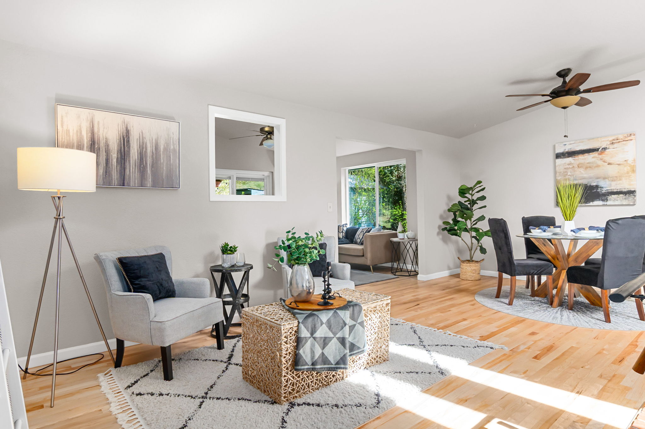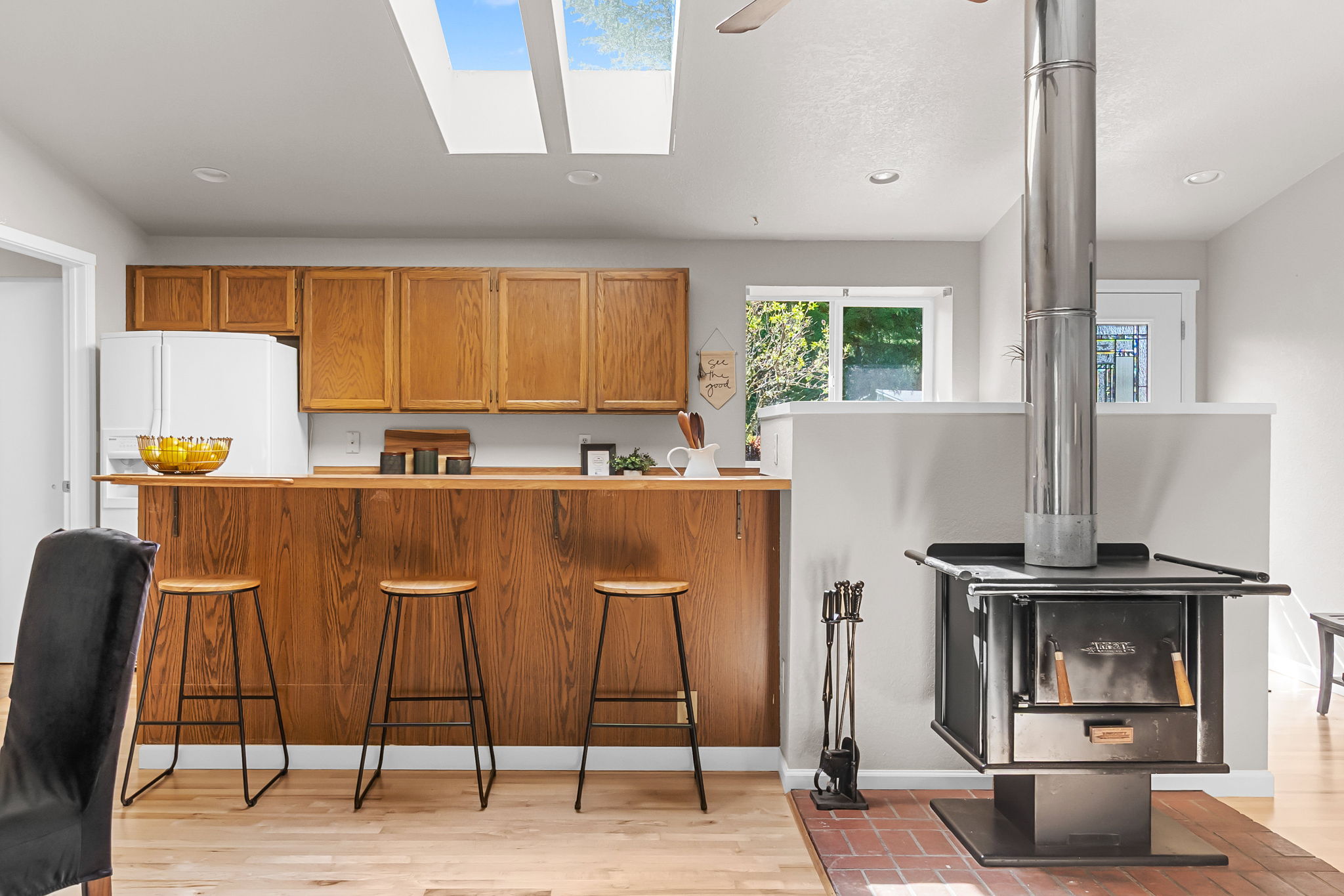 Welcome to this perfectly located rambler on a spacious lot surrounded by open spaces, offering a wonderful sense of privacy and calm. As you step inside, you're greeted by natural light and the warmth of a cozy wood stove, creating an inviting and comfortable atmosphere. The kitchen is positioned to take in views of greenery from both the front and back windows, making everyday moments feel connected to the outdoors. A flexible layout includes a second living area ideal for an office, hobbies, or additional gathering space, while the split-bedroom design offers added privacy and separation. Thoughtfully refreshed, this home features a newer roof, all new interior paint, brand-new carpet, and beautifully refinished hardwood floors. The crawl space and attic have been recently inspected, with a new vapor barrier and crawl space covers adding peace of mind. The fully fenced backyard provides space to relax and unwind, complete with a private covered deck where you can enjoy the sounds of nature with surrounding open space on two sides. Outbuildings offer additional storage or workspace options. Set in a quiet neighborhood close to neighborhood park and elementary school, close to Costco, The RAC, and the Nisqually Wildlife Refuge, with easy access to I-5 and just minutes to JBLM. Ample parking includes space for RV parking in addition to a two-car garage, offering flexibility for a variety of needs. Peacefully private and truly move-in ready.