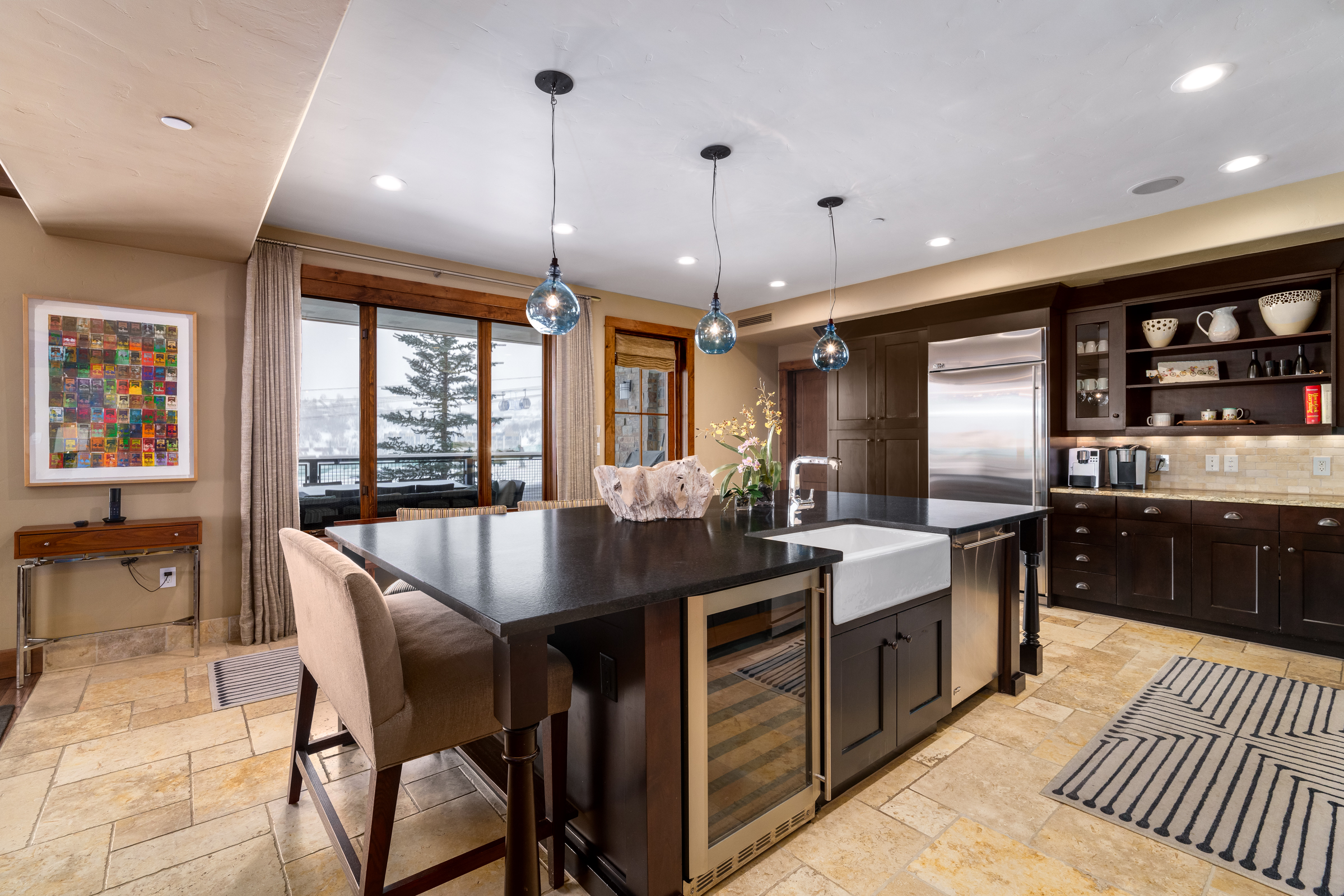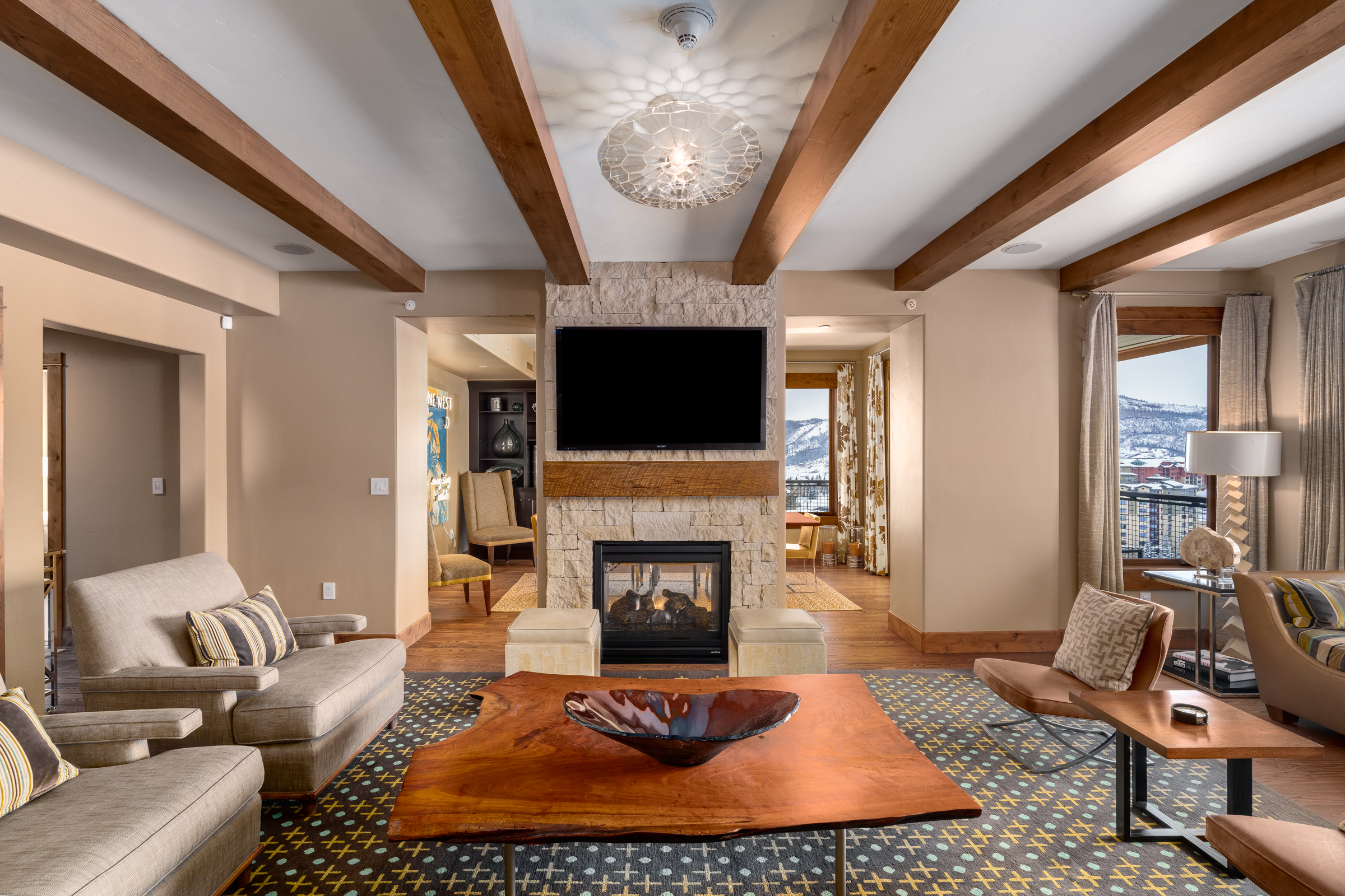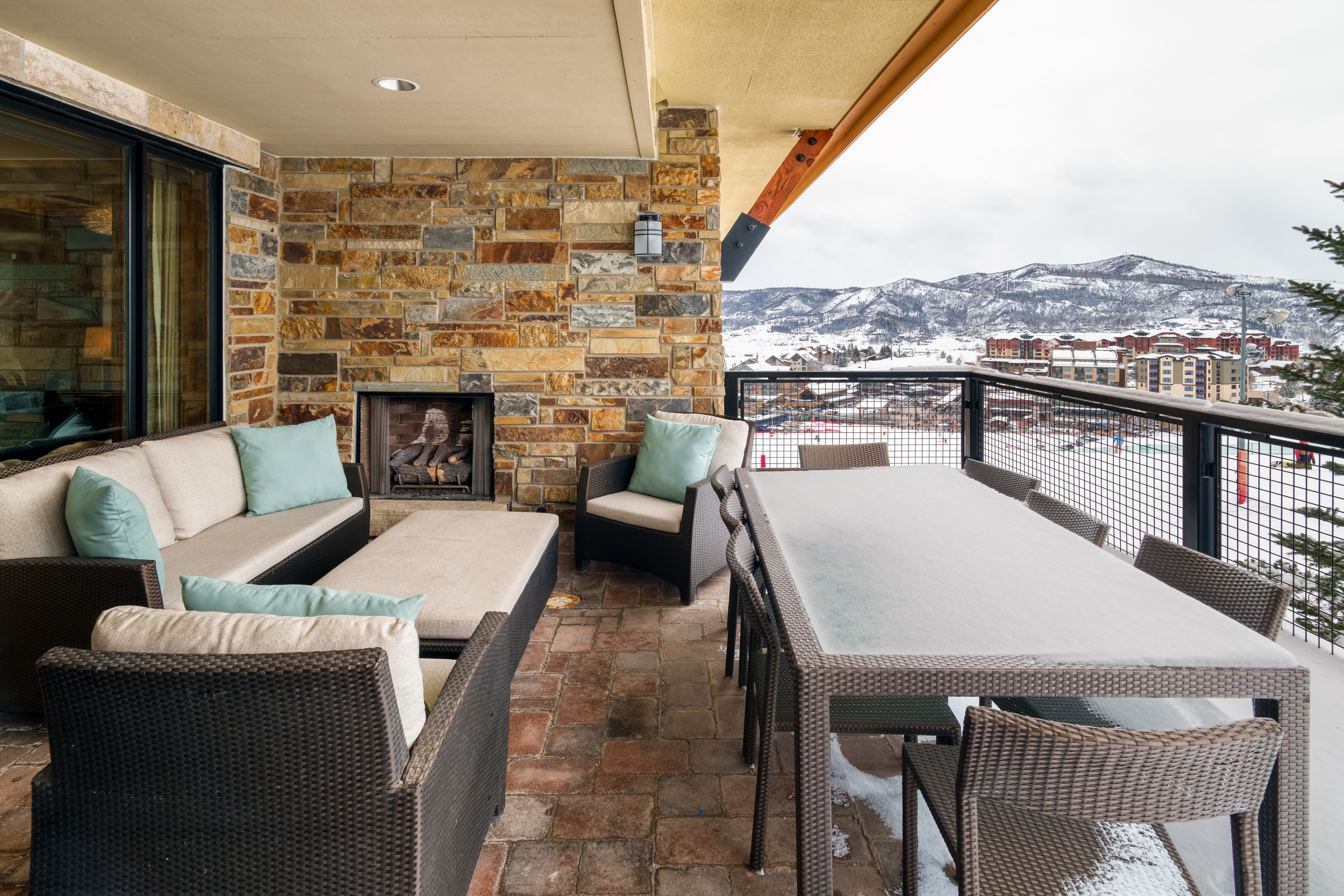 This spectacular luxury condominium at Edgemont is truly one of the finest Ski in/Ski out properties available in Steamboat Springs and the entire Rocky Mountains. Located on the South end Edgemont, this unit has decks on three sides with views overlooking the ski area, the base area, the swimming pool, and the South Valley. With private slope side access, you can pop on your skis from the patio gate and stop home for a quick lunch. Or retire at the end of the day by the outdoor fireplace and watch the night skiers cruise by. Customized at time of construction, the interior finish was designed by Slifer Designs and is complimented by an exquisite selection of fine furnishings and accessories. The property is being sold furnished and turn-key which adds tremendous value to the unit. Beautiful interior appointments include hardwood and natural stone tile flooring, beamed ceilings in the living room, granite counters throughout, stainless appliances, wine refrigerator, custom lighting, cabinetry and built-ins, custom closets, security system, and central air conditioning. The unit offers two primary suites, each with a walk-in closet and fireplace, ideal for multi-generational gatherings or multiple families who love to travel together. The unit is complete with a full -sized laundry room and mud room off the patio making this feel like home away from home. To add to the convenience, this unit is accessed across from the parking garage, and it is the only unit on this level for added privacy. Luxury amenities include pool and hot tub, fitness room, owners gathering lounge, fire-pit, ski lockers, shuttle service, and assigned storage locker. The building is going through a modern refresh of all the common areas with completion date mid-august. The new look will be amazing. On-site property management is available at Bear Claw next door. Slopeside rentals come at a premium and offer unmatched potential for additional income to offset expenses should you wish to rent.
