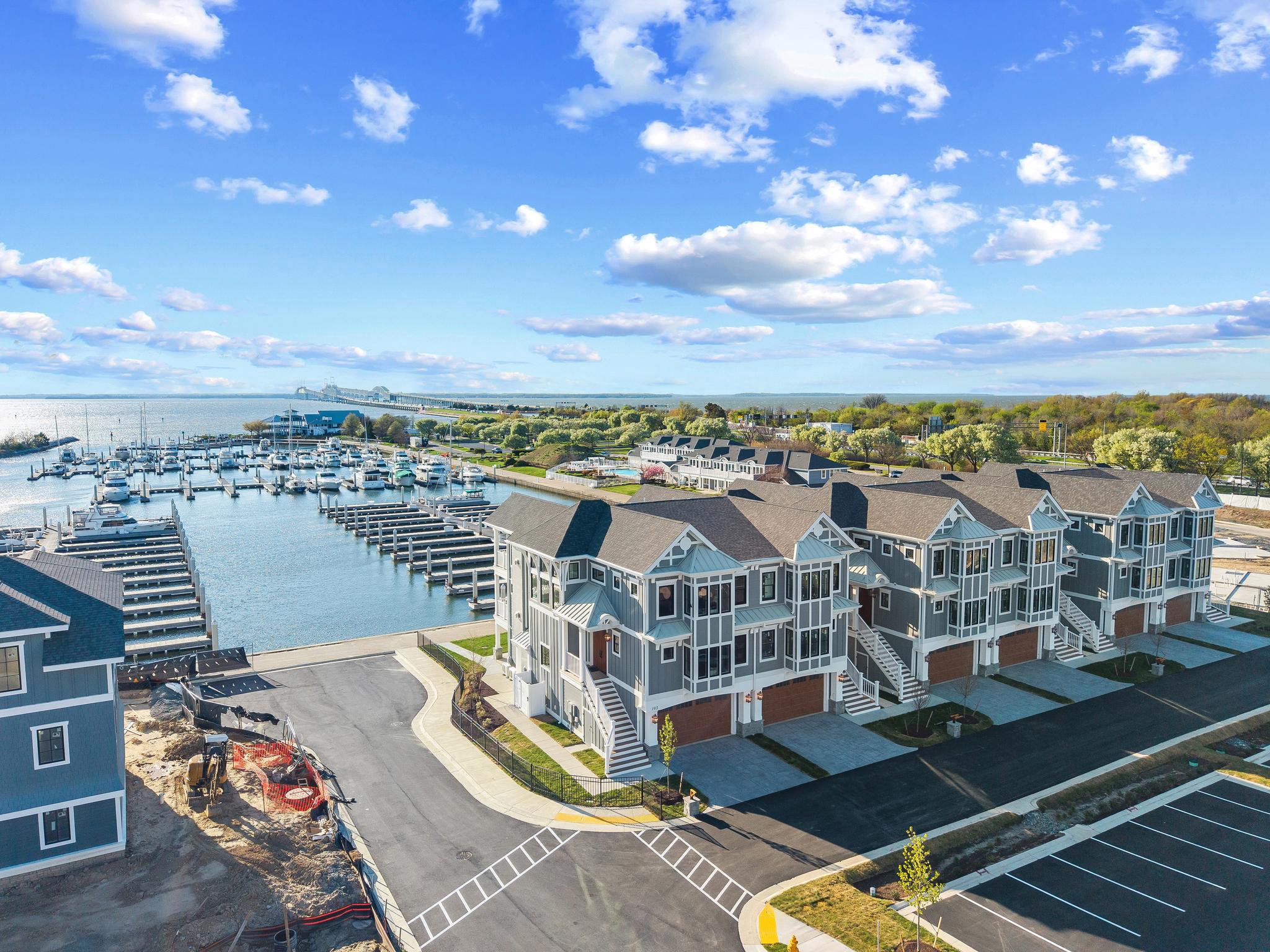 Welcome to Sunset Wharf, a refined waterfront enclave set within the picturesque Bay Bridge Marina, where coastal living is defined by sweeping views and effortless sophistication. This fully completed residence is one of just a select offering within the initial collection of three buildings, each thoughtfully designed with only two residences each, creating an intimate and private setting along the water’s edge.Inside, the home unfolds across three levels with a thoughtfully designed four bedroom, four bath layout that offers both flexibility and comfort. A private bedroom and full bath on the entry level provide the perfect space for guests or a quiet home office. The main living level is designed for seamless everyday living and entertaining, highlighted by a warm and inviting living room with a gas fireplace that adds both comfort and ambiance. The upper level features two additional bedroom suites, including a serene primary retreat complete with its own gas fireplace. An elegant touch that enhances the sense of relaxation and retreat.Expansive windows frame captivating views over the marina and out to the Chesapeake Bay, filling the home with natural light and creating an ever-changing backdrop of boating activity and open water. As the day winds down, the setting truly comes to life with breathtaking sunsets that paint the sky and reflect across the water. An experience to be enjoyed from both the interior living spaces and outdoor areas.High-end finishes and a modern, open-concept design elevate the interiors, while the beautifully appointed gourmet kitchen and well designed baths enhance both form and function. Every detail has been curated to deliver a low-maintenance, lock-and-go lifestyle without compromising on luxury.Ideally positioned within walking distance to waterfront dining, including Libbey’s Coastal Kitchen & Cocktails and Knoxie’s Table, residents also enjoy immediate access to marina amenities, scenic walking paths, and the relaxed rhythm of life on the Bay. Sunset Wharf offers a rare opportunity to own a newly completed residence in a thoughtfully designed waterfront community where every day feels like a getaway. Welcome Home!