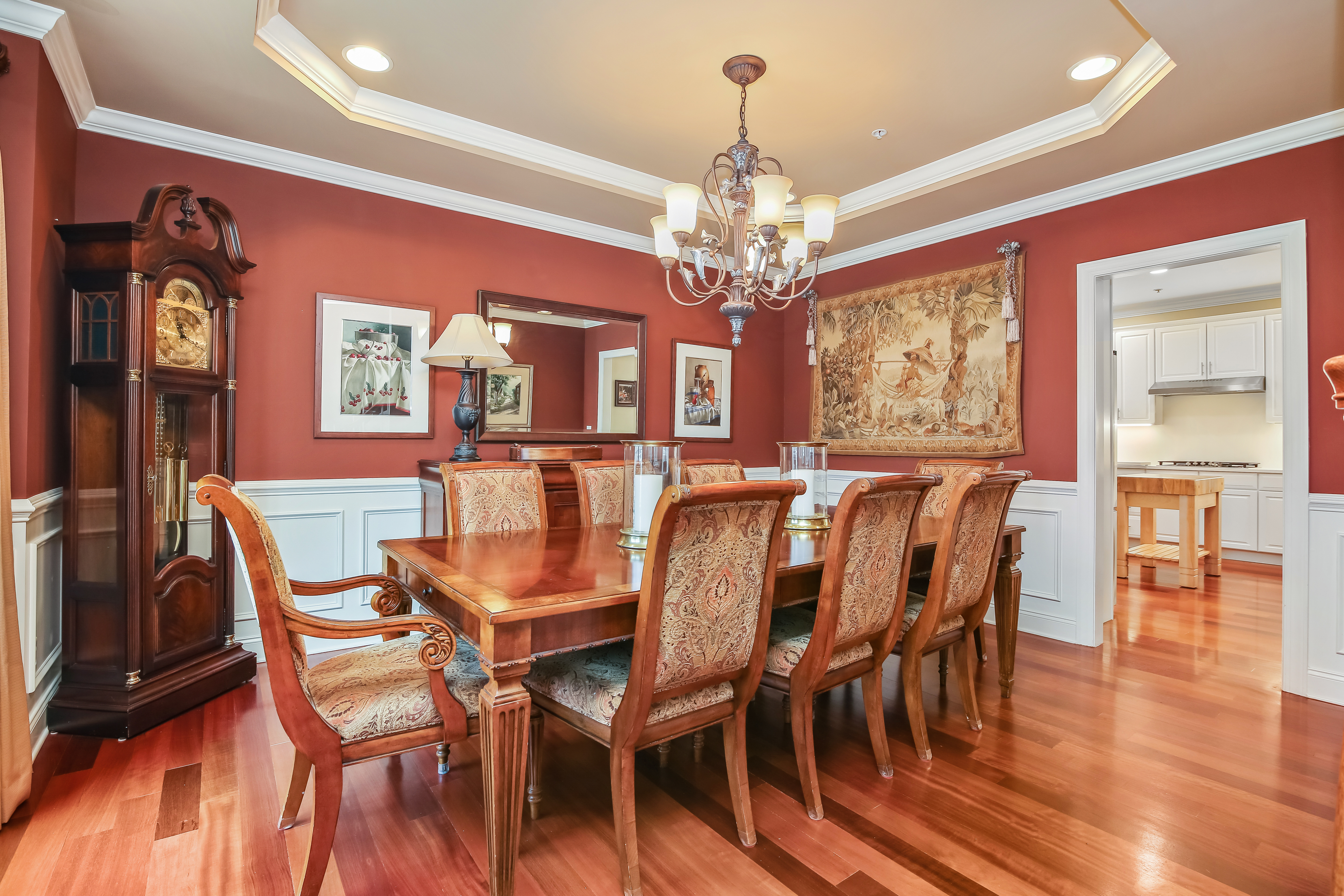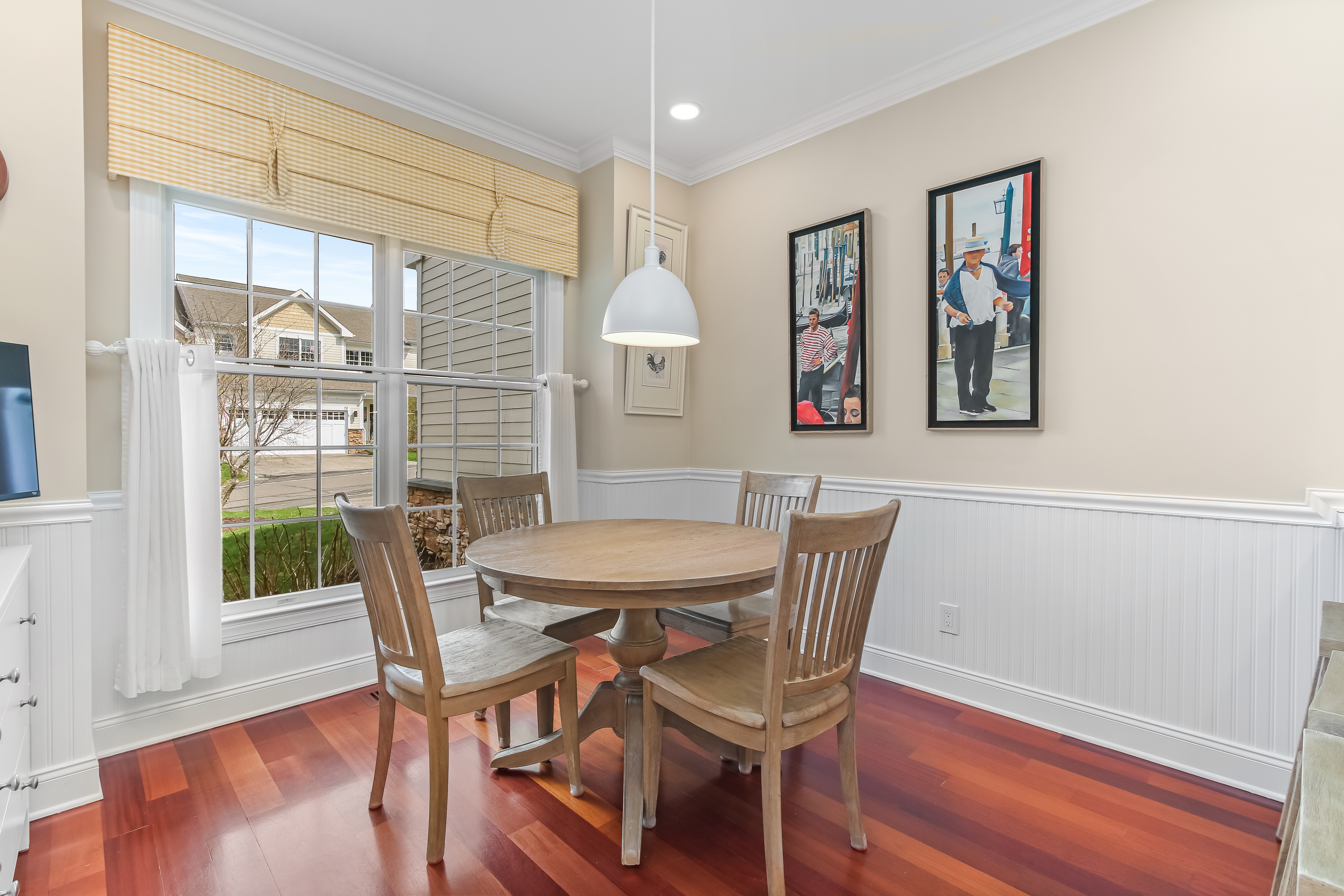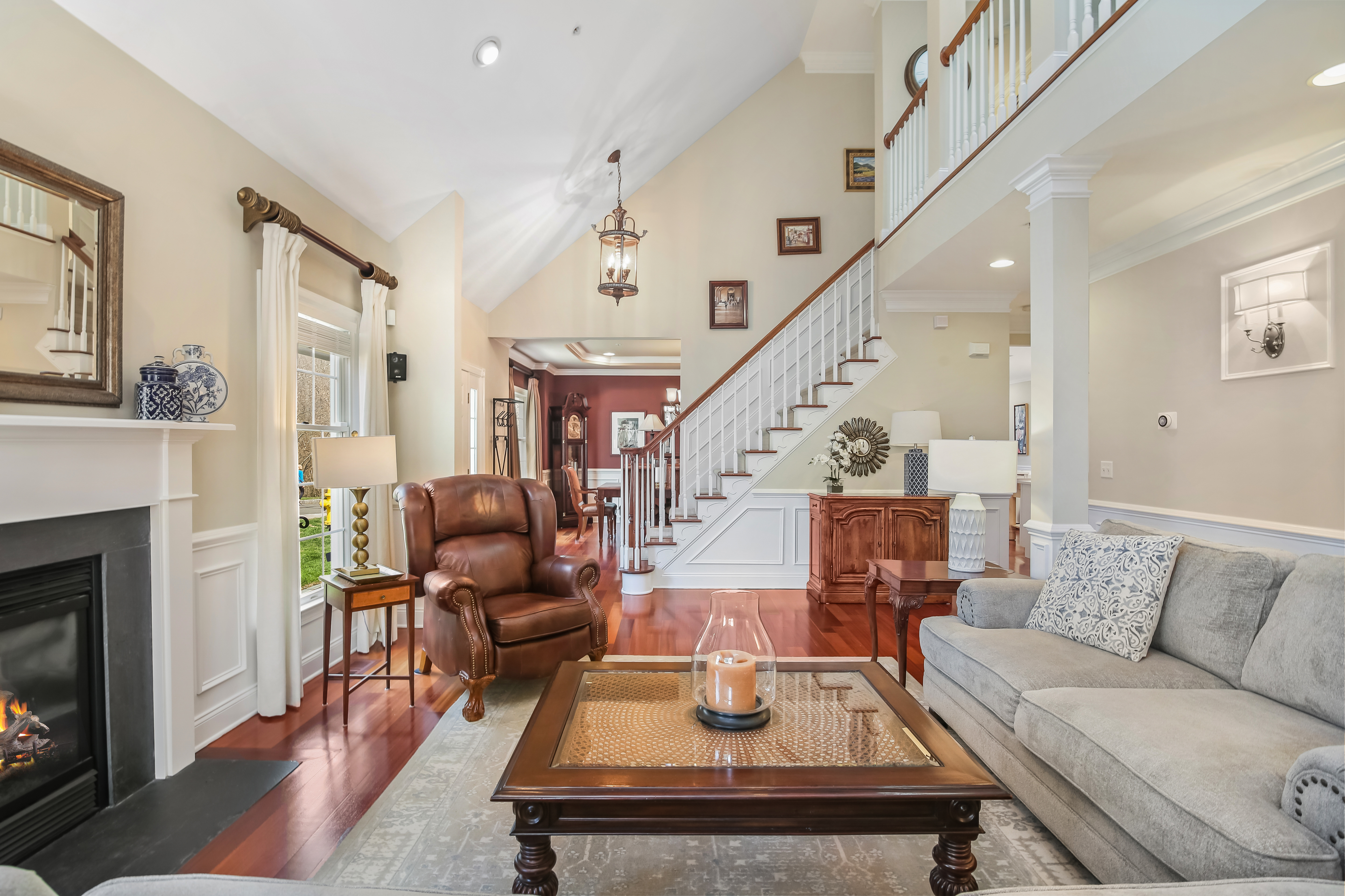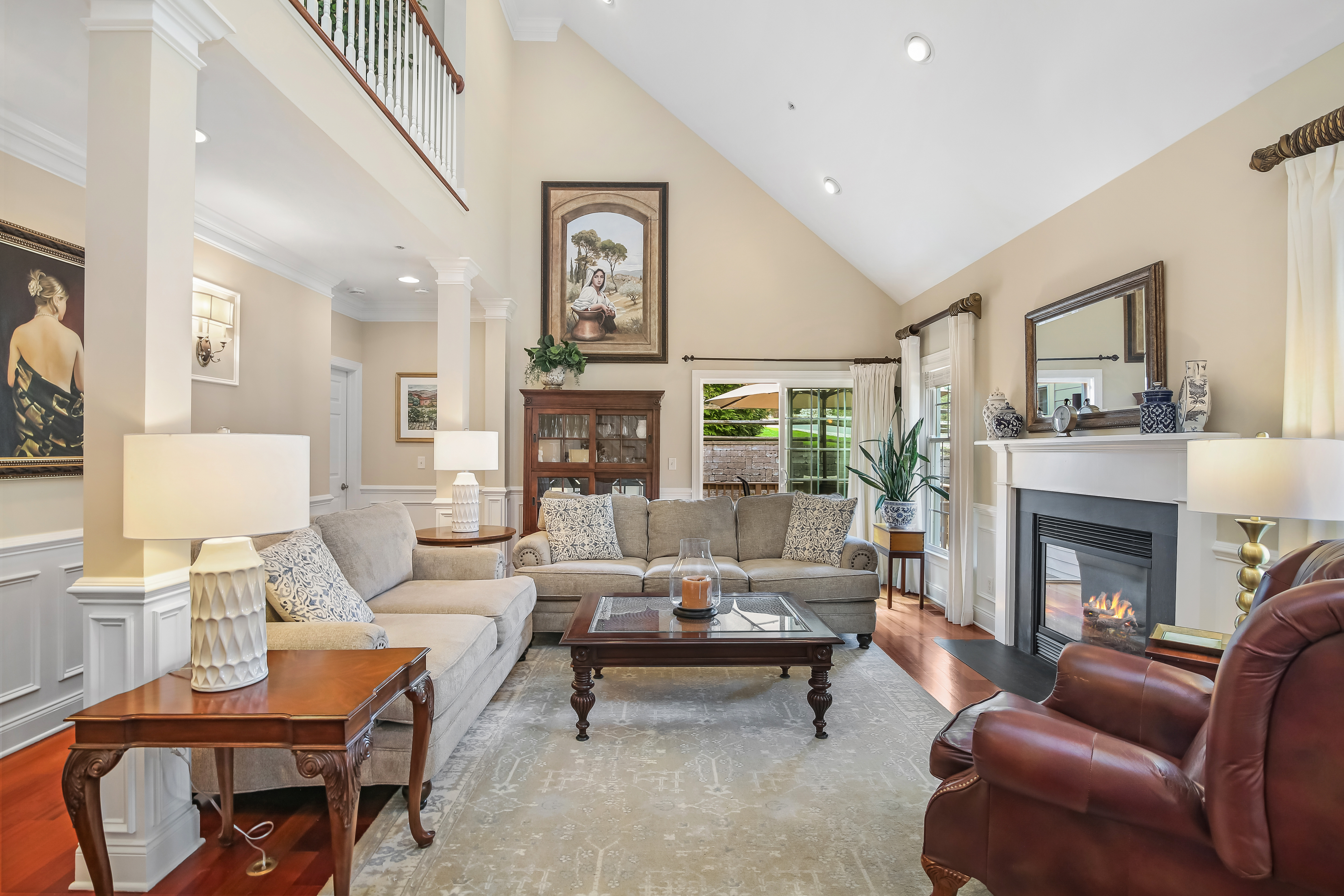 Experience the pinnacle of over-55 living in this meticulously updated "Grand View" end-unit. This home is the definition of turnkey, boasting elegant crown molding, built-in speakers, and gleaming hardwood floors throughout the main level. The heart of the home is a chef-inspired remodeled kitchen, designed for seamless flow into the formal dining room-perfect for hosting. The oversized first-floor primary suite is a true sanctuary, featuring a private sitting area, dual custom walk-in closets, and a luxuriously remodeled spa-bath. This retreat combines high-end style with thoughtful accessibility, including a walk-in shower with bench seating, and disguised handicap accessible features. Unique to this unit is the expansive finished basement, offering a half-bath and flexible space for endless possibilities such as a media room or gym. Plus a hobbyist's dream workshop. Upstairs, guests will feel right at home in a cozy family room complete with a wet bar, a spacious bedroom, and a versatile den/office. With newer mechanicals and a custom-organized garage entering directly into the kitchen, every detail of this home has been curated for an effortless, sophisticated lifestyle.