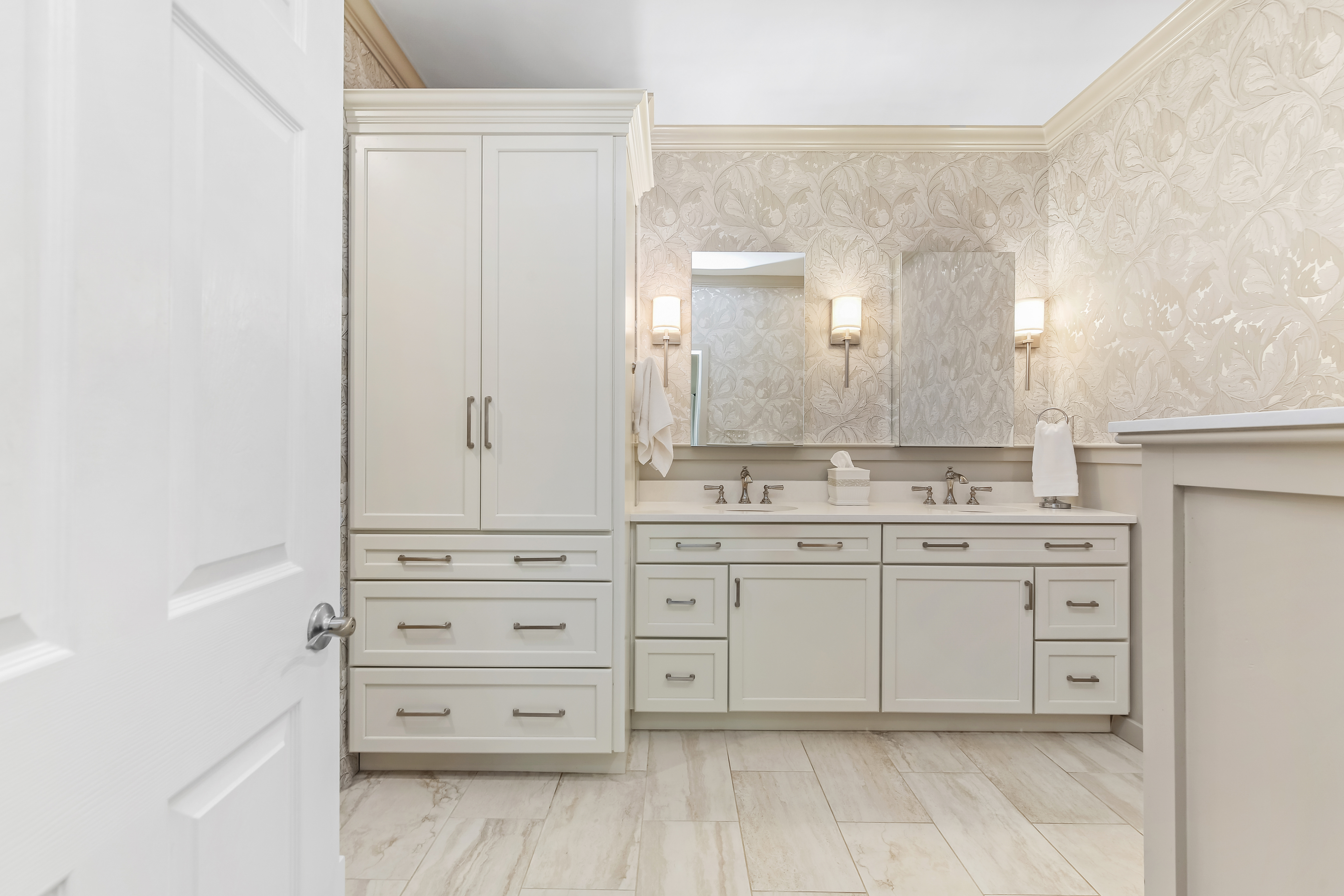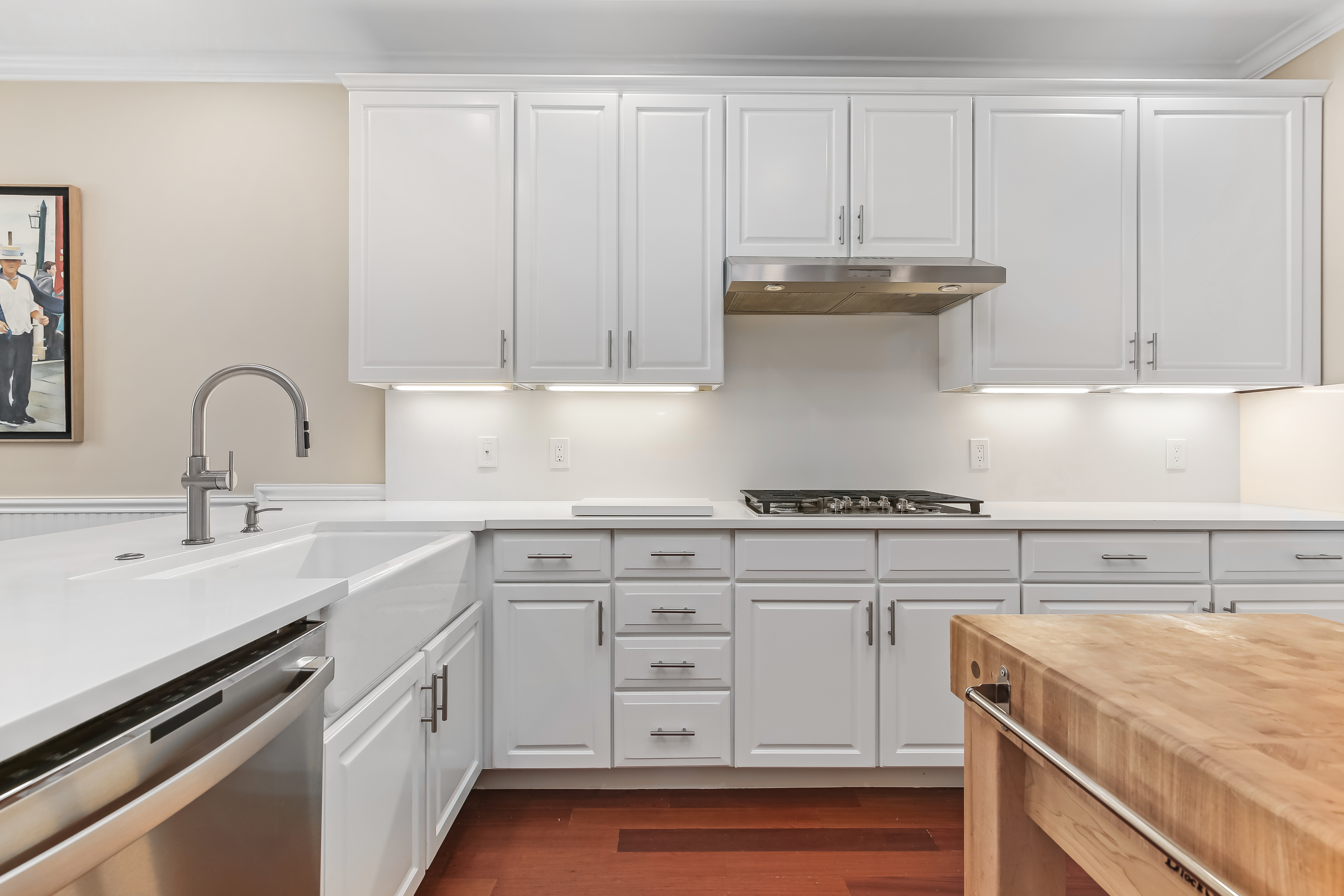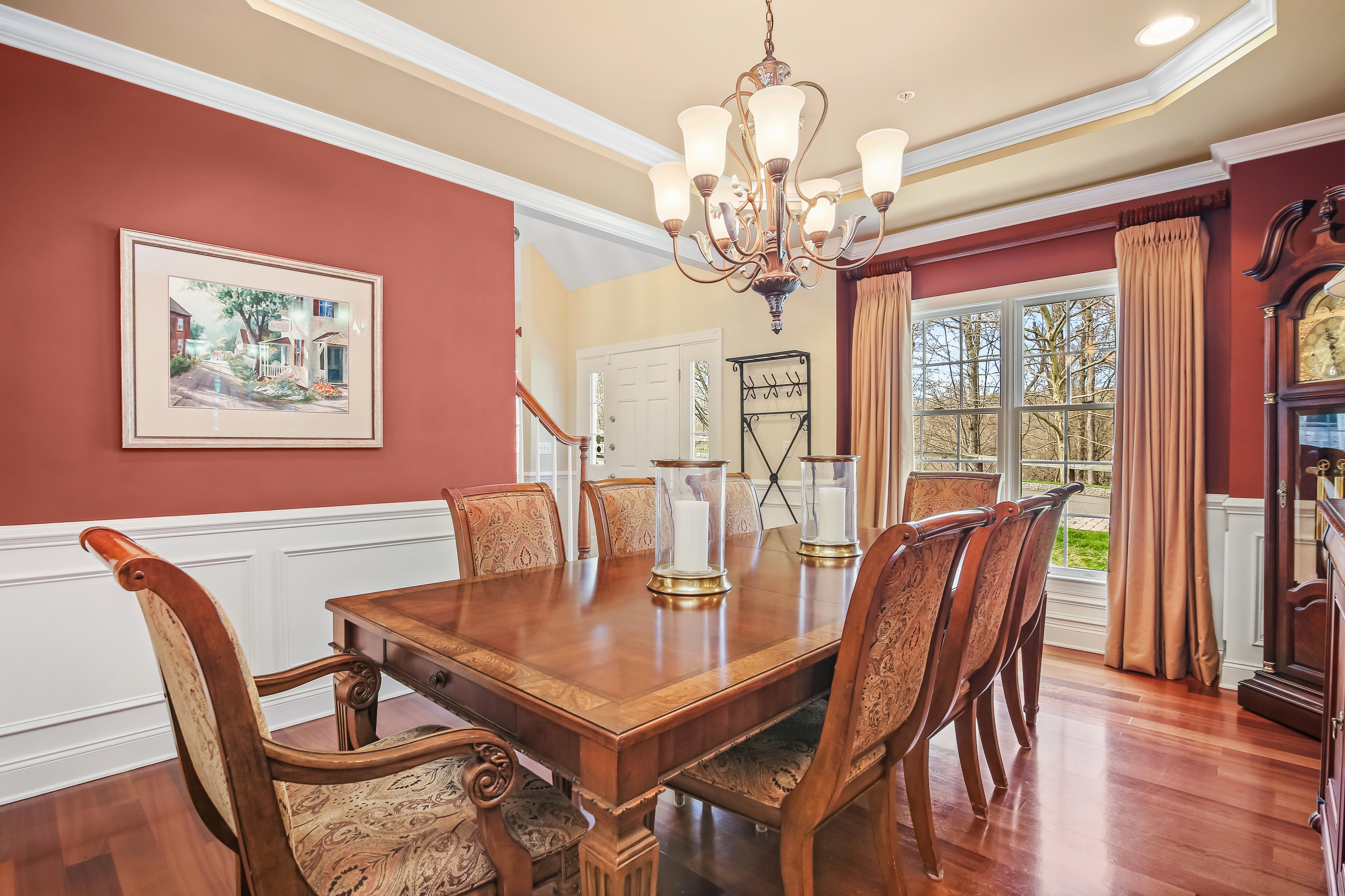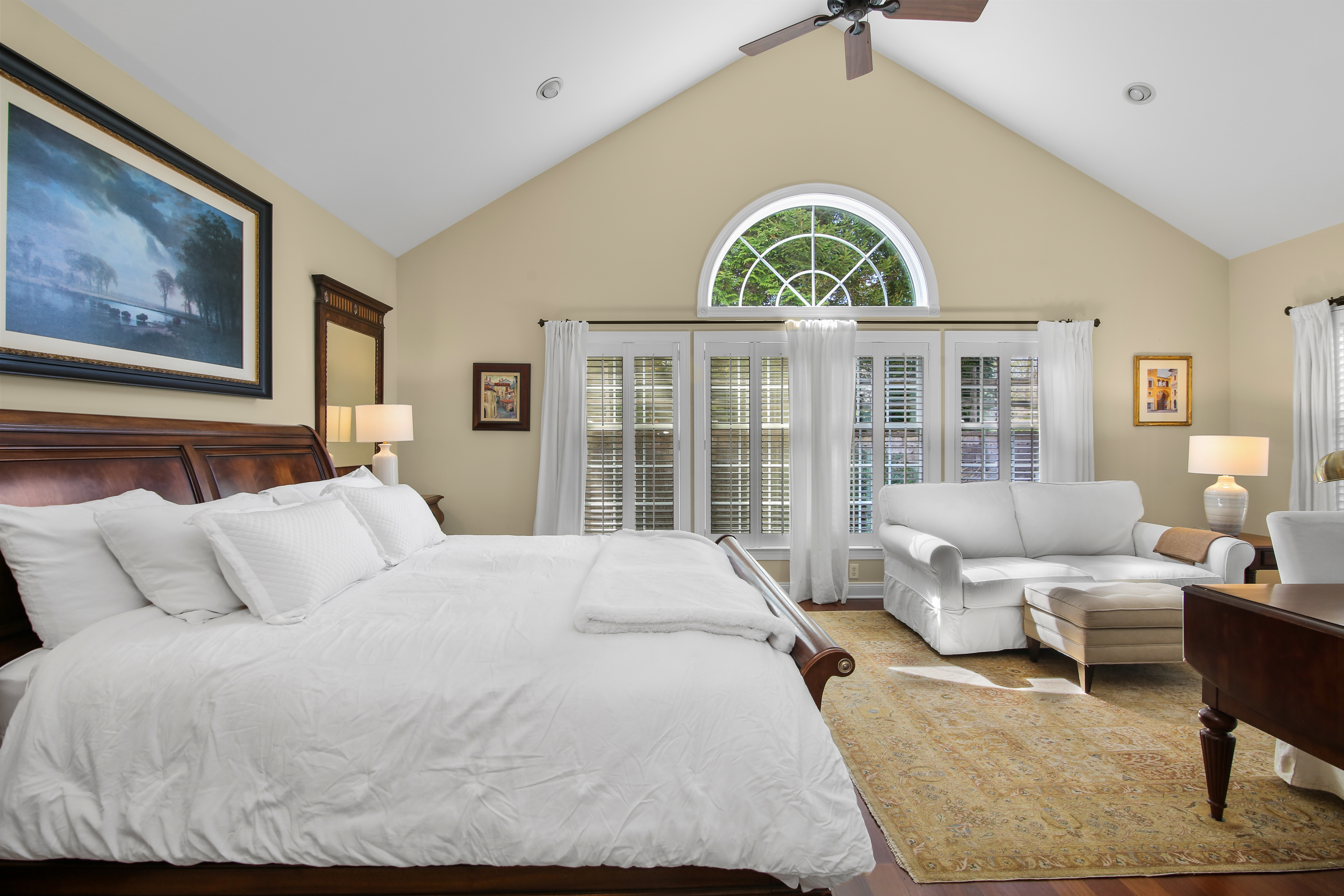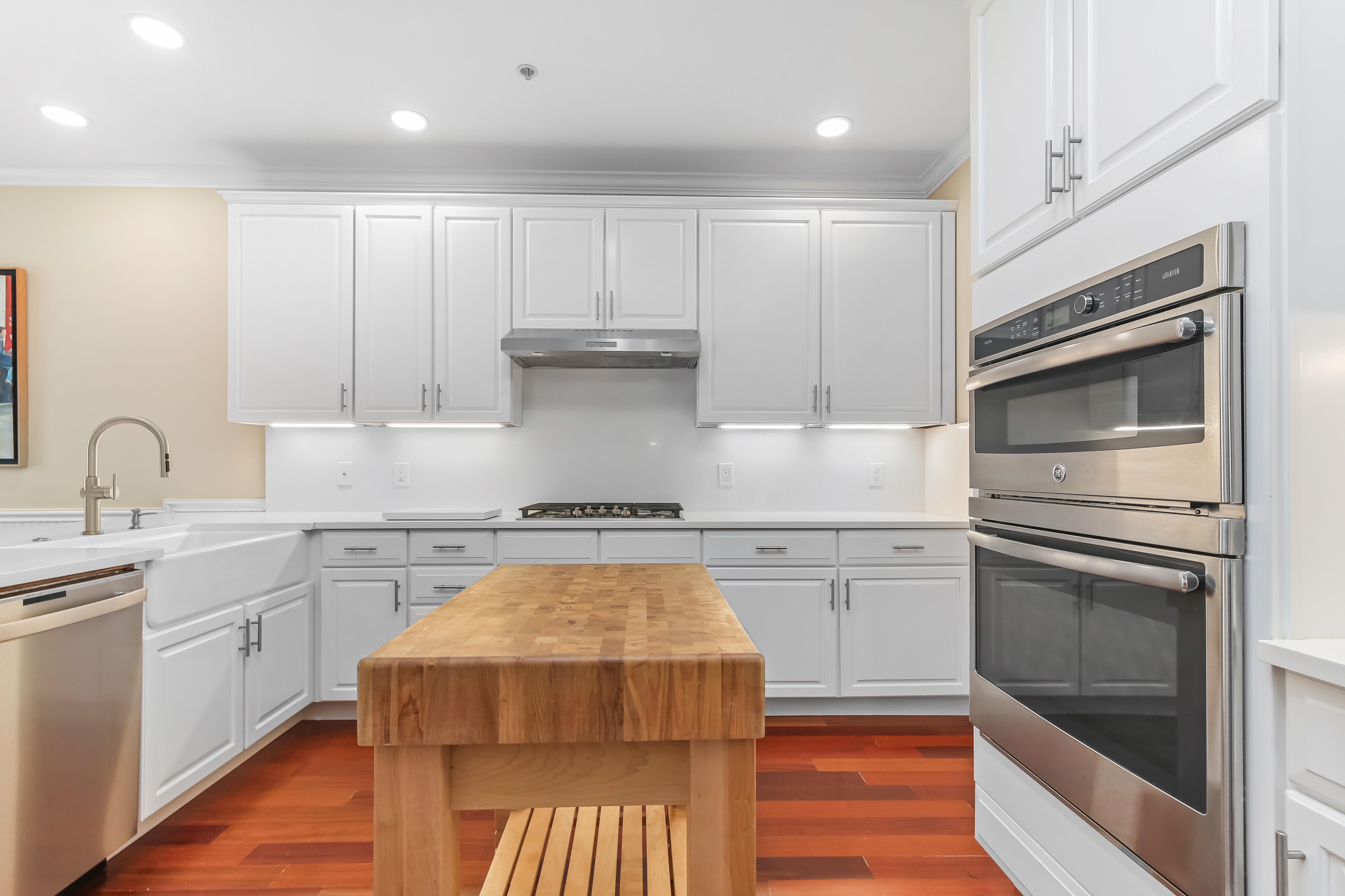 Experience the pinnacle of over-55 living in this meticulously updated "Grand View" end-unit. This home is the definition of turnkey, boasting elegant crown molding, built-in speakers, and gleaming hardwood floors throughout the main level. The heart of the home is a chef-inspired remodeled kitchen, designed for seamless flow into the formal dining room-perfect for hosting. The oversized first-floor primary suite is a true sanctuary, featuring a private sitting area, dual custom walk-in closets, and a luxuriously remodeled spa-bath. This retreat combines high-end style with thoughtful accessibility, including a walk-in shower with bench seating, and disguised handicap accessible features. Unique to this unit is the expansive finished basement, offering a half-bath and flexible space for endless possibilities such as a media room or gym. Plus a hobbyist's dream workshop. Upstairs, guests will feel right at home in a cozy family room complete with a wet bar, a spacious bedroom, and a versatile den/office. With newer mechanicals and a custom-organized garage entering directly into the kitchen, every detail of this home has been curated for an effortless, sophisticated lifestyle.