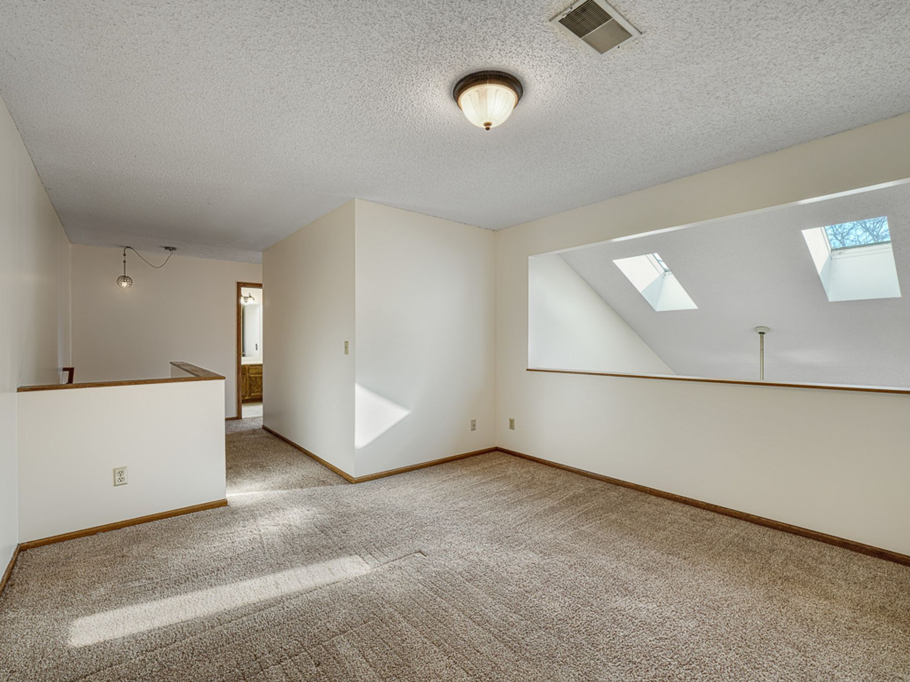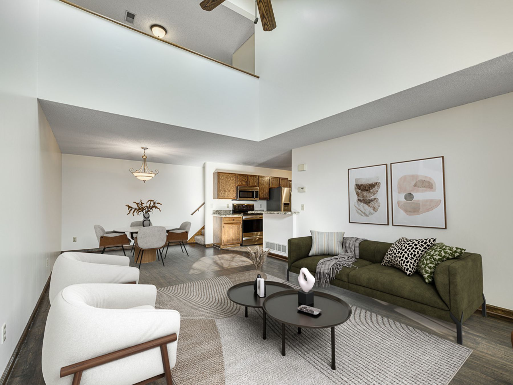 Welcome home to this three-bedroom, three-bathroom, move-in ready townhome! Enter inside to a bright, open-concept design ideal for comfortable everyday living! The freshly painted main level features generous natural light and high ceilings. The living and dining areas flow seamlessly. The main level has a breakfast bar, laundry and an oversized two-car attached garage. Upstairs, you'll find two bedrooms, a full bath, and a spacious loft - perfect for a home office. The finished lower level offers even more versatility with a third bedroom, a large 3/4 bathroom and a walk-in closet, or it can serve as a family room. Located in the Mounds View School District, close to restaurants, nearby parks, shopping, and major highways. A fantastic opportunity in a prime location - come take a look!