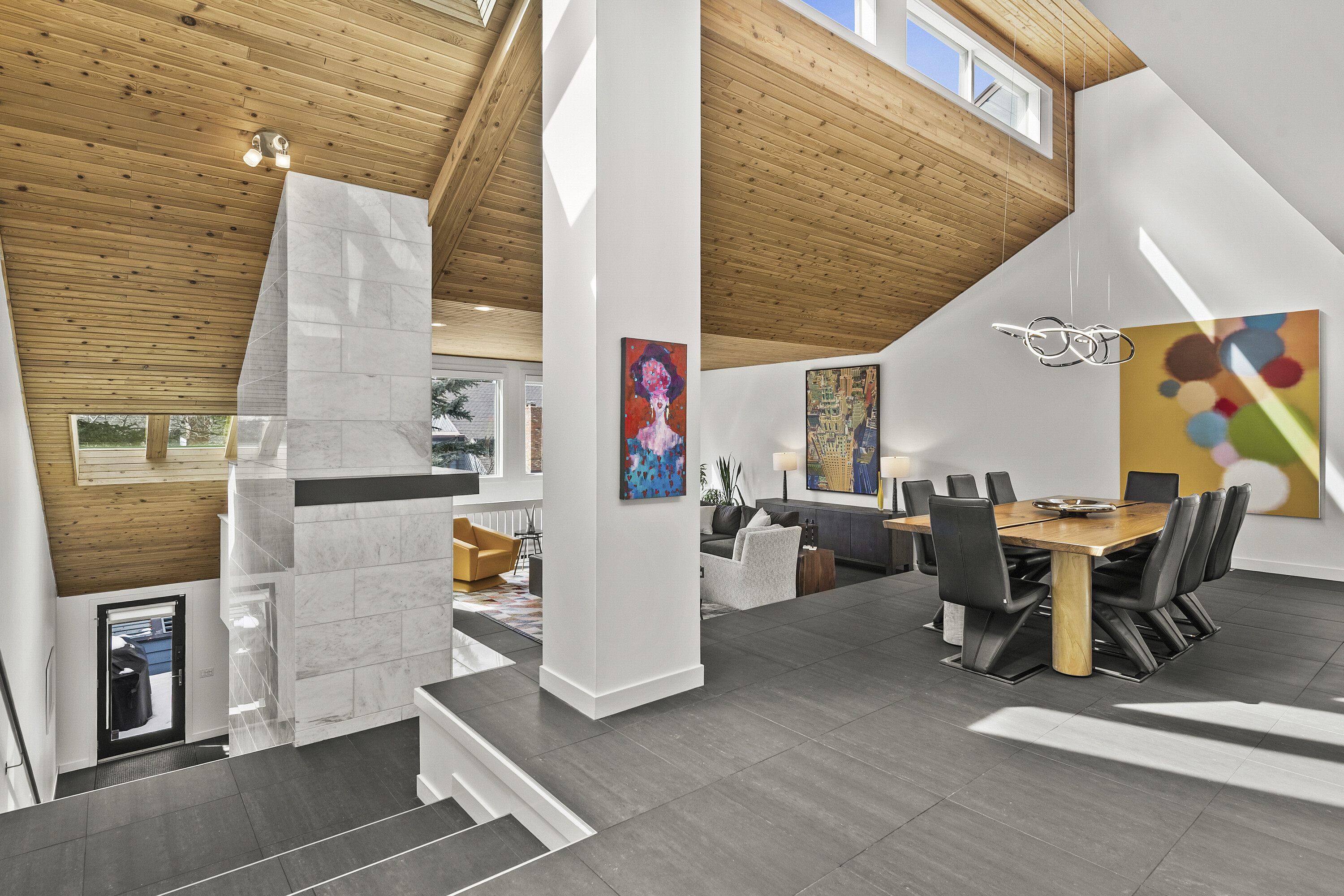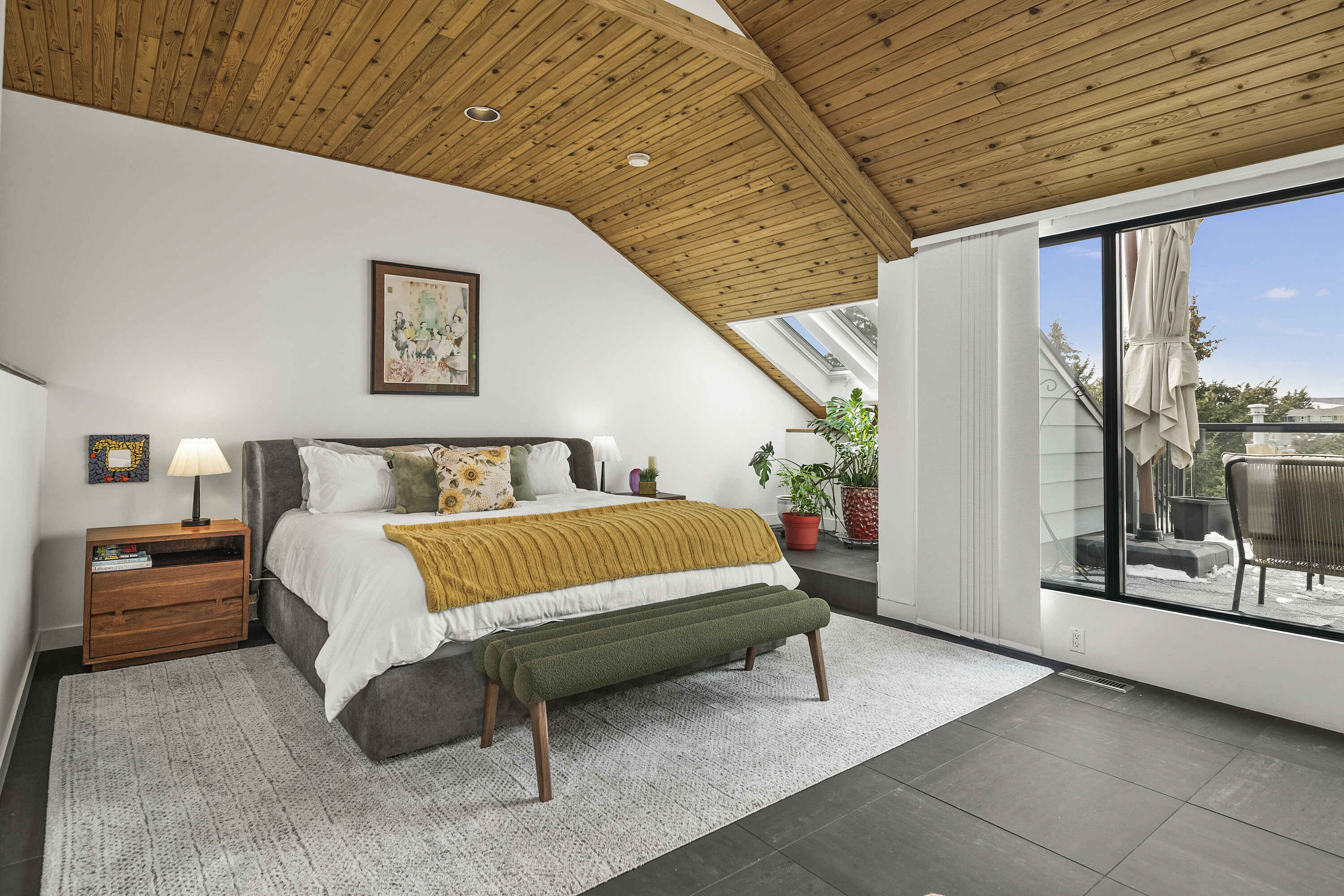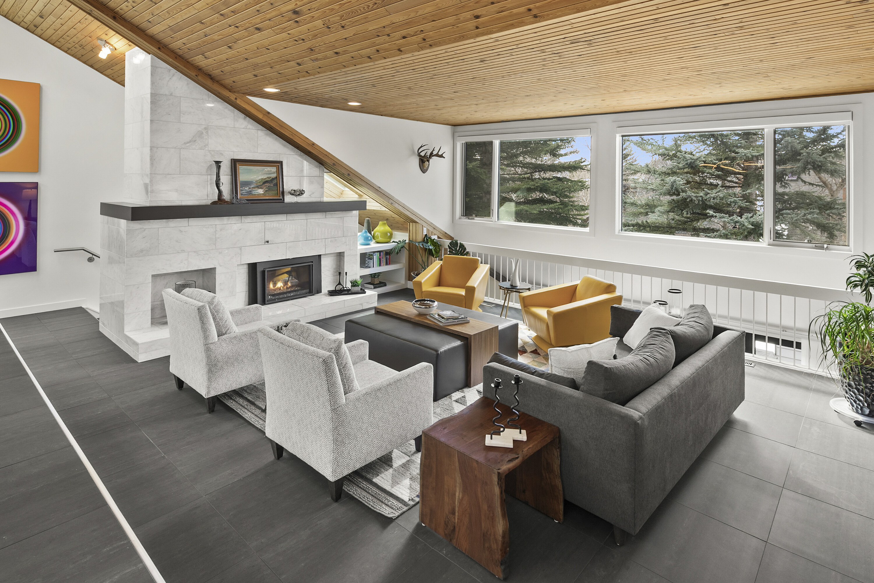 Welcome to this one-of-a-kind executive townhome in the prestigious enclave of Varsity Estates - an architectural offering that redefines luxury living. Spanning over 4,500 sqft of refined living space, this residence is part of an exclusive collection of just 16 executive townhomes, thoughtfully designed by renowned architect Gordon Atkins. Nestled among manicured green spaces & natural slopes, this is a rare opportunity to experience elevated living in a setting that feels both private & connected. Extensively updated, the home blends natural elements with modern sophistication and high-end finishes to create a warm yet refined aesthetic. Cedar ceilings, expansive skylights & striking architectural lines are complemented by abundant natural light, enhancing the open and airy design. The top level welcomes you with a grand foyer and leads to a true primary retreat, an inviting sanctuary featuring a spacious walk-in closet and a beautifully appointed ensuite with dual vanities, a glass-enclosed shower with dual shower heads, and a river rock base. A private west-facing terrace offers a peaceful outdoor escape. This level also features a versatile flex space with custom built-ins ideal for a home office, library, or fitness area & direct access to the oversized double attached heated garage with new epoxy floors (2025). The next level offers exceptional functionality with two generously sized bedrooms, enhanced by a striking open-to-below design, along with a full bathroom featuring a luxurious steam shower. A spacious family room provides the perfect setting for everyday living or hosting guests, while a well-appointed laundry area with additional storage completes the level. The main living level is a true showpiece, designed for both everyday living & elevated entertaining. The chef-inspired kitchen features a large island, premium KitchenAid & Miele appliances, gas cooktop, built-in convection wall oven, warming drawer, & oversized walk-in pantry. The dining area with designer lighting accommodates large gatherings, while the sunken living room, anchored by a striking marble-surround fireplace & dramatic vaulted cedar ceilings, creates an inviting yet sophisticated atmosphere. The lower level continues to impress with an additional recreation & entertaining space, a second fireplace & expansive wet bar featuring a wall oven, microwave, wine fridge, & dishwasher. A full bathroom & access to the mechanical room add further functionality. Seamless access to a large west-facing patio with a gas BBQ hookup creates effortless indoor-outdoor living. Ideally located just moments from the Silver Springs Golf Club, close proximity to the UofC, Foothills & Alberta Children's Hospitals, vibrant University District, & Market Mall, this home offers a rare balance of bold architectural design and accessibility. This is more than a residence, it is a rare and refined lifestyle, designed for those who appreciate architectural excellence, privacy, and uncompromising quality.