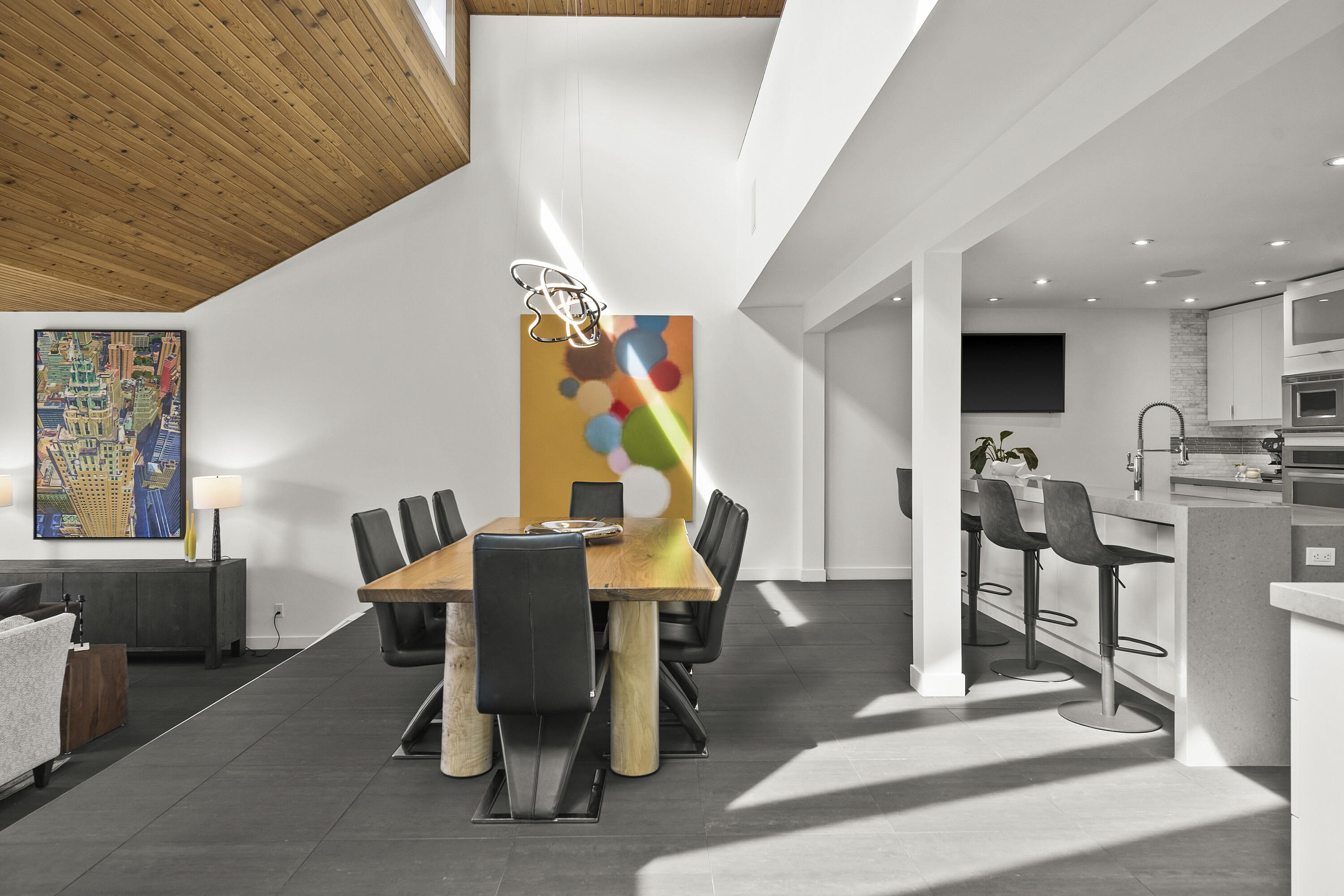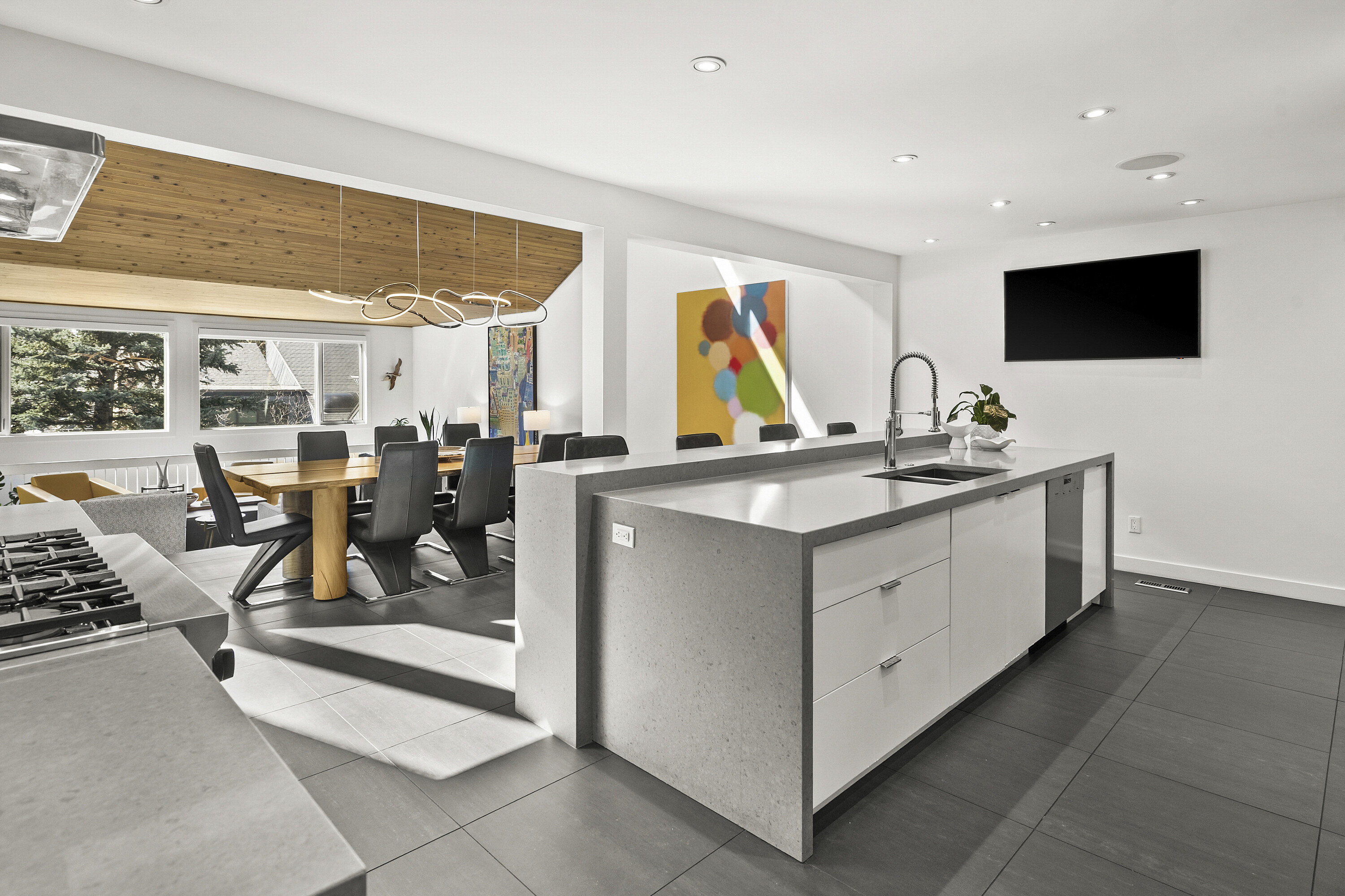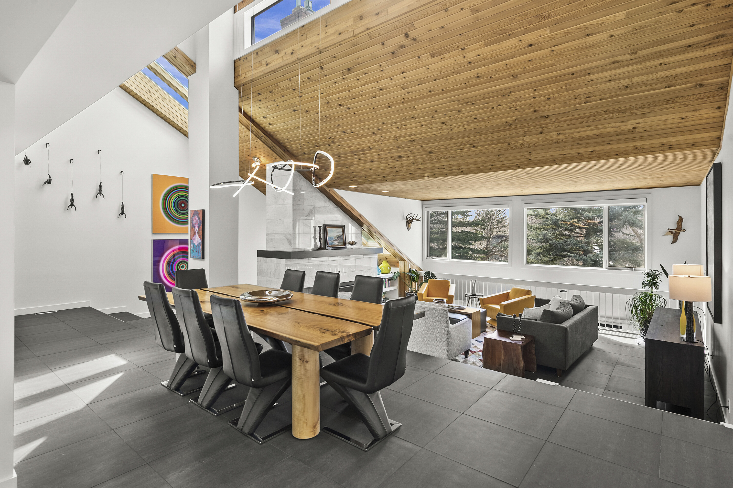 Welcome to this one-of-a-kind executive townhome in the prestigious enclave of Varsity Estates - an architectural offering that redefines luxury living. Spanning over 4,500 sqft of refined living space, this residence is part of an exclusive collection of just 16 executive townhomes, thoughtfully designed by renowned architect Gordon Atkins. Nestled among manicured green spaces & natural slopes, this is a rare opportunity to experience elevated living in a setting that feels both private & connected. Extensively updated, the home blends natural elements with modern sophistication and high-end finishes to create a warm yet refined aesthetic. Cedar ceilings, expansive skylights & striking architectural lines are complemented by abundant natural light, enhancing the open and airy design. The top level welcomes you with a grand foyer and leads to a true primary retreat, an inviting sanctuary featuring a spacious walk-in closet and a beautifully appointed ensuite with dual vanities, a glass-enclosed shower with dual shower heads, and a river rock base. A private west-facing terrace offers a peaceful outdoor escape. This level also features a versatile flex space with custom built-ins ideal for a home office, library, or fitness area & direct access to the oversized double attached heated garage with new epoxy floors (2025). The next level offers exceptional functionality with two generously sized bedrooms, enhanced by a striking open-to-below design, along with a full bathroom featuring a luxurious steam shower. A spacious family room provides the perfect setting for everyday living or hosting guests, while a well-appointed laundry area with additional storage completes the level. The main living level is a true showpiece, designed for both everyday living & elevated entertaining. The chef-inspired kitchen features a large island, premium KitchenAid & Miele appliances, gas cooktop, built-in convection wall oven, warming drawer, & oversized walk-in pantry. The dining area with designer lighting accommodates large gatherings, while the sunken living room, anchored by a striking marble-surround fireplace & dramatic vaulted cedar ceilings, creates an inviting yet sophisticated atmosphere. The lower level continues to impress with an additional recreation & entertaining space, a second fireplace & expansive wet bar featuring a wall oven, microwave, wine fridge, & dishwasher. A full bathroom & access to the mechanical room add further functionality. Seamless access to a large west-facing patio with a gas BBQ hookup creates effortless indoor-outdoor living. Ideally located just moments from the Silver Springs Golf Club, close proximity to the UofC, Foothills & Alberta Children's Hospitals, vibrant University District, & Market Mall, this home offers a rare balance of bold architectural design and accessibility. This is more than a residence, it is a rare and refined lifestyle, designed for those who appreciate architectural excellence, privacy, and uncompromising quality.