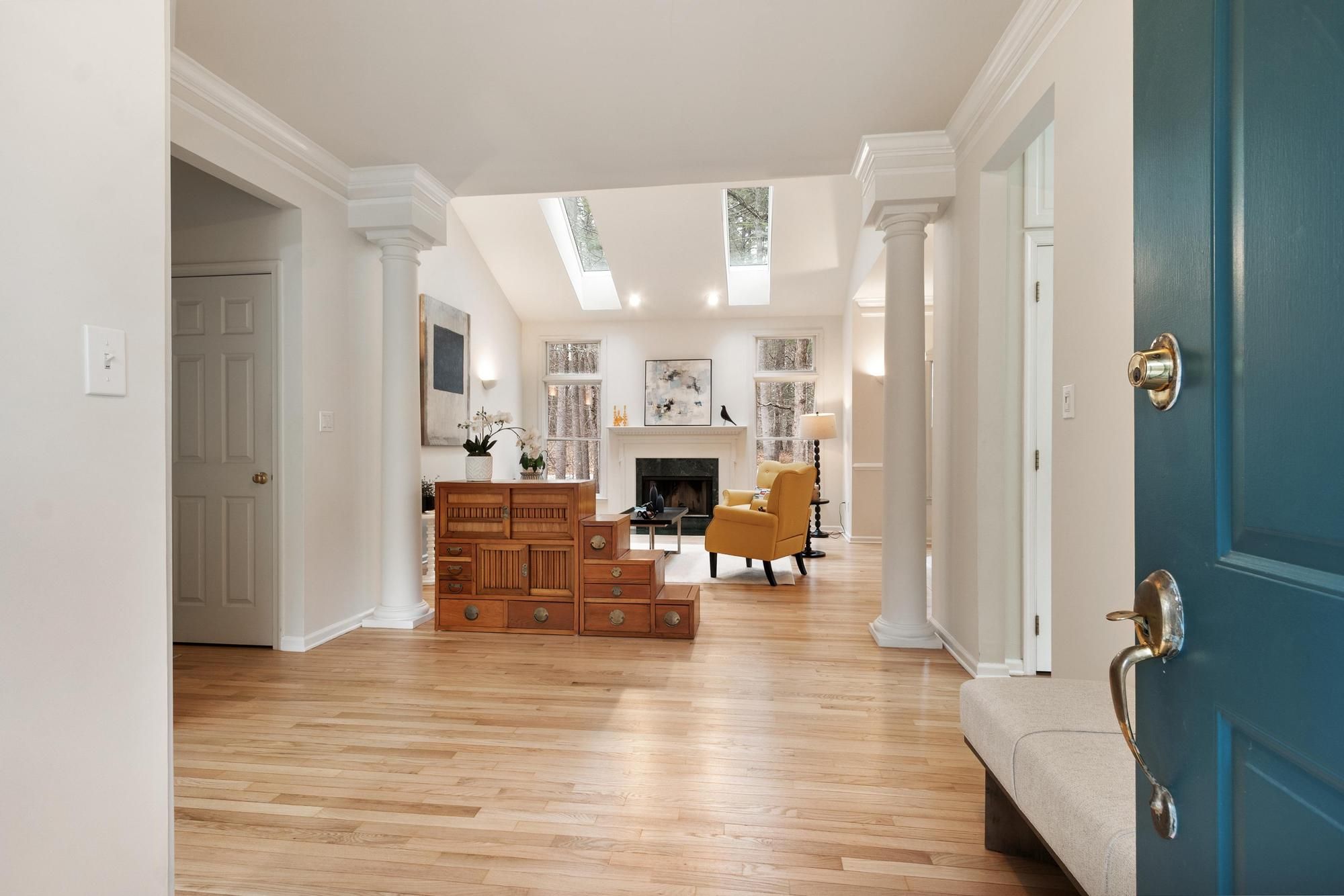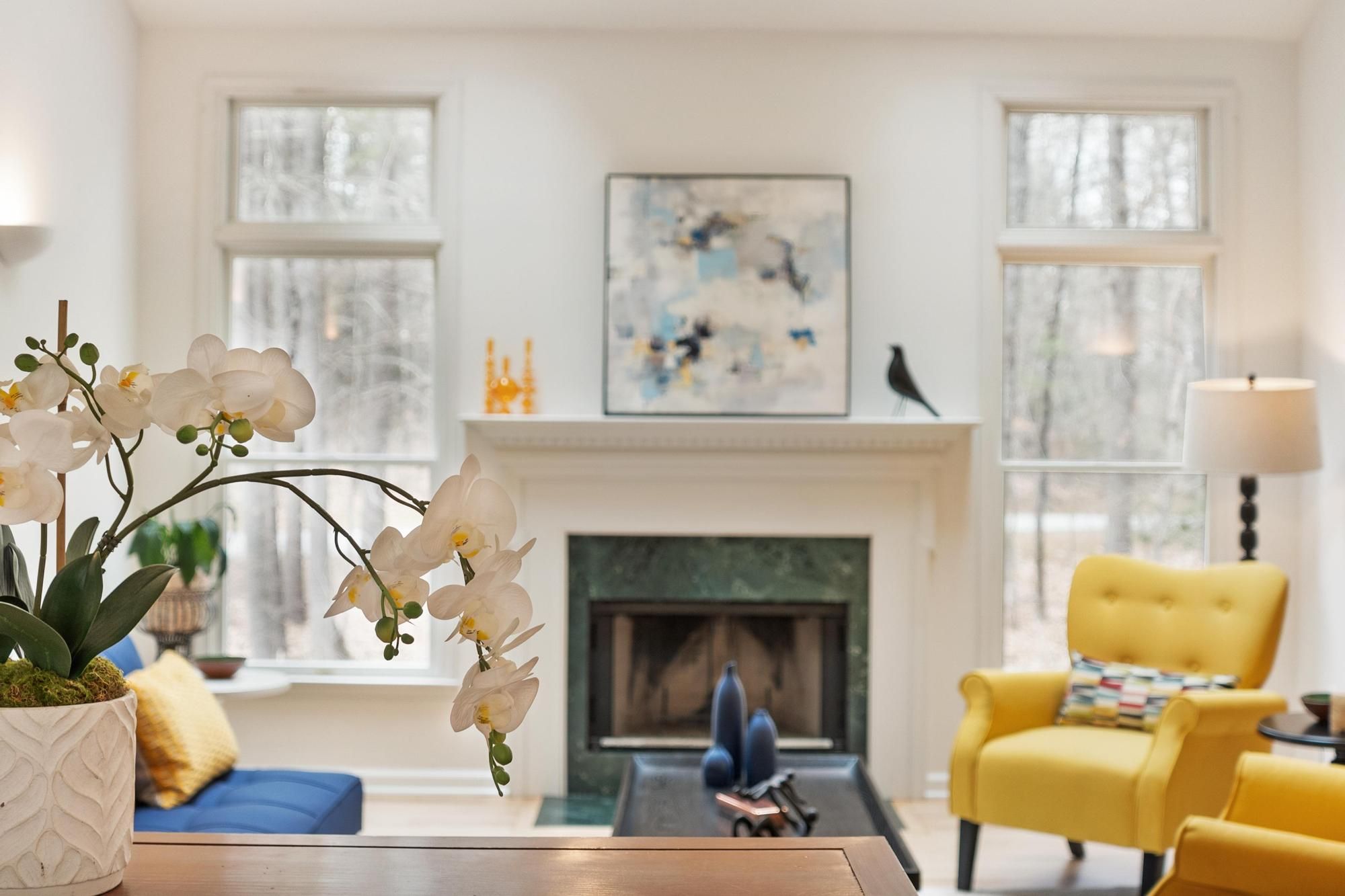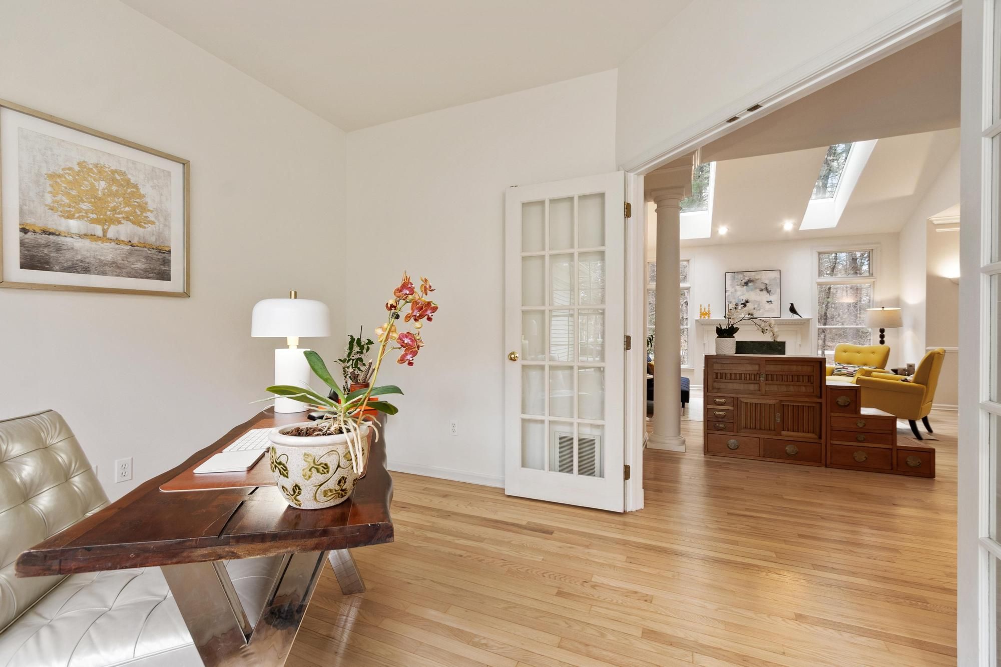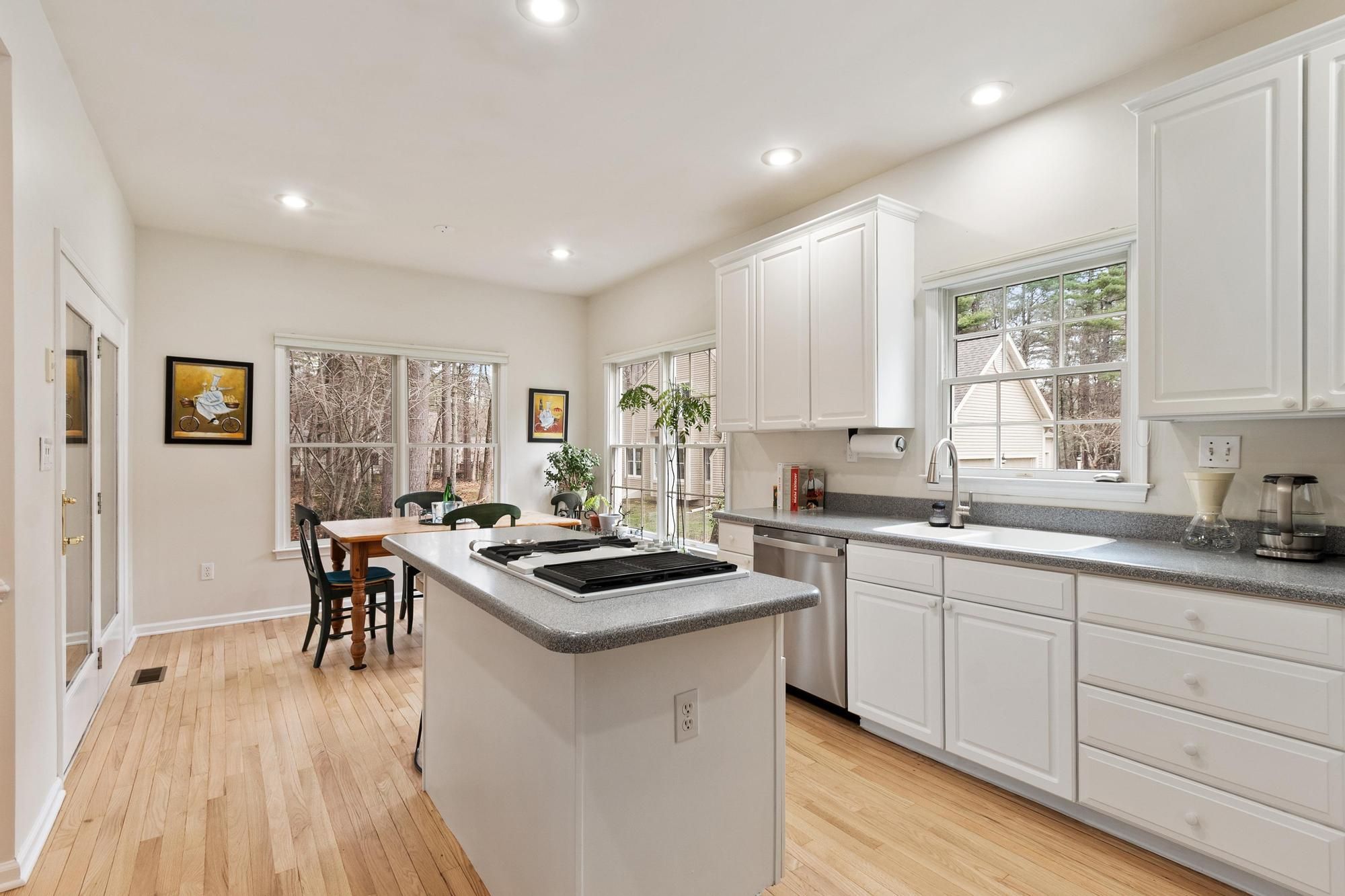 Exceptional opportunity at highly sought-after Huckins Farm! This desirable single-level home offers one of the community’s most popular floor plans, featuring 2 bedrooms, 2 full baths, a front office and sun-filled sunroom. Soaring ceilings and an open layout create a bright, airy feel, enhanced by oversized windows and abundant natural light. The year-round sunroom, complete with a mini split, opens to a private deck overlooking manicured grounds, mature trees, and peaceful common space on a quiet circle. Recent updates include refinished hardwood floors, fresh interior paint, new refrigerator, dishwasher, oven, and microwave. Additional highlights include a fireplace, spacious living areas, a 2-car attached garage, and a full basement ready to finish. The primary suite offers two walk-in closets. Enjoy exceptional amenities including a clubhouse, fitness center, pool, tennis courts, equestrian center, scenic trails, and conservation land. Move right in and enjoy Huckins Farm living!