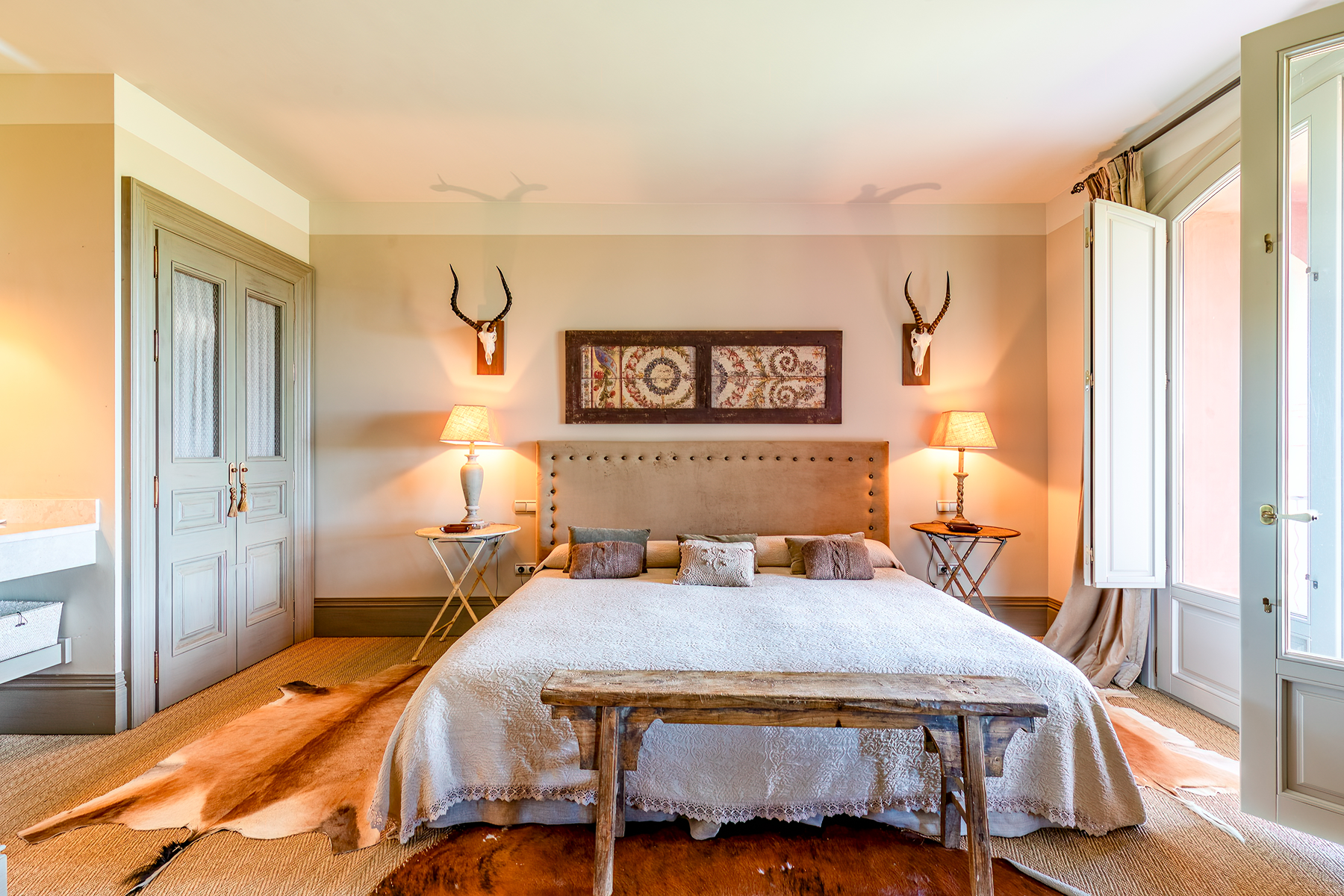 Dehesa los Cuartos is located near Monfragüe National Park and is just over two hours by car from Madrid. This estate covers an area of 217 hectares and has ten ponds, several streams, and two springs.The property includes a main residence, a house for the gamekeeper, a vegetable garden, wells, livestock management infrastructure, stables, a warehouse, and a riding arena that also serves as a bullring.The estate is completely fenced and organized in different sectors. Currently, it hosts a Limousin cattle farm, with around 100 high-quality genetic cattle. During the montanera season, Iberian pigs feed on acorns produced by the property's holm oaks.This estate is recognized as a private hunting ground for small game and wild boar, and receives an approximate subsidy of €30,000 from the Extremadura government under the Common Agricultural Policy.The impressive main house, with a surface area of 1,025 m², includes four ensuite bedrooms, a magnificent living room, and a spacious kitchen with a pantry. High-quality materials such as lacquered wood interior carpentry, natural stone flooring from Campaspero, and French oak parquet throughout the house stand out. The meticulous architecture and layout, as well as the exquisitely selected furniture, give this residence a unique character. Additionally, the property is surrounded by a garden with views of the Extremaduran landscape and has a swimming pool.Adjacent to the main house is the guest house, with 154 m² distributed in three bedrooms, each with an ensuite bathroom. The gamekeeper's house, on the other hand, has 238 m² and includes three bedrooms and a bathroom.As for the auxiliary facilities, there is a 120 m² garage and workshop, a 200 m² shed and annexes, as well as a 300 m² vegetable garden with various plantations. The livestock barns total 830 m², with a multipurpose barn and another one that includes 14 stalls and a tack room. Additionally, there is a riding arena and a 950 m² covered circular plaza.