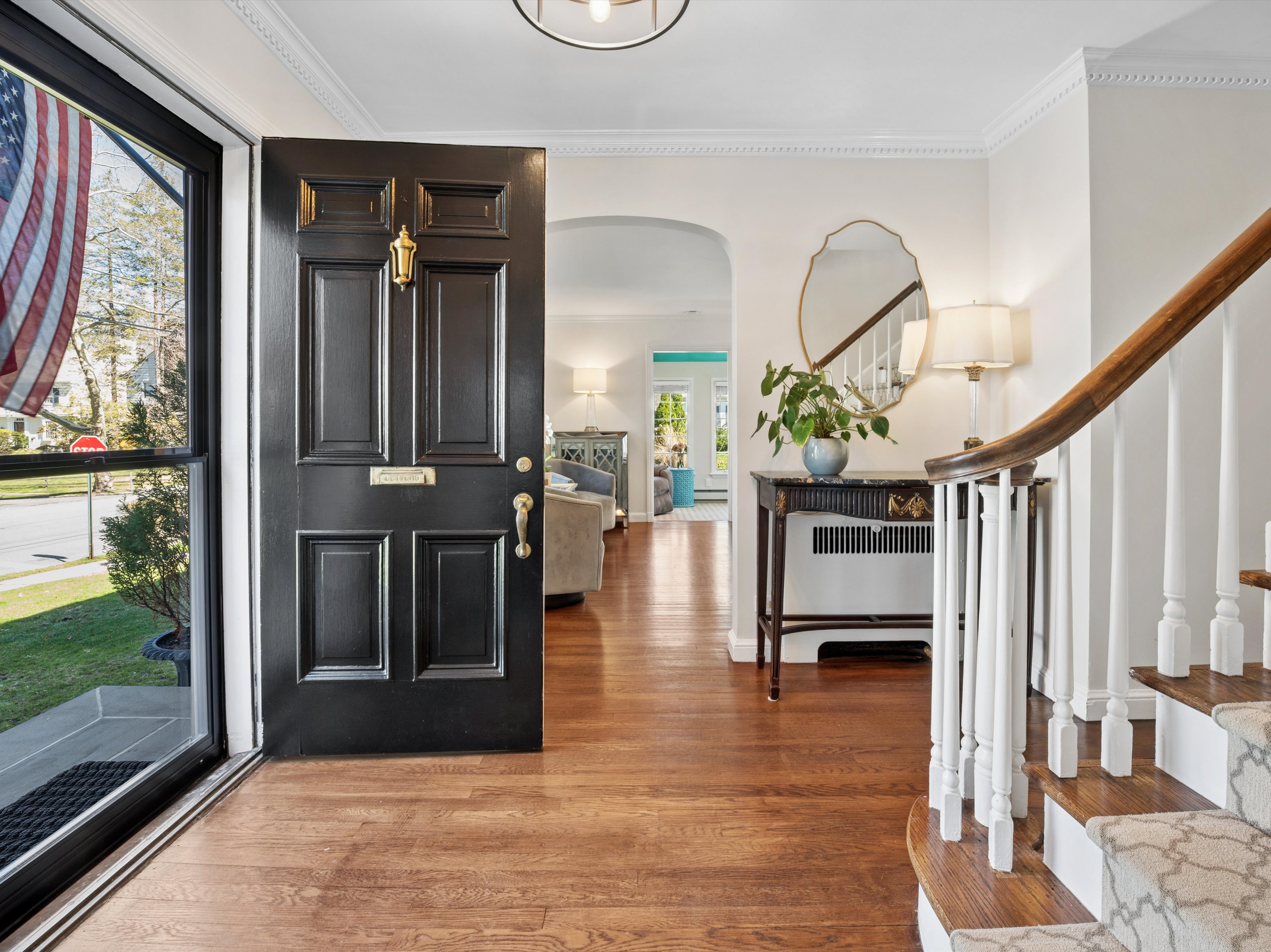 Perfectly positioned in the coveted Huntswood neighborhood, just moments from Bronxville Village and the Bronxville Field Club, this beautifully updated Colonial offers a rare blend of timeless charm, thoughtful design, and modern living. From the moment you arrive, the home's exceptional curb appeal enhanced by professionally designed landscaping, bluestone patio, and elegant hardscaping sets the tone for what awaits inside. The interior is warm and inviting, featuring a sunlit living room with custom built-ins and gas fireplace, a cozy sunroom, formal dining room and a seamless flow ideal for both everyday living and entertaining. The eat-in kitchen opens to a private outdoor retreat, perfect for al fresco dining. Upstairs, the primary suite features a newly renovated bath and custom walk in closet, complemented by two additional bedrooms, a hall bath, and a flexible home office or nursery. A finished attic provides bonus space currently used as a home gym. The lower level offers an additional 550+ square feet featuring custom built in cabinetry providing an ideal playroom, workout or hangout space. Extensively upgraded throughout, the home offers a true turnkey experience with modern comforts including a Tesla Level 2 wall charger, high-efficiency central air, updated mechanical systems, smart home technology, and a full suite of new appliances. This home delivers the best of suburban living with exceptional convenience.