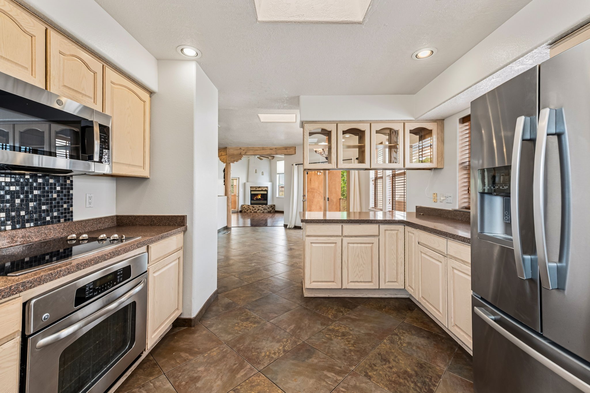 Experience elevated living in this Scott Patrick home, thoughtfully designed to capture breathtaking views of the Sandia Mountains. The main-level owner's suite is a true retreat, the luxurious en-suite bath features dual vanities, a relaxing jetted soaking tub, and a separate walk-in shower. The kitchen is beautifully appointed with stainless steel appliances and granite countertops. A spacious flex room provides incredible versatility--ideal as a fourth bedroom, home office, gym, or media room. Step outside to your own backyard oasis, designed for unforgettable entertaining. Enjoy evenings around the fire pit or host gatherings with ease thanks to the built-in grill. With fresh paint throughout and a new HVAC system, this home offers both style and peace of mind.