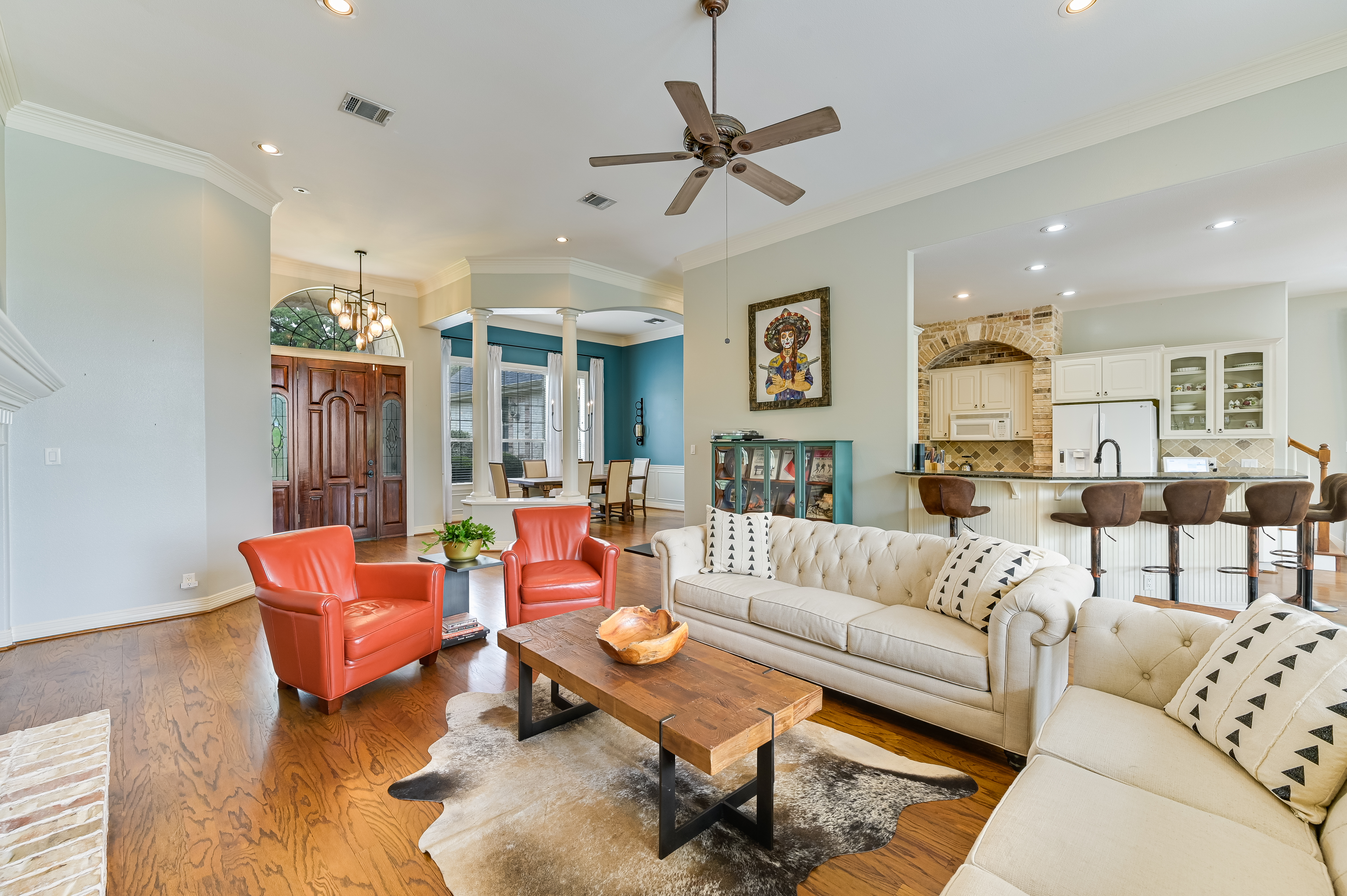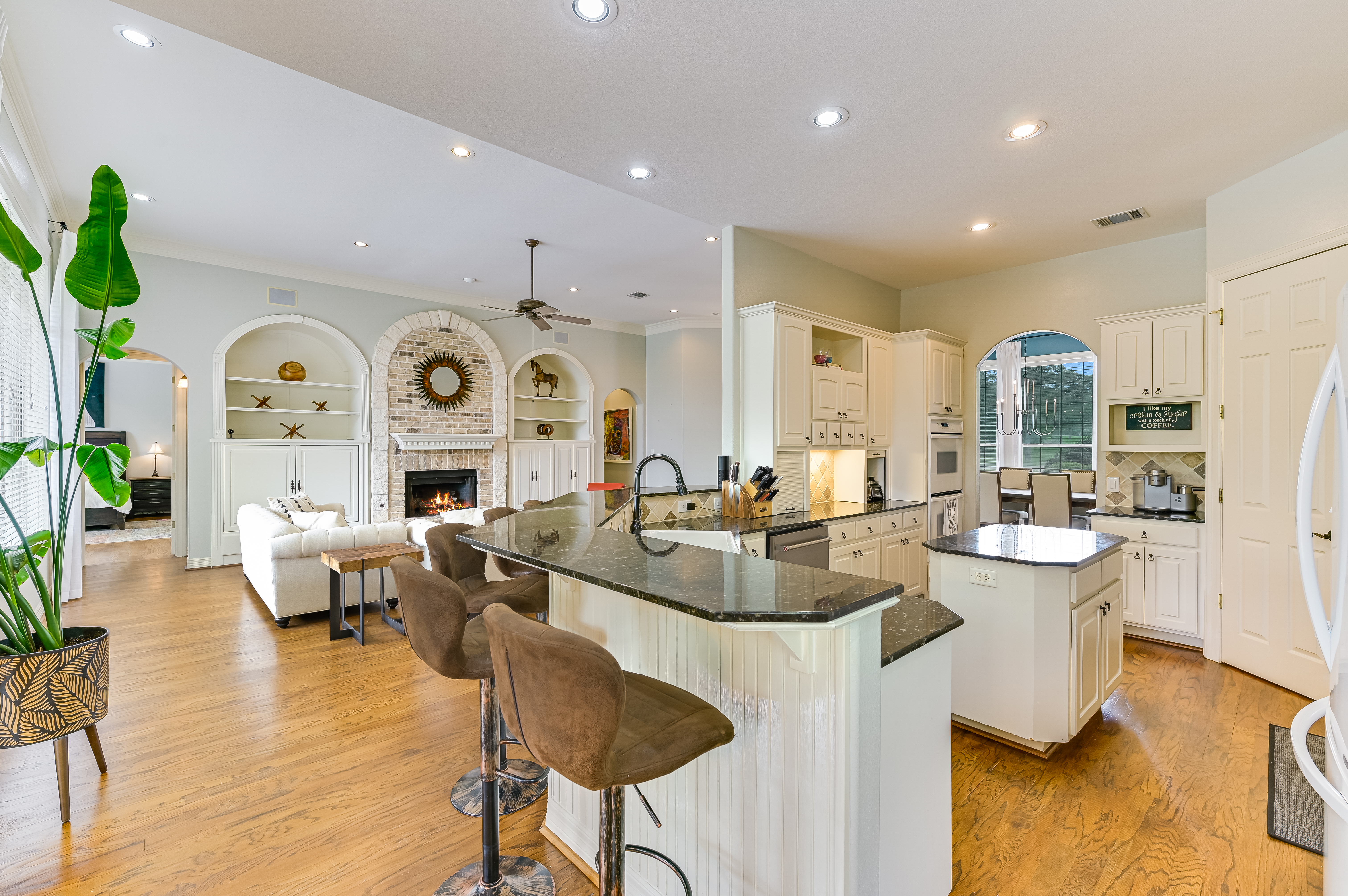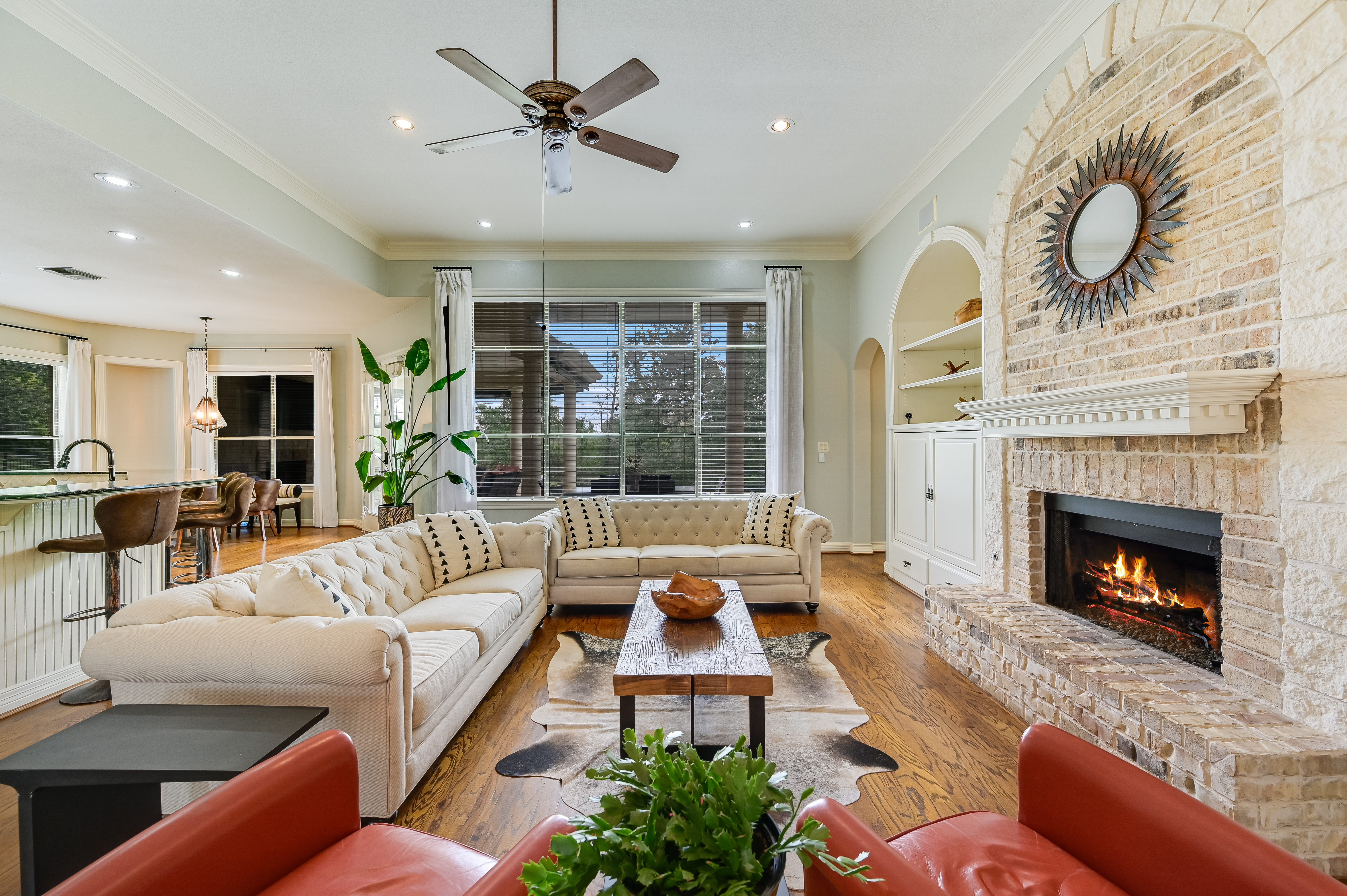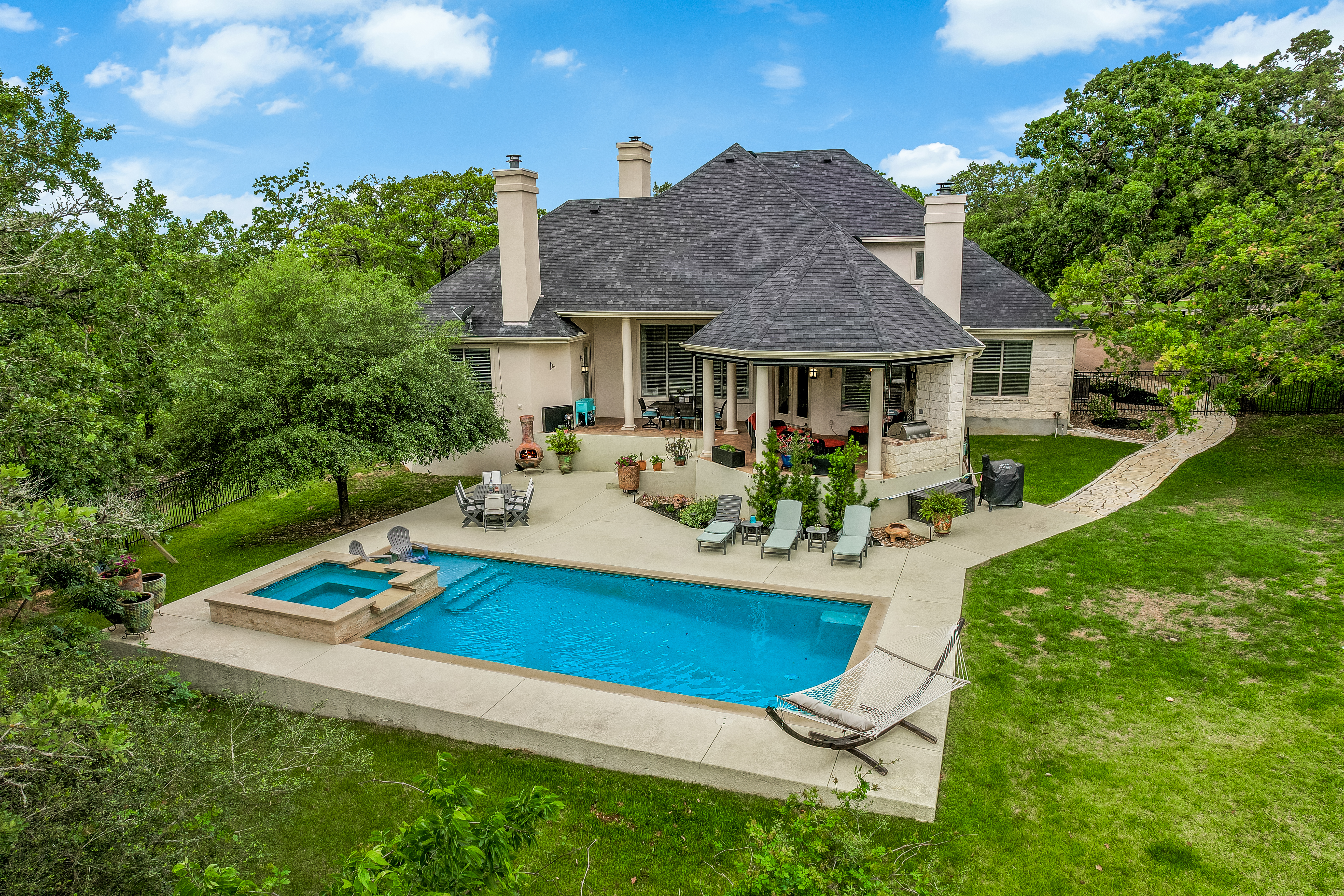 Colovista Country Club Charmer! ~ This gorgeous stone and brick custom residence sits on .834 acres and offers 2,733 SF of beautifully designed living space filled with charm and timeless details. From the moment you enter, you’ll appreciate the openness and natural light, highlighted by a striking fireplace, brick arches, graceful columns, crown molding, built-ins, and gorgeous hardwood floors. The gourmet kitchen is a true centerpiece, featuring granite countertops, double ovens, abundant cabinetry, and a large walk-in pantry—perfect for entertaining or everyday living. The spacious primary suite offers a relaxing retreat with its own fireplace. Three bedrooms plus a dedicated office/study provides flexibility for working from home, additional living space or 4th bedroom, while the upstairs bonus room with wet bar is ideal for a game room, media space, or guest area. Step outside to a fabulous outdoor living/dining area complete with a covered patio, outdoor fireplace, and built-in BBQ, all overlooking the sparkling heated pool and spa. A charming bridge crosses a seasonal dry creek, adding to the property’s character. Take in peaceful views of Colovista Golf Course hole #10 and the privacy of backing to a large ranch—offering the perfect blend of golf course living. Conveniently located between the historic towns of Bastrop and Smithville for shopping, dining, and medical services, with close proximity to major employers including Musk-related developments. Enjoy nearby access to two State parks, the Colorado River, and endless outdoor recreation—all within an easy drive to Austin.