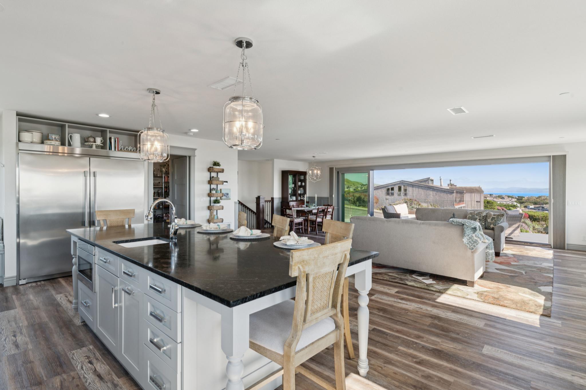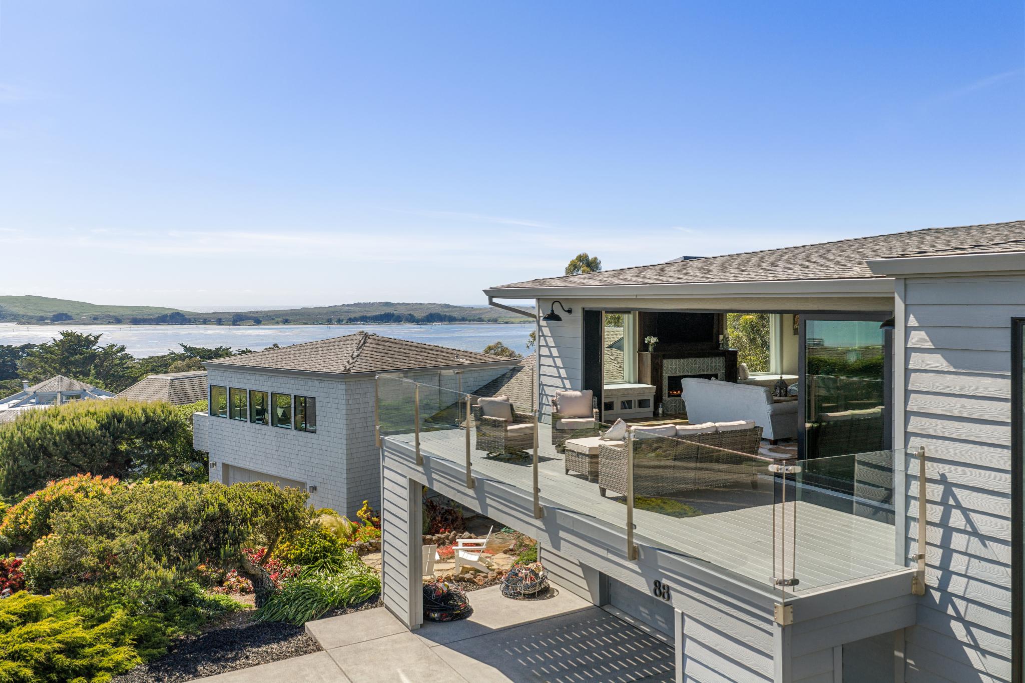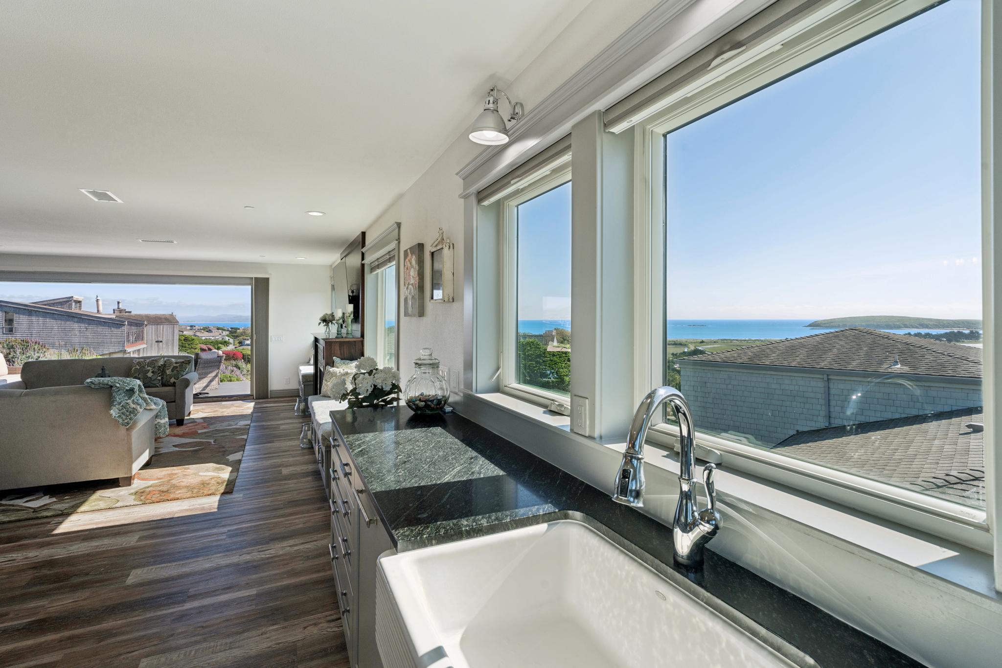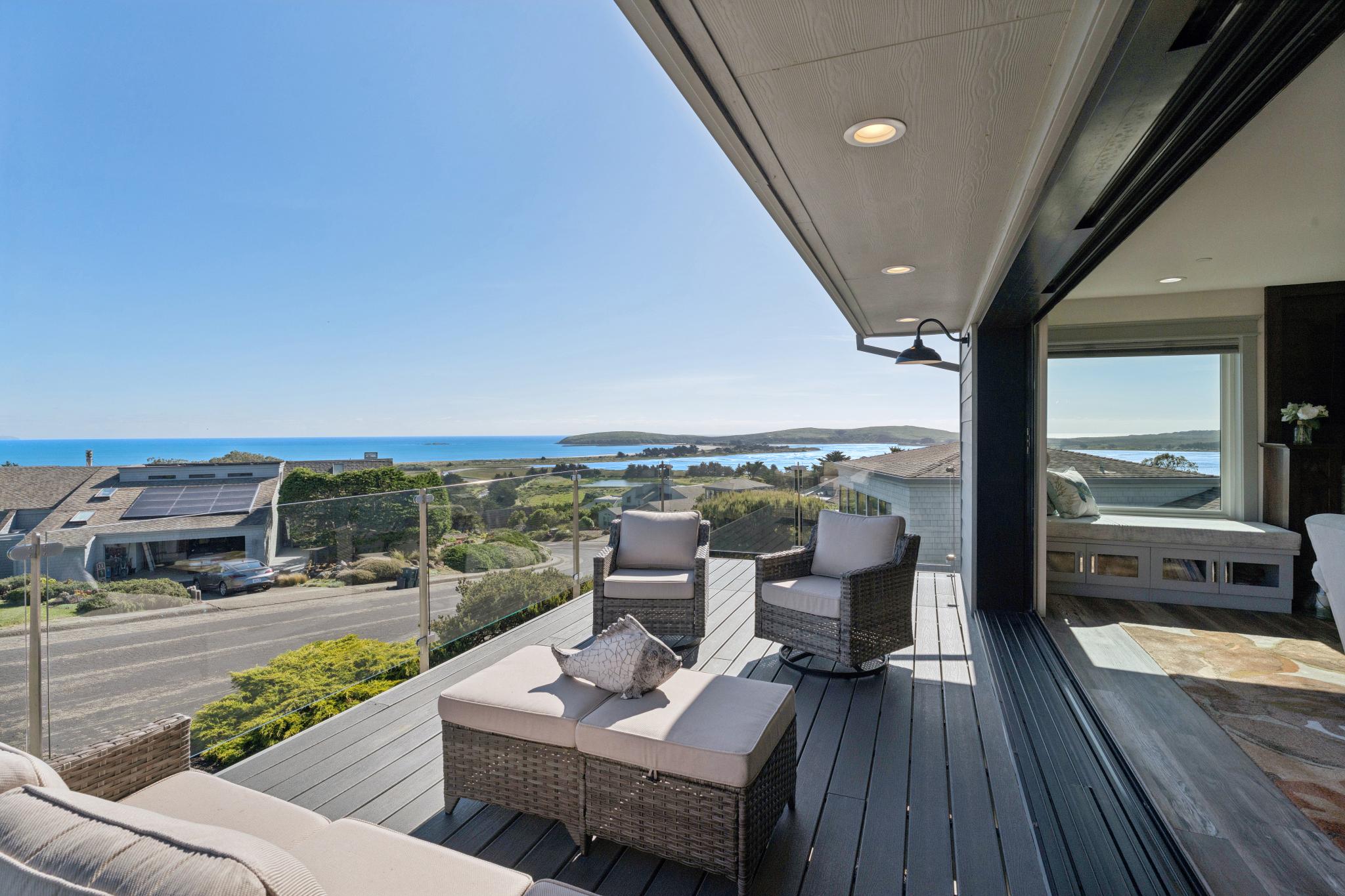 Dream coastal living awaits in this 4 bed 2.5 bath Bodega Harbour home with ±3,338 sq ft built in 2020. Take in expansive views of Doran Beach, Bodega Head, Bodega Harbor and Point Reyes from the main level, or relax with hillside privacy on the back patio. Thoughtfully designed, the spacious open floor plan invites seamless indoor outdoor living, perfect for hosting dinner parties indoors and on the low maintenance deck oriented to protect you from the ocean breeze while delighting in incredible sunset views. The large chef’s kitchen features a Fulgor 6-burner range with dual ovens, Electrolux fridge, plentiful storage space in the walk-in pantry, soapstone counters, touch-activated faucets, motored window shades and a beautiful marble backsplash. After dinner, take evening strolls along the beach or scenic coastal trails just minutes away. Main level living also includes the primary bedroom and ensuite bath, additional bedroom, half bath and laundry room. The primary suite acts as your own private coastal sanctuary, featuring a spa-inspired soaking tub set before an ocean-view window, walk-in closet with ample shelving, rotating custom shoe storage,large walk-in shower with 3 shower heads, dual sinks, and vanity nook. Accessibility considered, Wiltek Hydraulic elevator provides seamless access to both levels. The lower level includes a generous great room, 2 guest bedrooms, full bath, and large 4-car garage for all your storage needs. The home also features a 10.5kW solar system with Enphase microinverters and grandfathered NEM 2 net metering, delivering significantly higher energy savings than new solar installations. As part of the sought-after Bodega Harbour community, you’ll enjoy access to the 18-hole golf course with ocean views from every hole, pool, sauna, tennis courts, pickleball courts, clubhouse, a fitness center, basketball, two dining outlets, and onsite patrol service. Ideally located for a vacation home, just about an hour from the Golden Gate Bridge, 40 minutes from STS Airport, and a short drive to local fine dining and world renowned wineries!