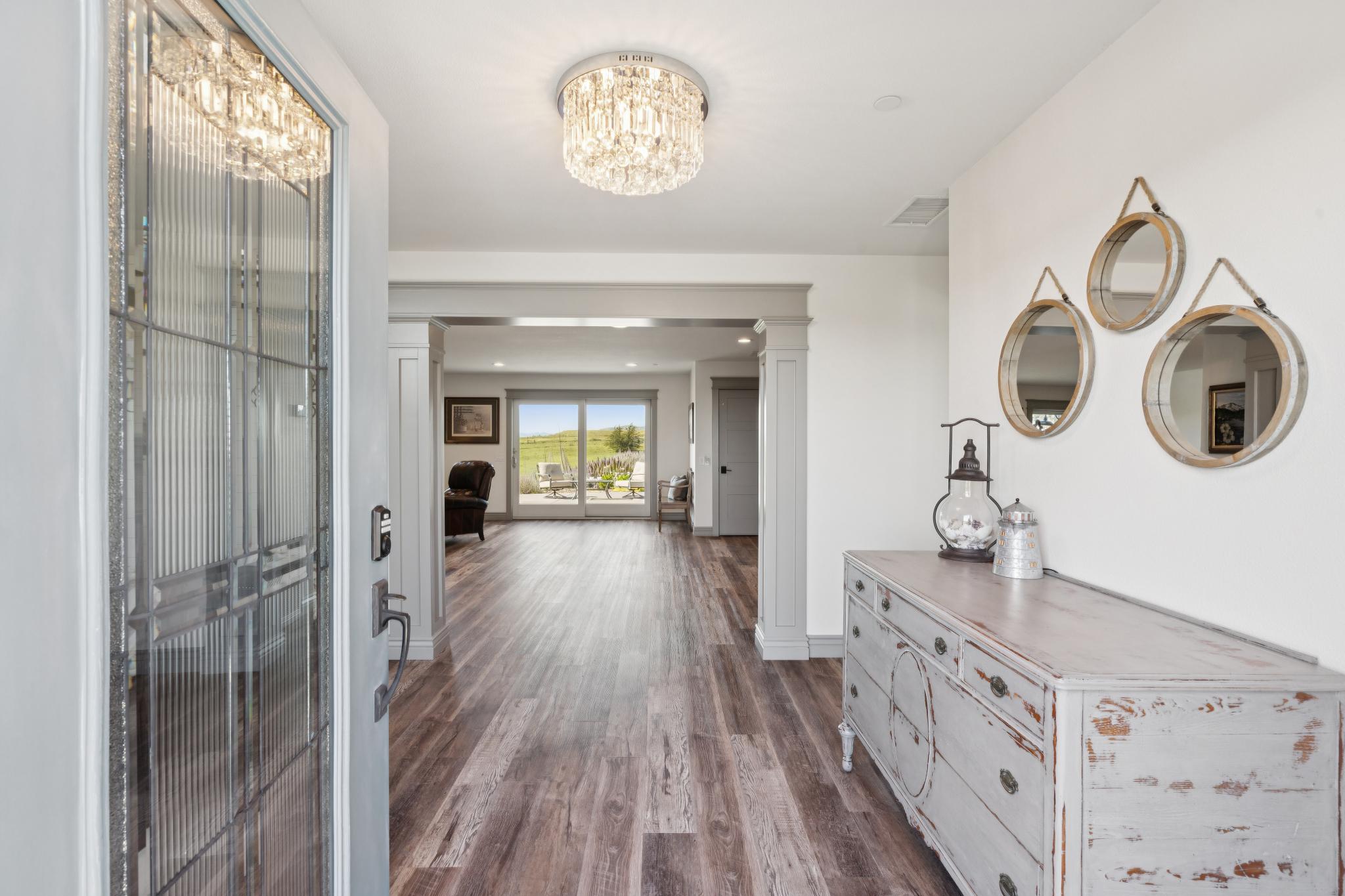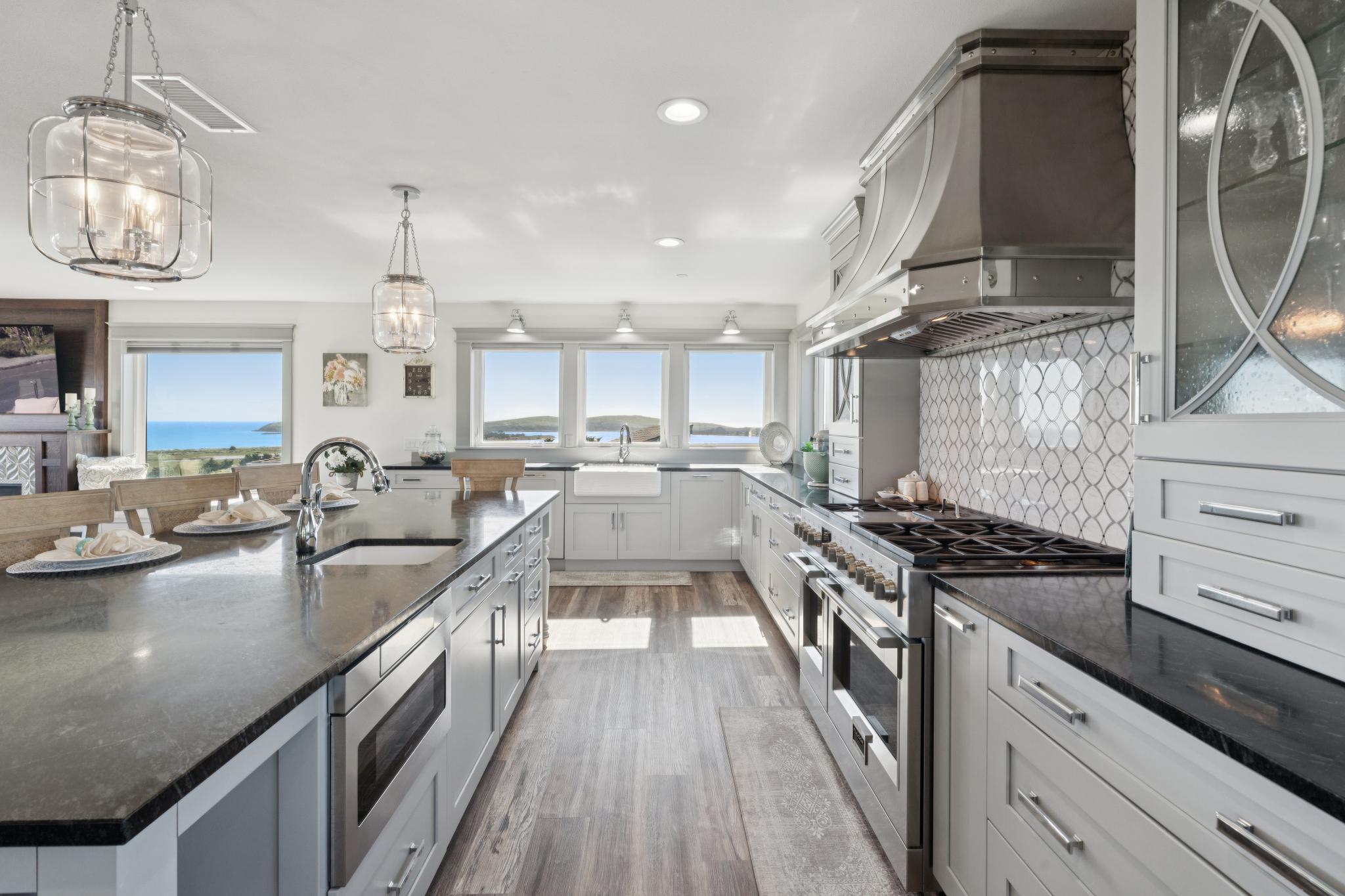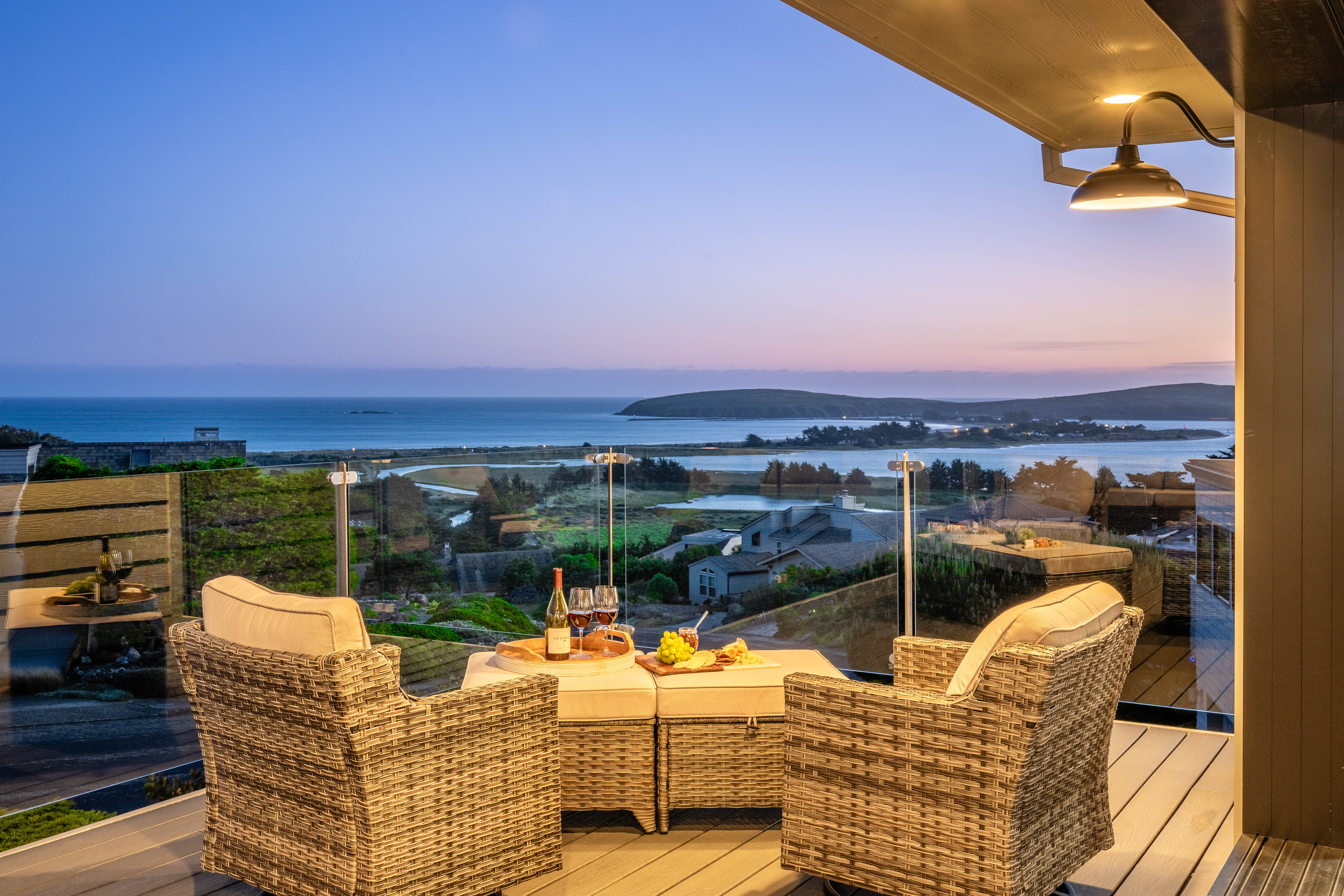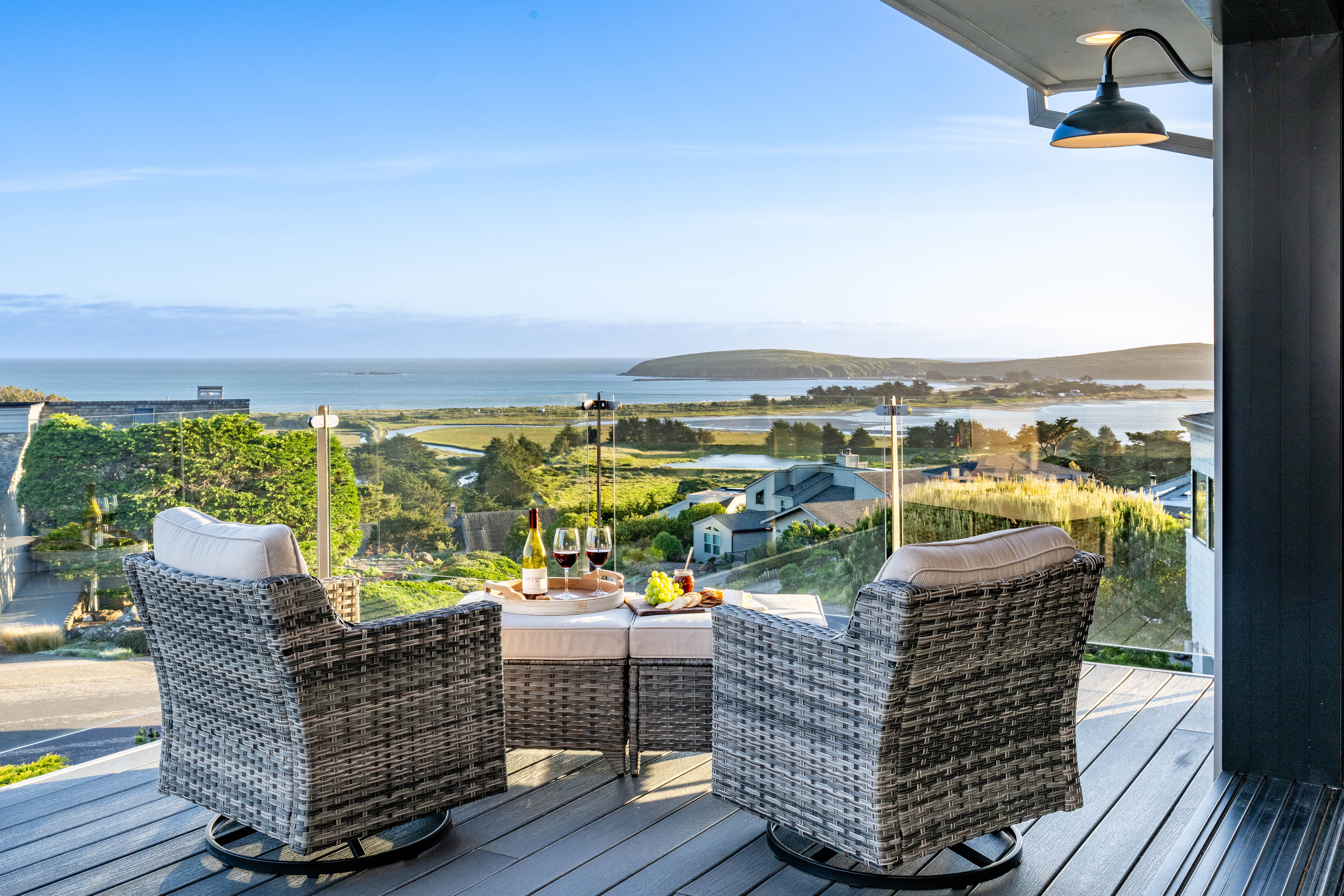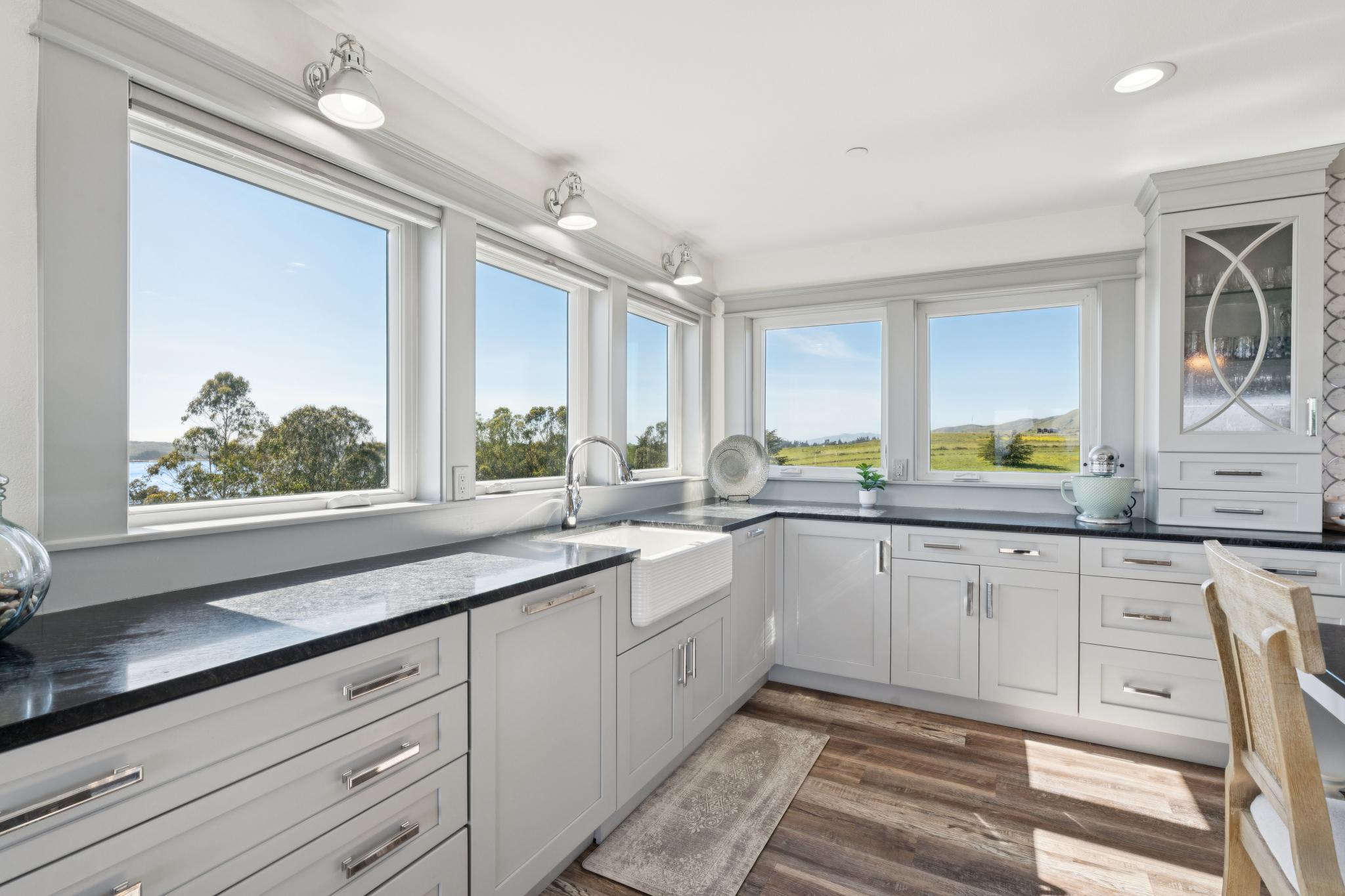 Dream coastal living awaits in this 4 bed 2.5 bath Bodega Harbour home with ±3,338 sq ft built in 2020. Take in expansive views of Doran Beach, Bodega Head, Bodega Harbor and Point Reyes from the main level, or relax with hillside privacy on the back patio. Thoughtfully designed, the spacious open floor plan invites seamless indoor outdoor living, perfect for hosting dinner parties indoors and on the low maintenance deck oriented to protect you from the ocean breeze while delighting in incredible sunset views. The large chef’s kitchen features a Fulgor 6-burner range with dual ovens, Electrolux fridge, plentiful storage space in the walk-in pantry, soapstone counters, touch-activated faucets, motored window shades and a beautiful marble backsplash. After dinner, take evening strolls along the beach or scenic coastal trails just minutes away. Main level living also includes the primary bedroom and ensuite bath, additional bedroom, half bath and laundry room. The primary suite acts as your own private coastal sanctuary, featuring a spa-inspired soaking tub set before an ocean-view window, walk-in closet with ample shelving, rotating custom shoe storage,large walk-in shower with 3 shower heads, dual sinks, and vanity nook. Accessibility considered, Wiltek Hydraulic elevator provides seamless access to both levels. The lower level includes a generous great room, 2 guest bedrooms, full bath, and large 4-car garage for all your storage needs. The home also features a 10.5kW solar system with Enphase microinverters and grandfathered NEM 2 net metering, delivering significantly higher energy savings than new solar installations. As part of the sought-after Bodega Harbour community, you’ll enjoy access to the 18-hole golf course with ocean views from every hole, pool, sauna, tennis courts, pickleball courts, clubhouse, a fitness center, basketball, two dining outlets, and onsite patrol service. Ideally located for a vacation home, just about an hour from the Golden Gate Bridge, 40 minutes from STS Airport, and a short drive to local fine dining and world renowned wineries!