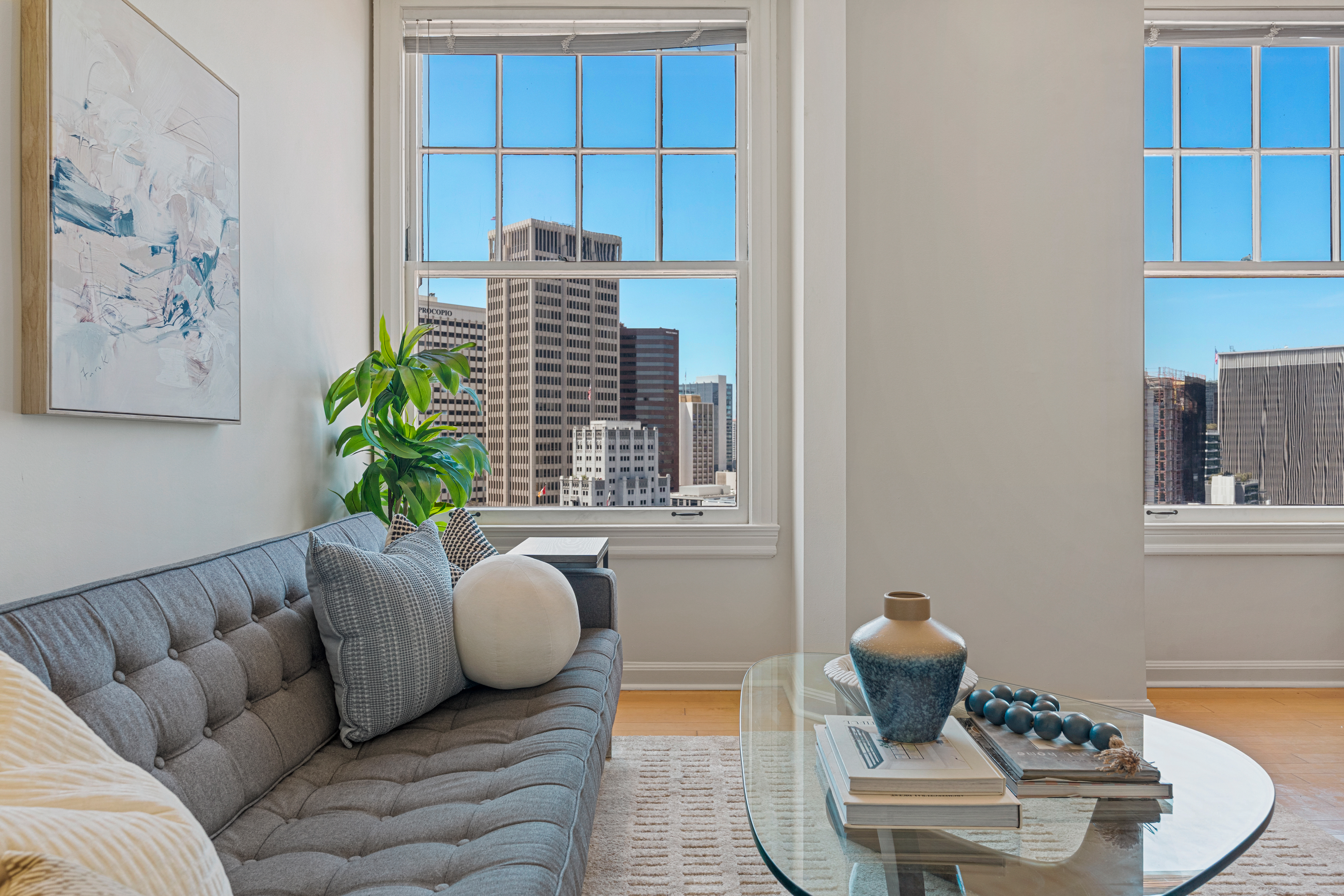 Perched within the iconic and highly sought-after El Cortez, this rare west facing one-bedroom, two-bath residence blends timeless character with modern comfort in downtown San Diego. This spacious layout is filled with natural light, soaring ceilings, and classic architectural details that honor the building’s storied heritage, all complemented by captivating views of downtown and the bay. The generously sized primary suite offers a walk in closet and additional storage, along with an en-suite full bathroom. The kitchen features updated countertops and a striking backsplash, adding a vibrant, contemporary touch. The inviting living area provides a functional and comfortable layout ideal for both everyday living and entertaining while a second full bathroom offers added convenience for guests. Custom recessed lighting throughout elevates the space. El Cortez amenities include a pool, fitness center, and the beautifully landscaped gardens that define this landmark property. Located just steps from Balboa Park, Little Italy, and Gaslamp Quarter, this home offers an exceptional blend of historic charm and urban convenience. With the Mills Act in place, this property also offers significant property tax savings. A rare opportunity to own a true piece of San Diego history!