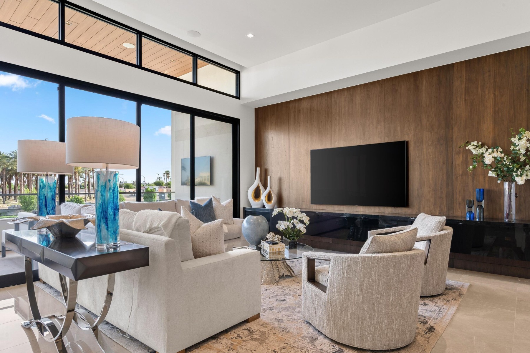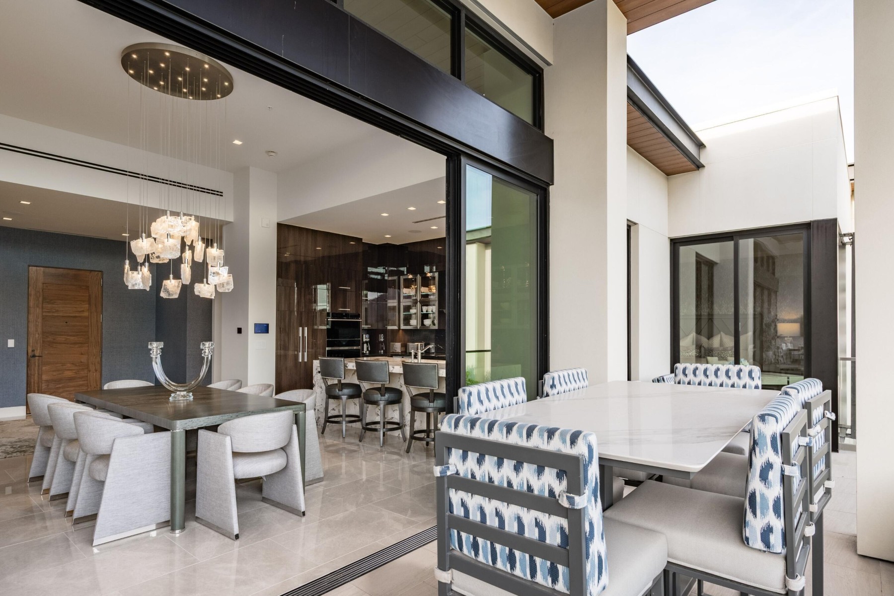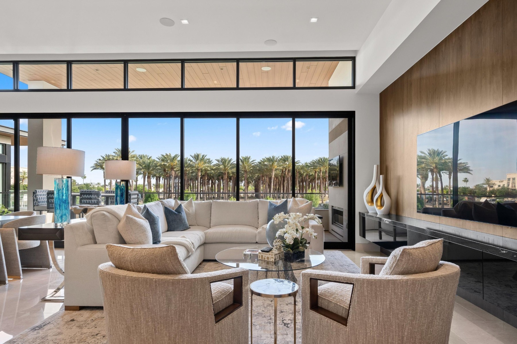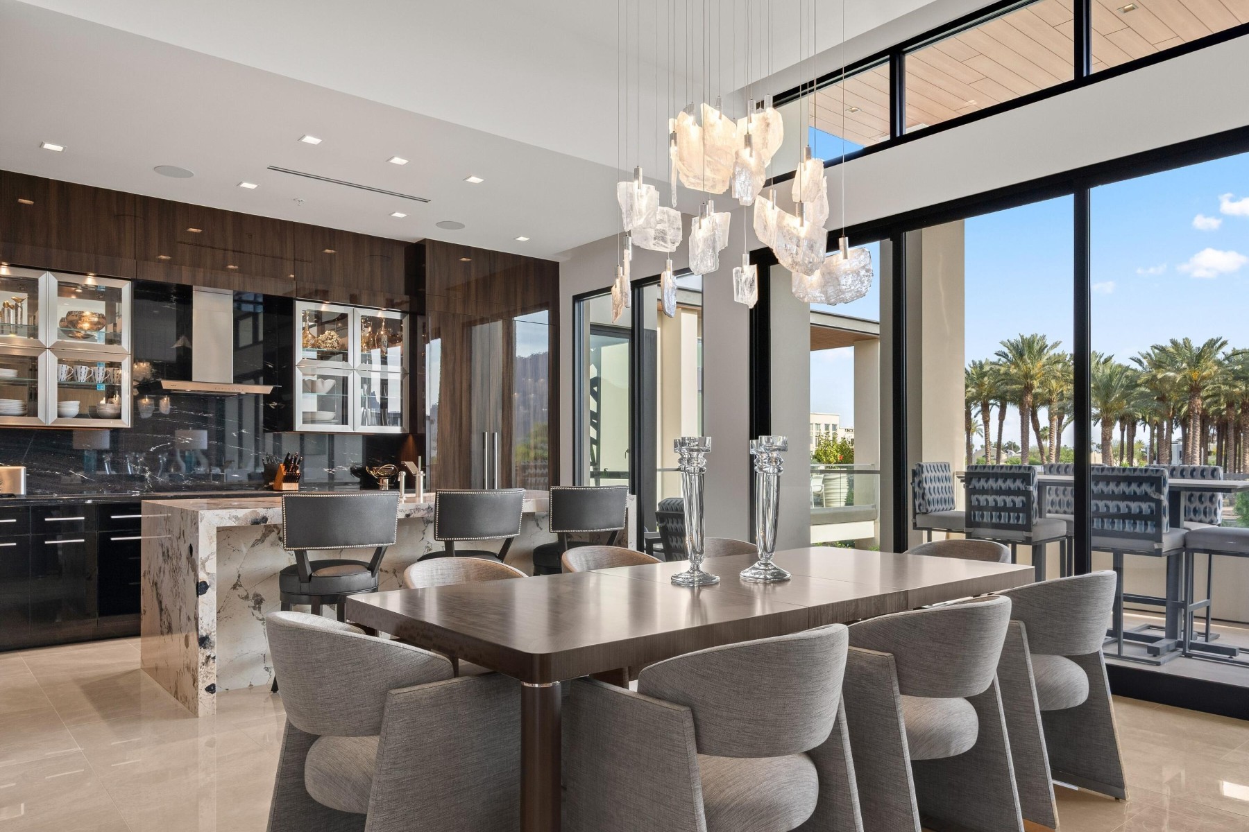 World-class luxury--synonymous with The Ritz-Carlton--is immediately evident in this top floor, 3-bedroom, 3.5-bath open-concept villa, ideally positioned within the highly coveted enclave of The Ritz-Carlton Villa Residences in Paradise Valley. Thoughtfully designed to embody sophisticated contemporary living with a refined yet relaxed elegance, the residence offers an inviting atmosphere that perfectly complements the coveted indoor-outdoor lifestyle of Scottsdale, where over 300 days of sunshine set the stage for year-round enjoyment. Equally suited as a luxurious weekend retreat or a full-time residence, this villa delivers both versatility and distinction. Striking design elements define the interiors, including dramatic stone slab feature walls, countertops, and vanities, paired with sleek solid-color and wood-lacquer cabinetry. Subtle recessed detailing, textured wall treatments, and a curated selection of high-end contemporary fixtures are complemented by both clear and opaque glass walls and sliding door systems, creating a seamless flow of light and space throughout. A linear patio spans the full length of the residence, offering direct access from multiple rooms through expansive sliding glass doors. Here, breathtaking views unfold--endless skies, Camelback views with ever-changing mountain hues, vibrant sunsets, and shimmering starlit evenings provide a captivating daily backdrop. The intelligently designed split floor plan ensures privacy and comfort, with the primary suite thoughtfully positioned on one wing. At the heart of the home, an expansive open living area features a central gathering space, a dining space framed by scenic vistas, and an adjacent lounge with a wet bar--ideal for both intimate gatherings and larger-scale entertaining. The chef's kitchen is a true showpiece, highlighted by a grand island with bar seating and complemented by two generously sized guest ensuites on the opposite side of the residence. Beyond the villa, the grounds present a serene, resort-inspired setting with lush landscaping and tranquil water features. A geometric pool with integrated walkways and soothing bubblers is framed by stately palms, manicured lawns, and vibrant flowering gardens, evoking a private spa-like retreat. Residents enjoy access to premium amenities, including a state-of-the-art fitness center, exercise studio, elegant entertainment spaces, pet park, and dedicated concierge service. The nearby The Ritz-Carlton Paradise Valley will offer additional convenience for guest accommodations. Perfectly situated amid premier shopping, acclaimed dining, and a vibrant cultural scene, with convenient proximity to the airport, this exceptional residence delivers an unparalleled lifestyle defined by luxury, comfort, and effortless sophistication.