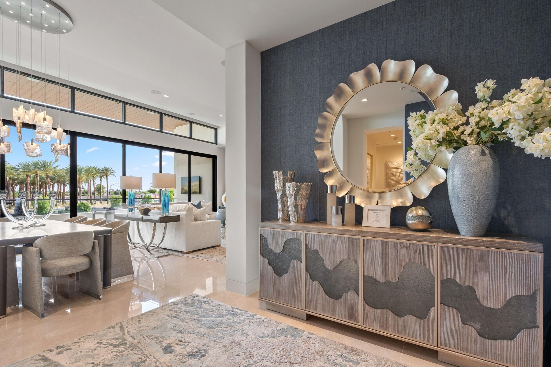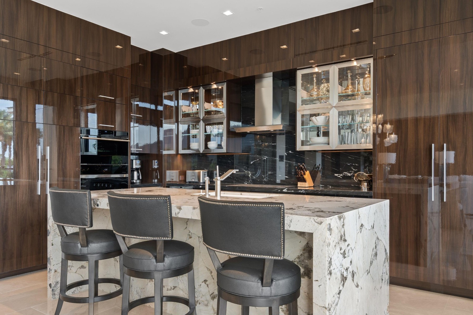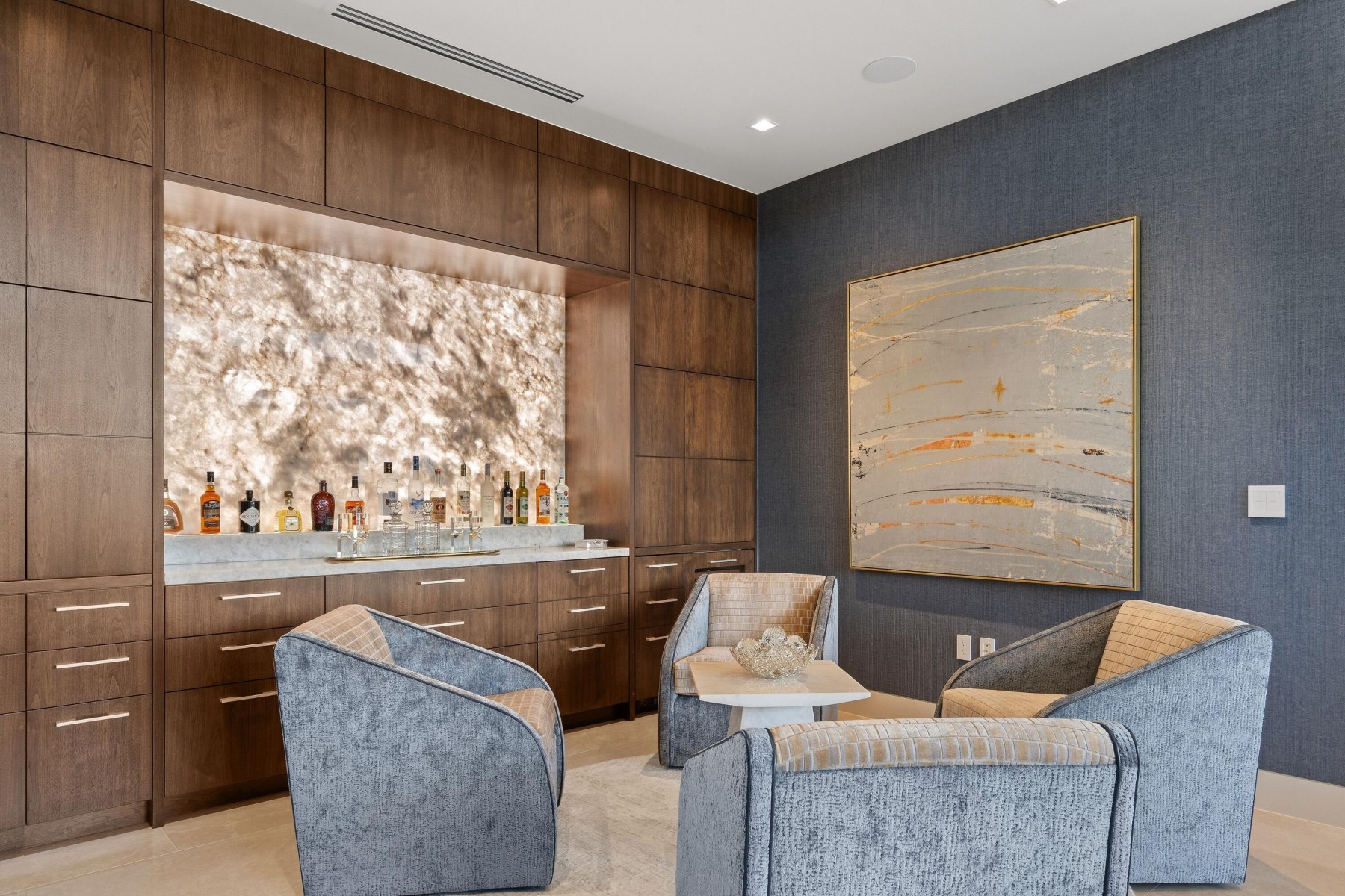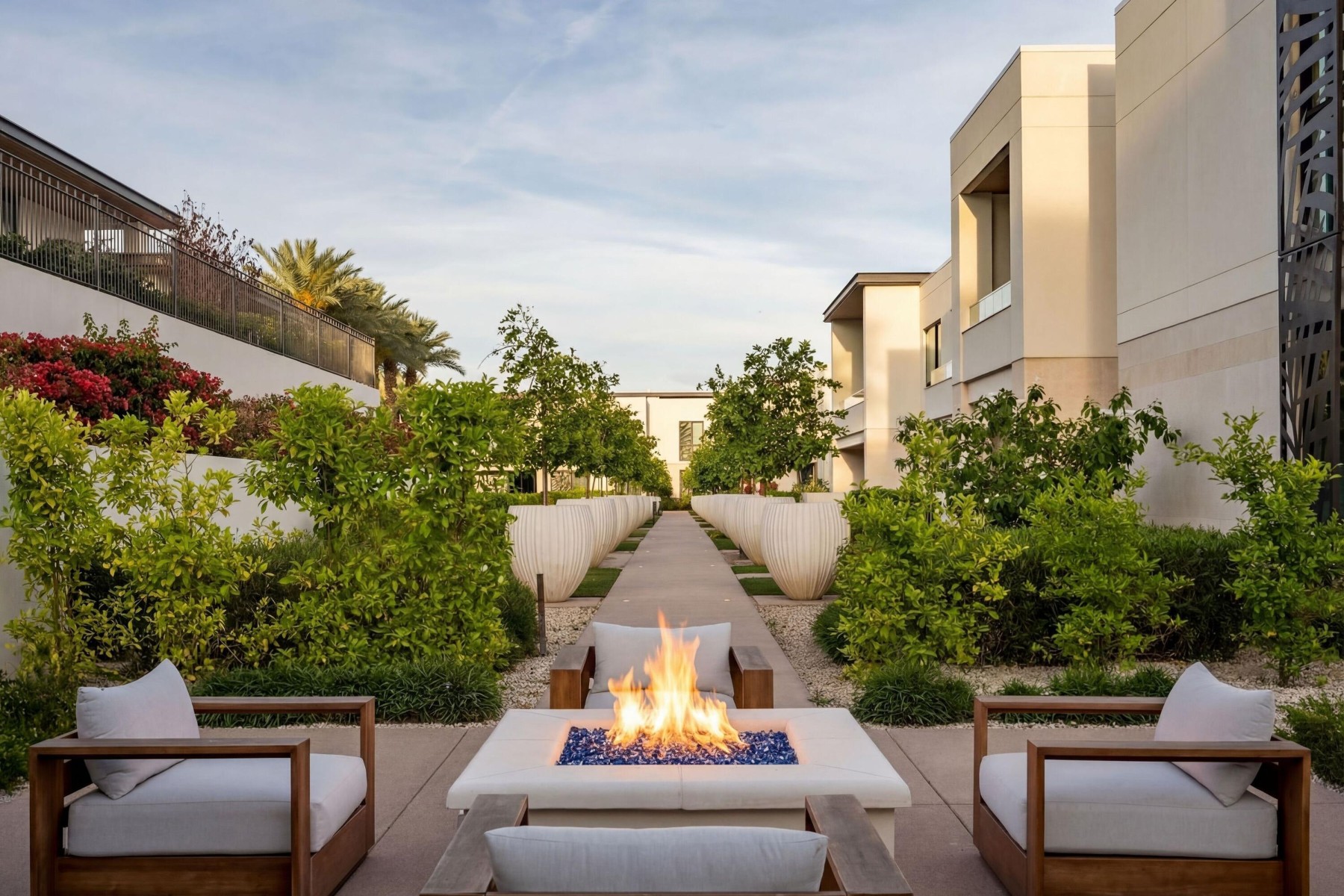 World-class luxury--synonymous with The Ritz-Carlton--is immediately evident in this top floor, 3-bedroom, 3.5-bath open-concept villa, ideally positioned within the highly coveted enclave of The Ritz-Carlton Villa Residences in Paradise Valley. Thoughtfully designed to embody sophisticated contemporary living with a refined yet relaxed elegance, the residence offers an inviting atmosphere that perfectly complements the coveted indoor-outdoor lifestyle of Scottsdale, where over 300 days of sunshine set the stage for year-round enjoyment. Equally suited as a luxurious weekend retreat or a full-time residence, this villa delivers both versatility and distinction. Striking design elements define the interiors, including dramatic stone slab feature walls, countertops, and vanities, paired with sleek solid-color and wood-lacquer cabinetry. Subtle recessed detailing, textured wall treatments, and a curated selection of high-end contemporary fixtures are complemented by both clear and opaque glass walls and sliding door systems, creating a seamless flow of light and space throughout. A linear patio spans the full length of the residence, offering direct access from multiple rooms through expansive sliding glass doors. Here, breathtaking views unfold--endless skies, Camelback views with ever-changing mountain hues, vibrant sunsets, and shimmering starlit evenings provide a captivating daily backdrop. The intelligently designed split floor plan ensures privacy and comfort, with the primary suite thoughtfully positioned on one wing. At the heart of the home, an expansive open living area features a central gathering space, a dining space framed by scenic vistas, and an adjacent lounge with a wet bar--ideal for both intimate gatherings and larger-scale entertaining. The chef's kitchen is a true showpiece, highlighted by a grand island with bar seating and complemented by two generously sized guest ensuites on the opposite side of the residence. Beyond the villa, the grounds present a serene, resort-inspired setting with lush landscaping and tranquil water features. A geometric pool with integrated walkways and soothing bubblers is framed by stately palms, manicured lawns, and vibrant flowering gardens, evoking a private spa-like retreat. Residents enjoy access to premium amenities, including a state-of-the-art fitness center, exercise studio, elegant entertainment spaces, pet park, and dedicated concierge service. The nearby The Ritz-Carlton Paradise Valley will offer additional convenience for guest accommodations. Perfectly situated amid premier shopping, acclaimed dining, and a vibrant cultural scene, with convenient proximity to the airport, this exceptional residence delivers an unparalleled lifestyle defined by luxury, comfort, and effortless sophistication.