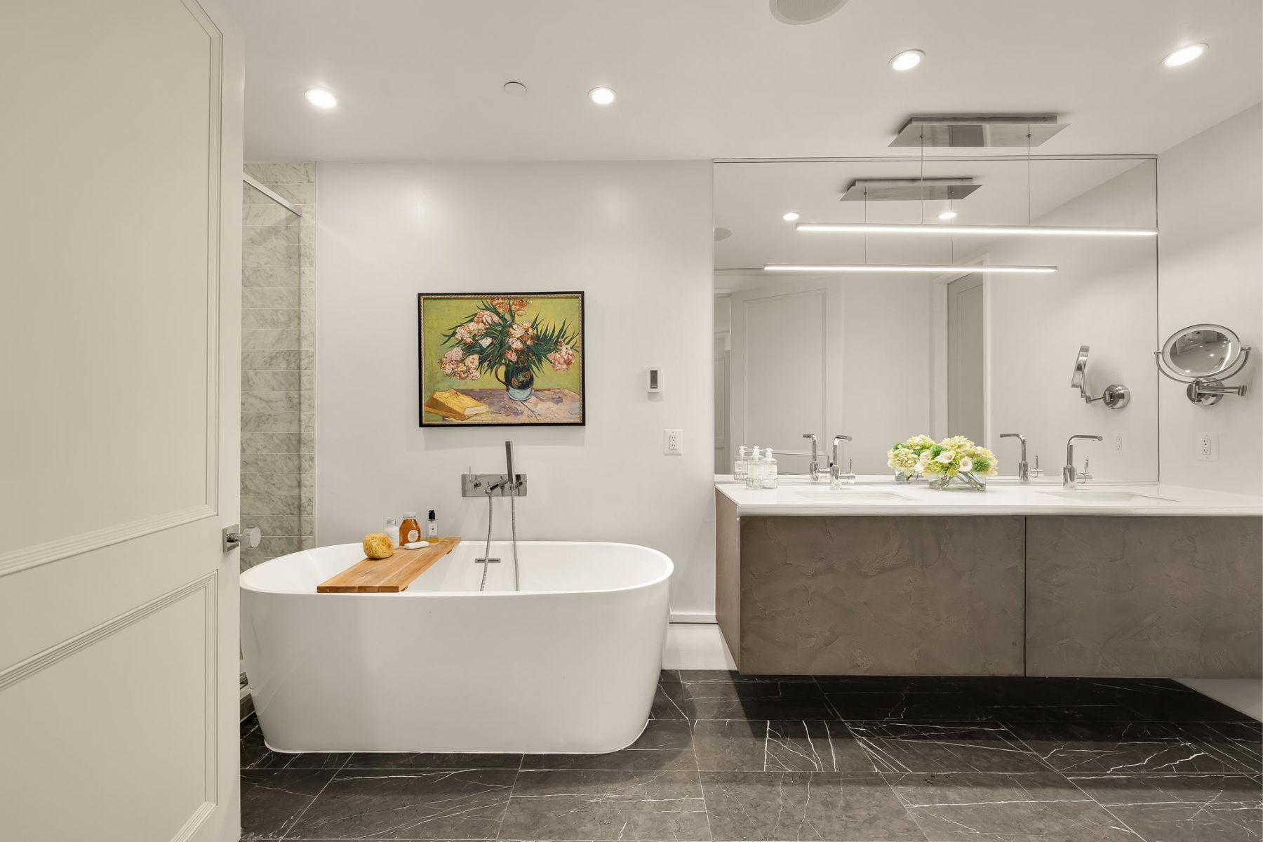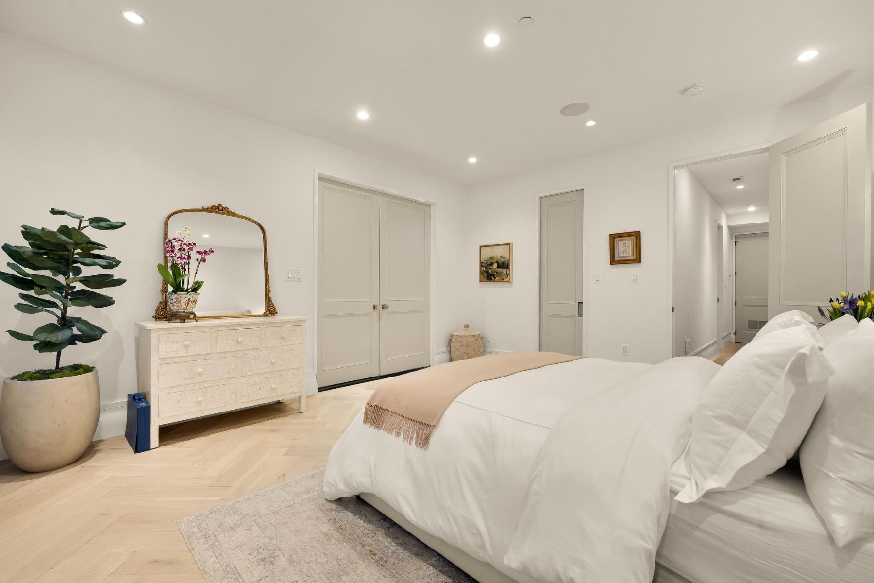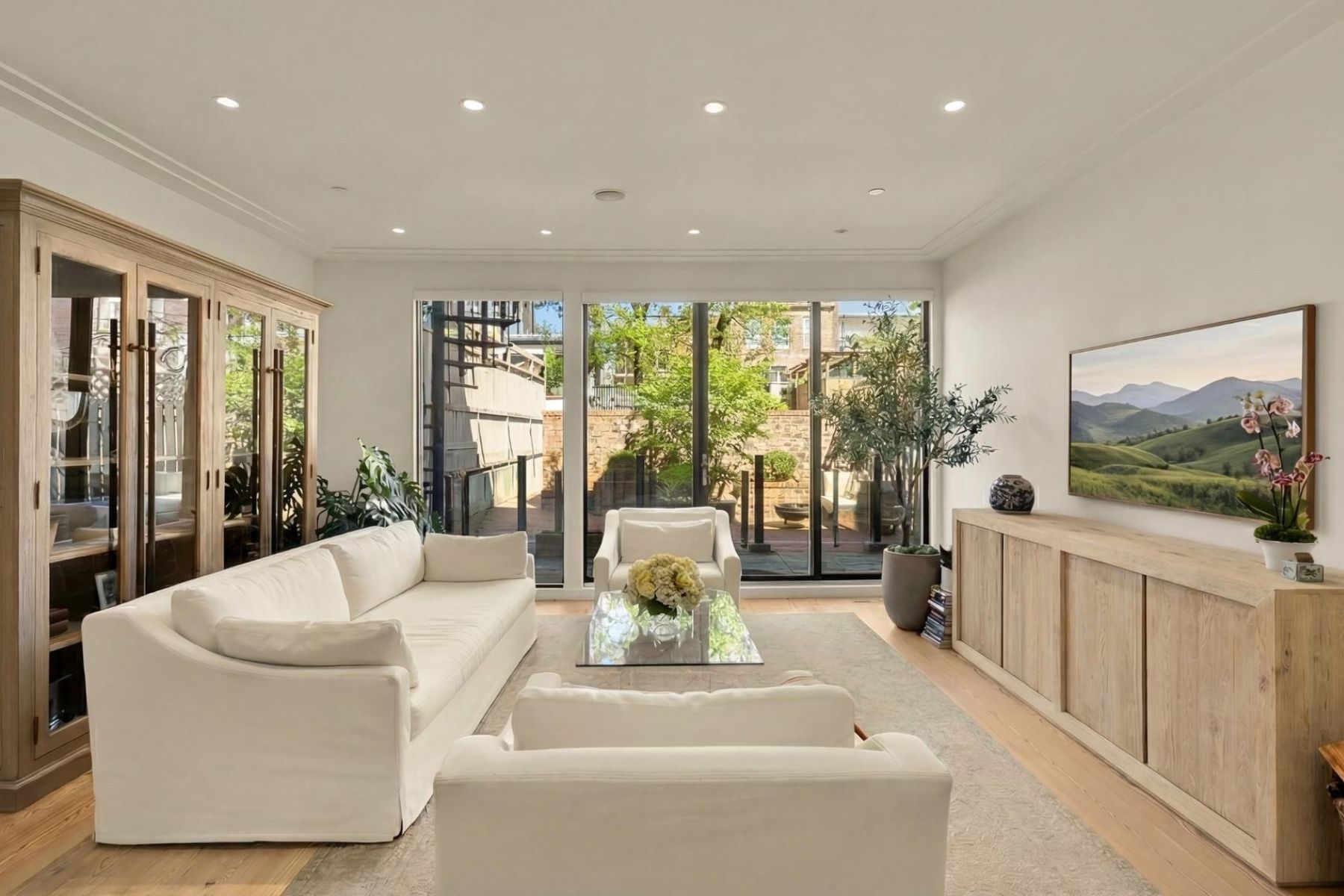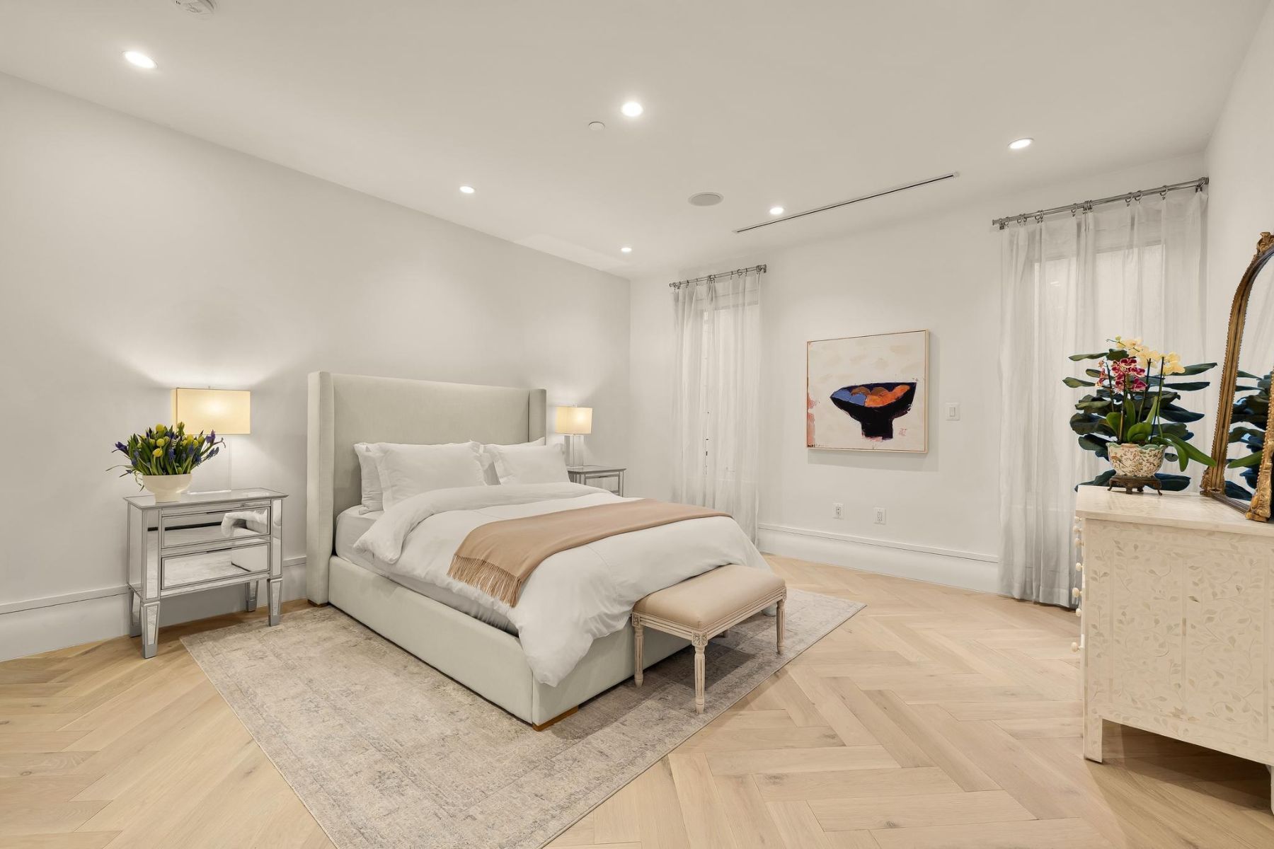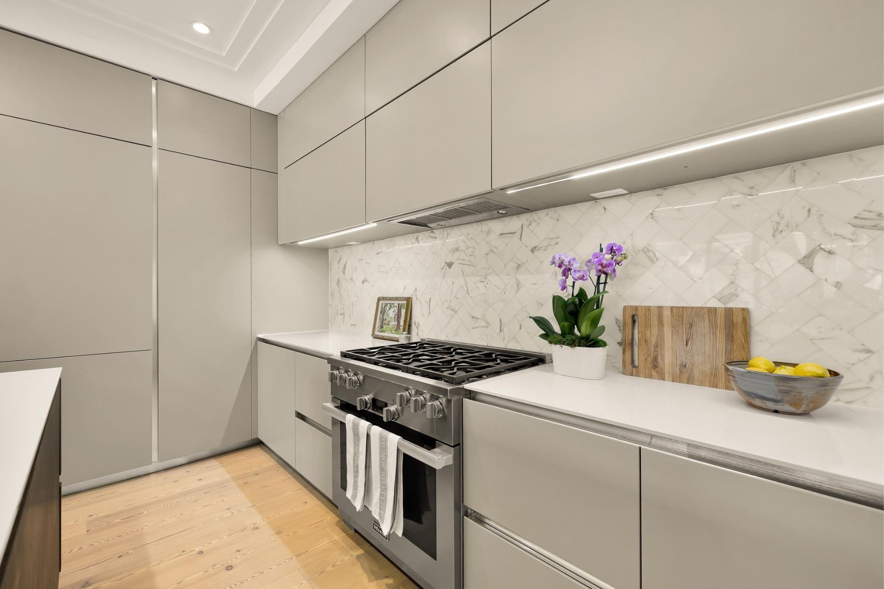 1837 Wyoming Avenue is located on a tranquil block, straddling the boundary between the prestige of Kalorama and the energy of Adams Morgan, a boutique building comprising of luxury condominiums finished to the highest degree. The façade of the building evokes reserved elegance with its inlaid red brick and classic dormers. Amongst this distinguished company is Unit B, a private rear duplex spanning a generous 1,633 square feet of elegant living space. The main level is a fully open concept space encompassing living, dining, and kitchen areas. High ceilings, wide-plank white oak floors, recessed lighting, and a floor-to-ceiling glass wall opening onto the rear patio. The chef’s kitchen combines form and function, with Italian cabinetry complementing a herringbone marble backsplash and contrasting Dekton center island and suite of Miele appliances, including a commercial-grade gas range and built in espresso machine. The outdoor space, with its brick paver patio, and uplit landscaping, is a coveted amenity in such a central location. A glass-railed staircase leads down to the bedroom level, where the primary bedroom showcases herringbone white oak floors. Double doors open into the ensuite bath with contrasting dark and light marble, featuring heated floors, a double floating vanity, freestanding soaking tub, and oversized walk-in glass shower. A walk-in custom California Closet completes the suite. The second bedroom also features ample storage and a marble ensuite bath with radiant floor heating. Glistening Emtek hardware and a surround sound system are found throughout. Convenient in-unit laundry, a separate powder room, and available RENTAL PARKING are additional desirable features. A second rental space is also available. The location is truly incomparable, being steps from the natural retreat of Kalorama Park, and vibrant dining scene including Lapis, Maison Bar a Vin, Cana, and Tatte.