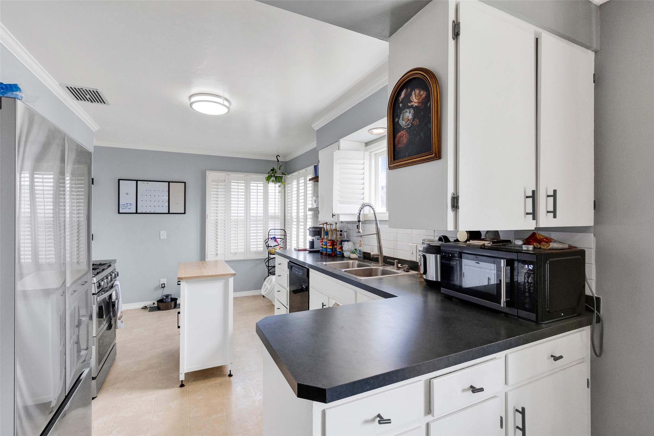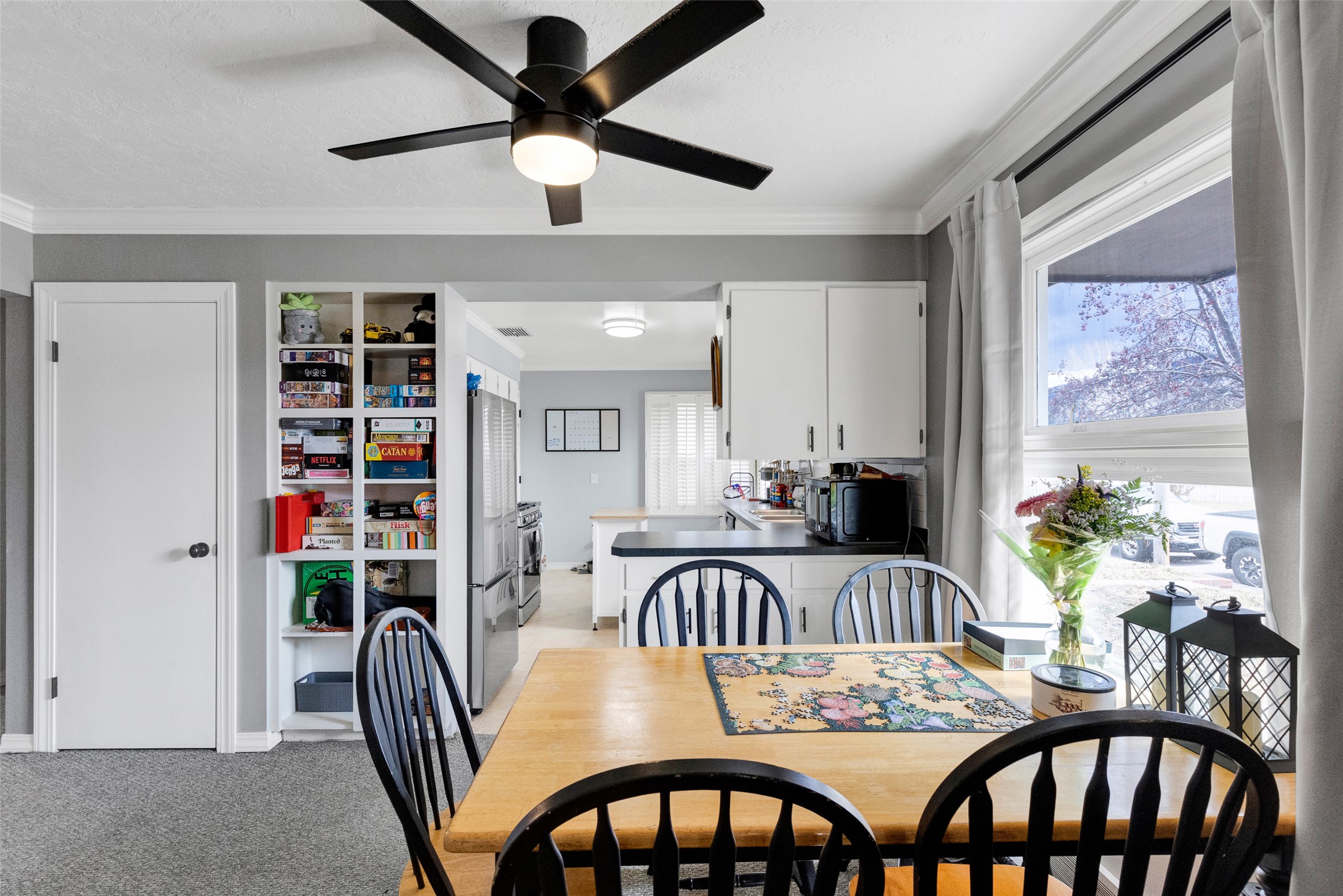 A shared laundry and storage area provides convenience for both levels, while an additional bonus room offers flexibility for a home office, hobby space, or extra storage. The 2-car detached garage with extra storage space, combined with additional parking, add to the functionality of this adorable property.