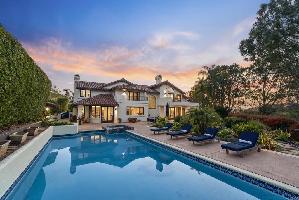 Tucked within a gated, exclusive enclave of just 26 homes, this exceptional residence is ideally positioned on a quiet cul-de-sac and set on a rare, expansive half-acre lot, offering an elevated blend of comfort, privacy, and refined living. This bright and airy home features 4 bedrooms plus an office (or optional flex space/additional bedroom), thoughtfully designed for both everyday living and sophisticated entertaining. Expansive windows showcase tranquil views and invite abundant natural sunlight throughout. Enveloped by lush, mature landscaping, the property lives like a private estate, with the generous grounds creating a true sense of space, seclusion, and usable outdoor living. The resort-style backyard is designed for effortless Southern California living, complete with a sparkling pool and spa, multiple seating and dining areas, and verdant greenery. Additional highlights include a solar system, nearly new roof, and a 3-car garage with extensive storage, including an approximately 10' x 10' stand-up storage area (pull-down ladder access). Located within the highly sought-after Solana Beach School District and just minutes from the beach, shopping, dining, and freeway access, this home offers a coveted balance of convenience and a serene, tucked-away setting. A rare opportunity to own a half-acre property in one of the area's most desirable coastal communities.