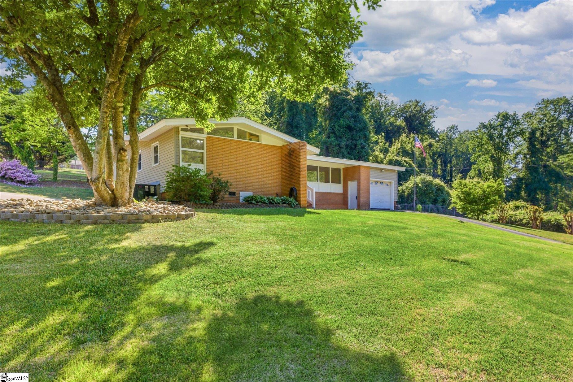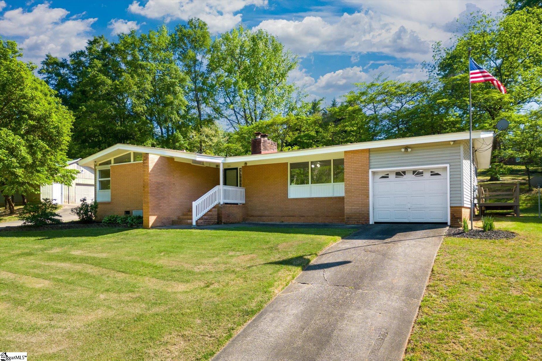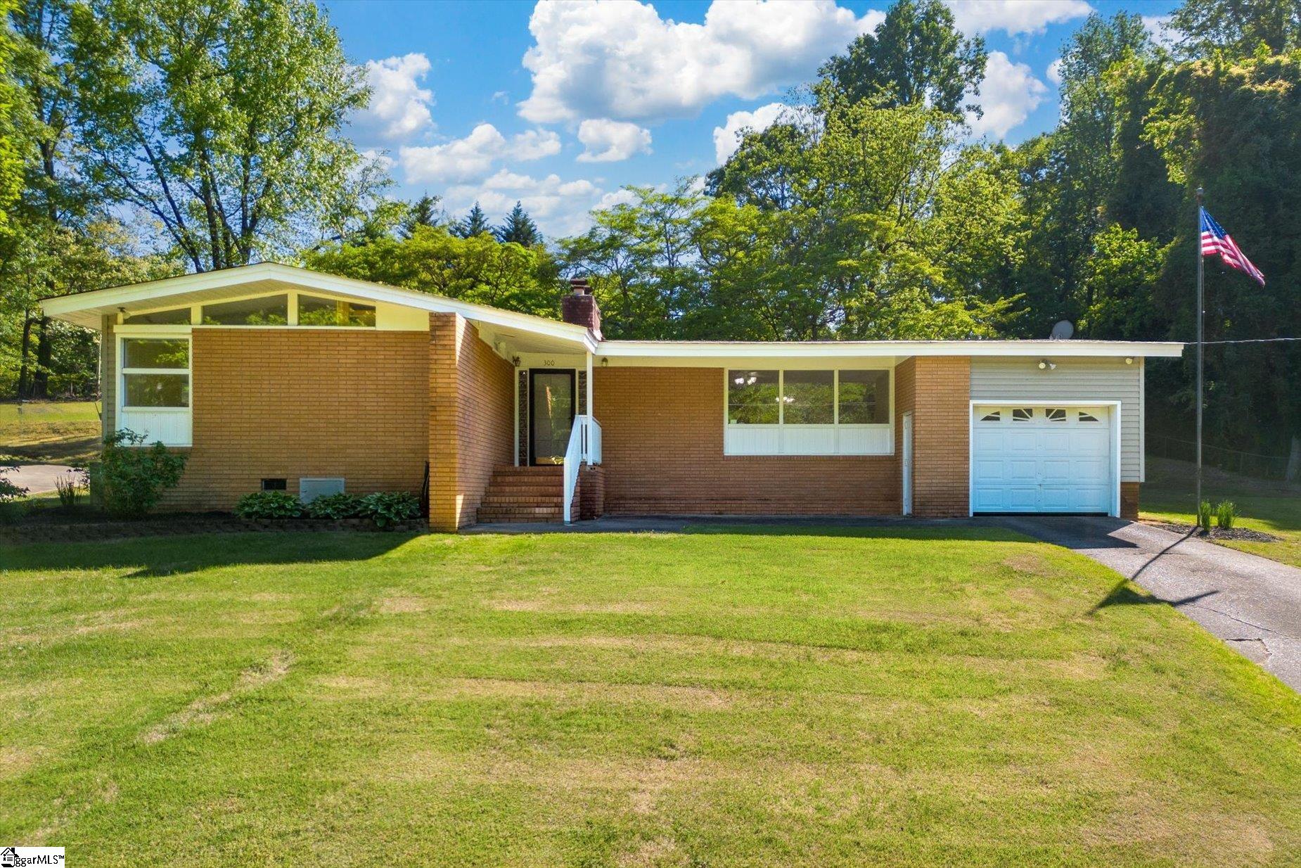Custom-built Mid-Century Modern. Love the retro vibe. You are going to appreciate and fall in love with this beautiful home. Nestled in the heart of Easley. This home features 3 bedrooms and 2 baths and sits on almost 1 acre in a non-HOA neighborhood. Back in the 1960s the lot was meticulously graded to ensure no water or drainage problems, and to date this still holds true. When you arrive, there are two drives, one that goes to a 1-car garage and the other to the side of the house, which is the one used the most. The house is all brick with vinyl siding (there are cedar planks under all the vinyl if you wanted to revert back; owners were looking for less maintenance). The home is super well built with tongue-and-groove roof boards and the same with the floors. The wood is from the property. which is amazing in itself. This one-owner house has been loved so much that you feel a big hug when you walk in the door. You are greeted with a foyer area that leads to the living room with a beautiful brick gas log fireplace and a hand-carved wooden mantel - really stunning. The floors are a gorgeous hardwood. All the windows in the home have been replaced and are high-quality and energy-efficient. The dining area is just off the living room, which leads to the 1-car garage, perfect to store and work on your favorite car or bike. There is also an awesome screened porch, great for chilling on a hot summer day. The owners left the ramp as is; it is in good shape and may come in handy for the next owner. The kitchen is HUGE, big enough for a table and chairs. Features a gas cooktop, gas oven and broiler, dishwasher, disposal, and fridge, all of which remain with the home. There is also a huge laundry room. There is a gas hookup if you desire it; it is currently electric. There is room to expand if you wanted to add a wash tub or even make it a mudroom. The other side of the home is where you will find two more bedrooms; one was used as an office. There is a hall bath that has the retro tile, which is coming back in style. "Green and White" vanity and shower-tub combo. The primary bedroom is a nice size; it has a full bathroom with a tiled shower and was recently renovated. The backyard is beautiful and has a nice deck. The back tiers of the yard were for crops: corn, beans, tomatoes - you name it. Later, due to needing less maintenance, the garden was then just mowed, but if you are into gardens, then you have a great setup. There is a chain-link fence around most of the property, and one section was removed but could be added back if you have fur babies. You will love the GIANT two-car shop with power. This will be an awesome MAN CAVE for sure. This is really an outstanding opportunity. New roof, newer water heater, HVAC in great shape and just serviced, excellent location just a block from HWY 123, and 12 miles to the center of Downtown Greenville. This place has your name all over it! Give me a call; let's go take a look. I am available for a private showing. Let's write up an offer before someone else beats you to it.
