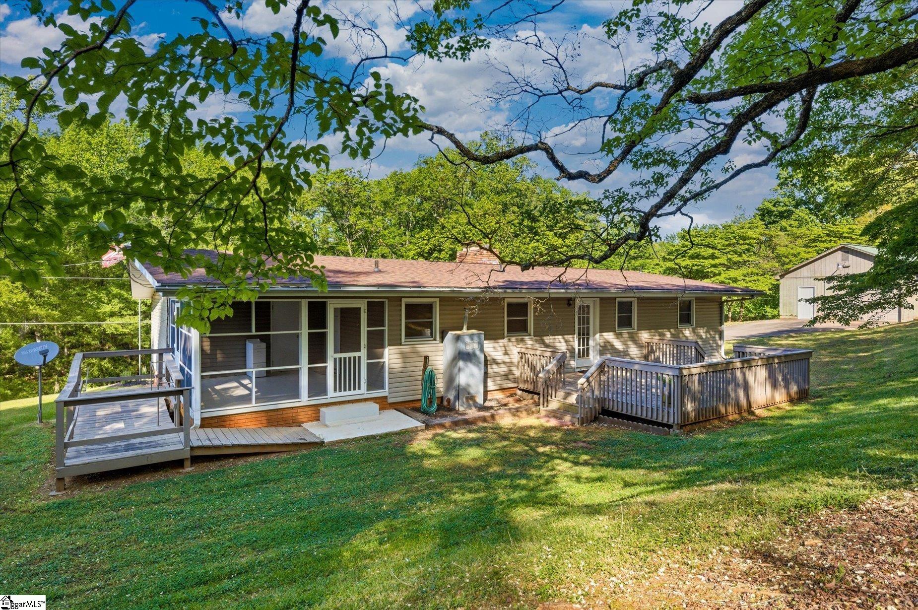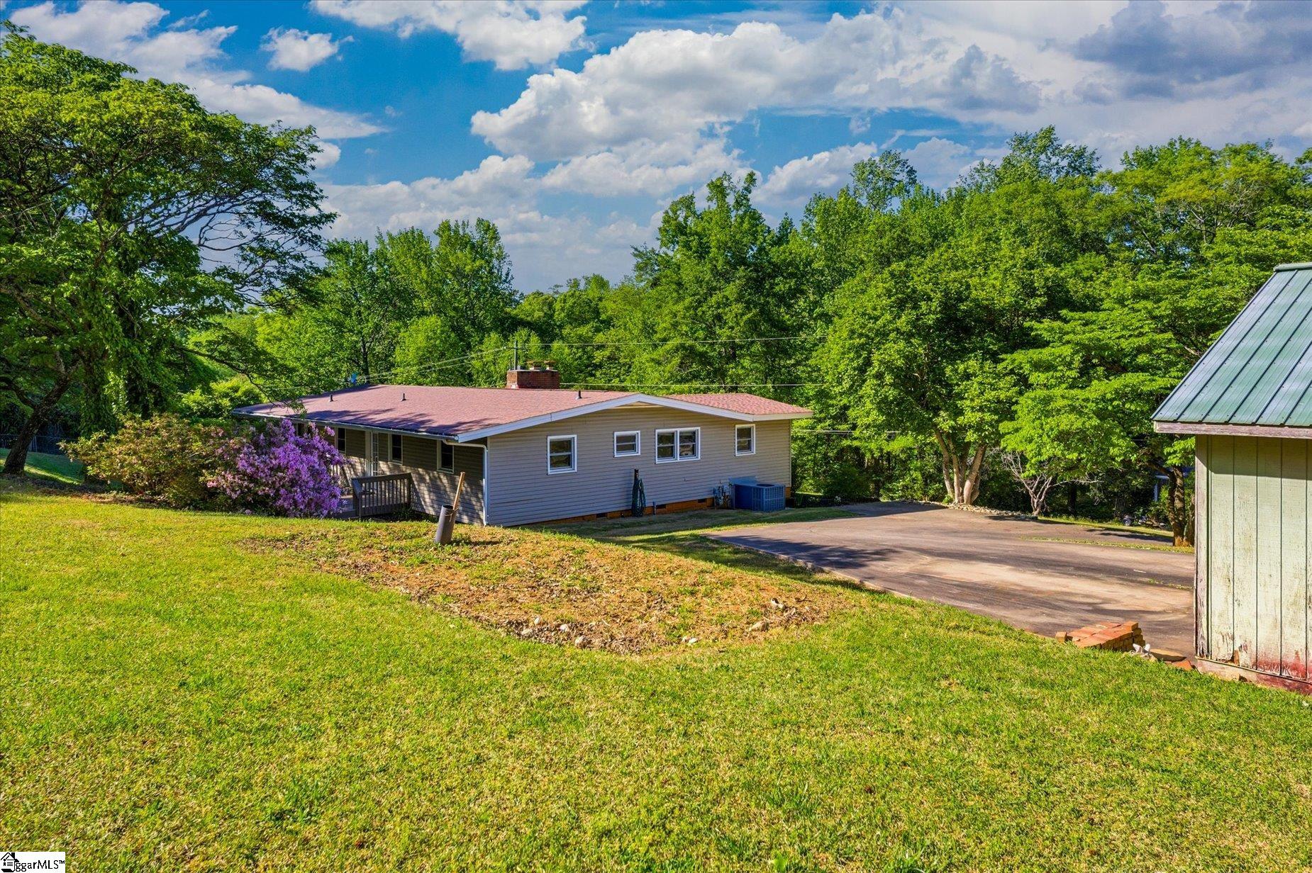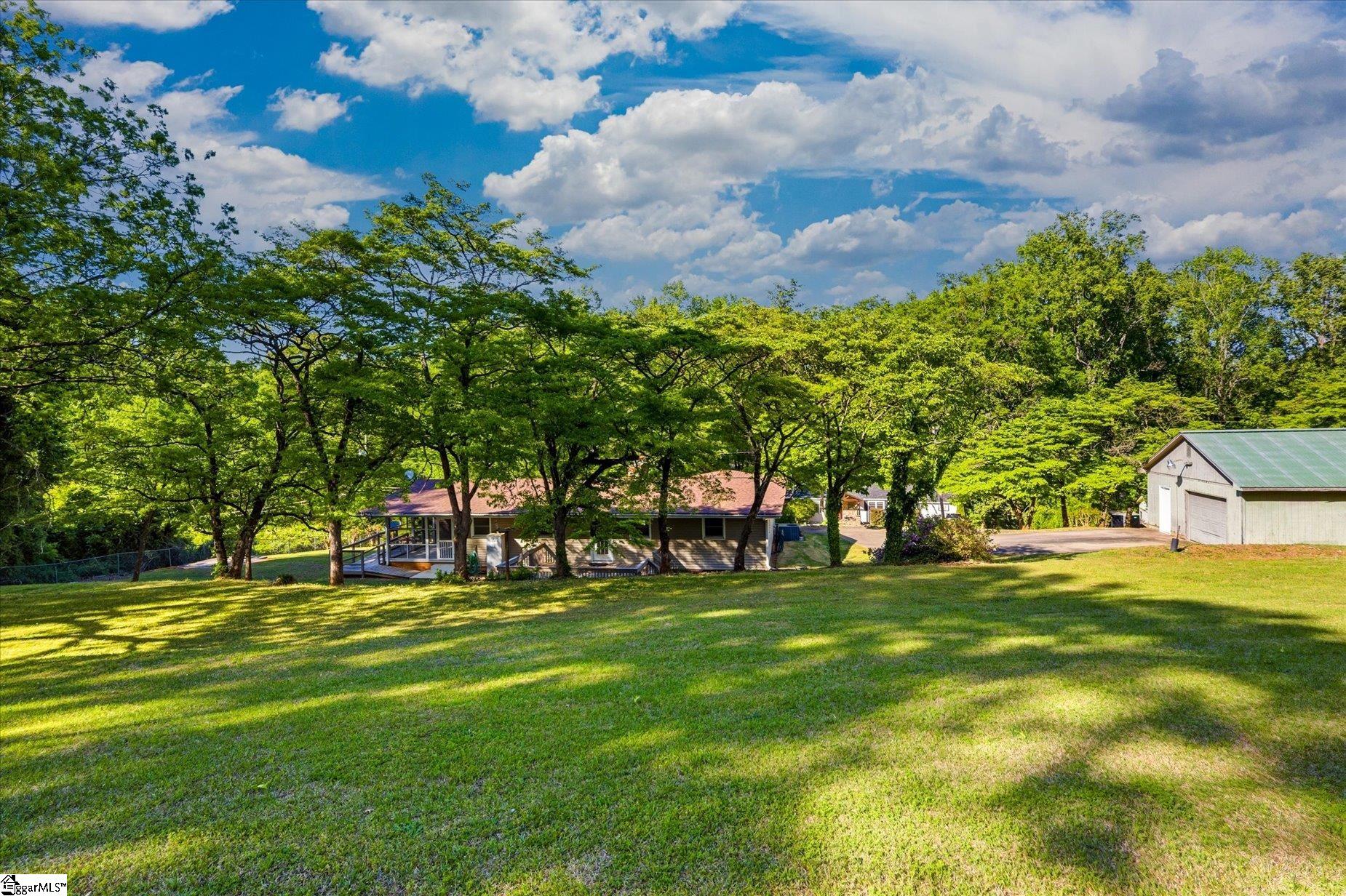 Custom-built Mid-Century Modern. Love the retro vibe. You are going to appreciate and fall in love with this beautiful home. Nestled in the heart of Easley. This home features 3 bedrooms and 2 baths and sits on almost 1 acre in a non-HOA neighborhood. Back in the 1960s the lot was meticulously graded to ensure no water or drainage problems, and to date this still holds true. When you arrive, there are two drives, one that goes to a 1-car garage and the other to the side of the house, which is the one used the most. The house is all brick with vinyl siding (there are cedar planks under all the vinyl if you wanted to revert back; owners were looking for less maintenance). The home is super well built with tongue-and-groove roof boards and the same with the floors. The wood is from the property. which is amazing in itself. This one-owner house has been loved so much that you feel a big hug when you walk in the door. You are greeted with a foyer area that leads to the living room with a beautiful brick gas log fireplace and a hand-carved wooden mantel - really stunning. The floors are a gorgeous hardwood. All the windows in the home have been replaced and are high-quality and energy-efficient. The dining area is just off the living room, which leads to the 1-car garage, perfect to store and work on your favorite car or bike. There is also an awesome screened porch, great for chilling on a hot summer day. The owners left the ramp as is; it is in good shape and may come in handy for the next owner. The kitchen is HUGE, big enough for a table and chairs. Features a gas cooktop, gas oven and broiler, dishwasher, disposal, and fridge, all of which remain with the home. There is also a huge laundry room. There is a gas hookup if you desire it; it is currently electric. There is room to expand if you wanted to add a wash tub or even make it a mudroom. The other side of the home is where you will find two more bedrooms; one was used as an office. There is a hall bath that has the retro tile, which is coming back in style. "Green and White" vanity and shower-tub combo. The primary bedroom is a nice size; it has a full bathroom with a tiled shower and was recently renovated. The backyard is beautiful and has a nice deck. The back tiers of the yard were for crops: corn, beans, tomatoes - you name it. Later, due to needing less maintenance, the garden was then just mowed, but if you are into gardens, then you have a great setup. There is a chain-link fence around most of the property, and one section was removed but could be added back if you have fur babies. You will love the GIANT two-car shop with power. This will be an awesome MAN CAVE for sure. This is really an outstanding opportunity. New roof, newer water heater, HVAC in great shape and just serviced, excellent location just a block from HWY 123, and 12 miles to the center of Downtown Greenville. This place has your name all over it! Give me a call; let's go take a look. I am available for a private showing. Let's write up an offer before someone else beats you to it.