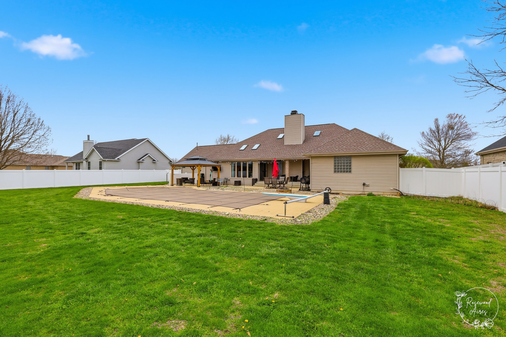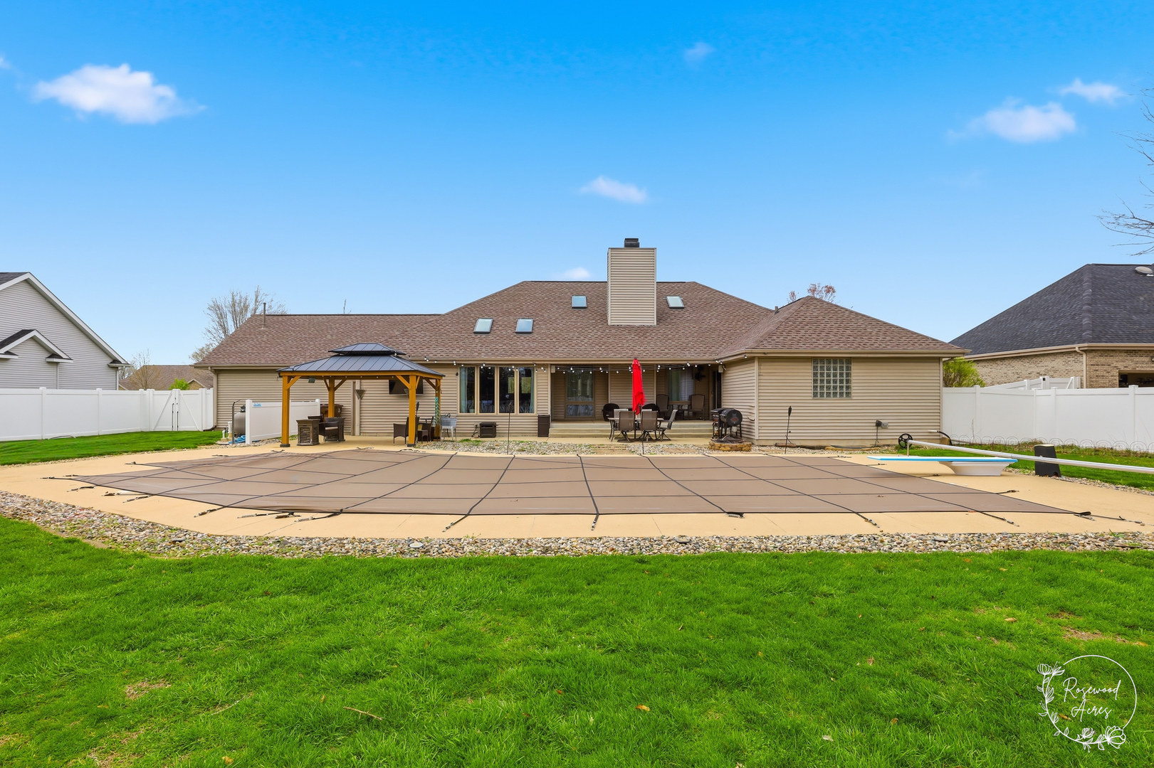 Exceptional 3BR, 3.5BA home in highly sought-after River Bend Subdivision within Herscher School District! Built in 1998 by Designs Unlimited, this well-maintained home offers 2,100 sq ft on the main level plus a full basement with approx. 1,400 sq ft of beautifully finished space. The main level features spacious, light-filled living areas with a cozy gas fireplace, vaulted and trayed ceilings, and stunning new solar-shaded skylights (2025). The main level of the home features a 5-room sound system. The updated kitchen boasts a new breakfast bar, 5-stage reverse osmosis system, and newer, stainless steel appliances-all included-along with convenient main-level laundry (washer/dryer stay). The home offers ample closet space throughout. The finished basement is built for entertaining and everyday living, offering a large game room, additional family room, private study, full bath, and extensive storage areas. The basement also features Bose surround sound system. Enjoy in-floor radiant heat powered by a newer on-demand boiler (2023), with additional radiant heat in upstairs tile areas. Battery backup sump pump adds extra peace of mind. Step outside to your private backyard oasis! Fully enclosed with a white PVC fence, this incredible space features an 8' deep in-ground pool with diving board, gazebo, firepit area, and a 12x16 storage shed-perfect for summer entertaining and relaxing evenings. Major updates provide peace of mind, including new roof (2025), new skylights (2025), on-demand water heater (2024), on-demand boiler system (2023), high-efficiency furnace, and more. Additional highlights include heated 3.5-car garage, with a new heater, and Brinks security system. A rare find offering space, upgrades, and resort-style outdoor living-this one truly has it all!