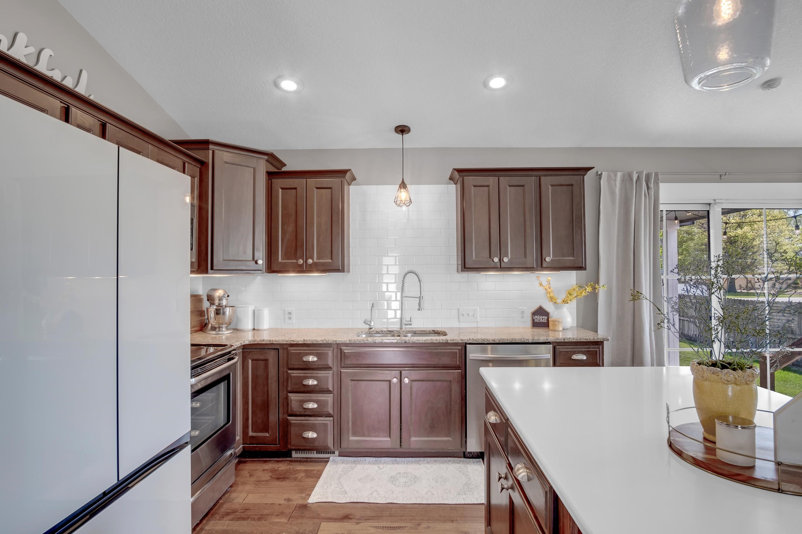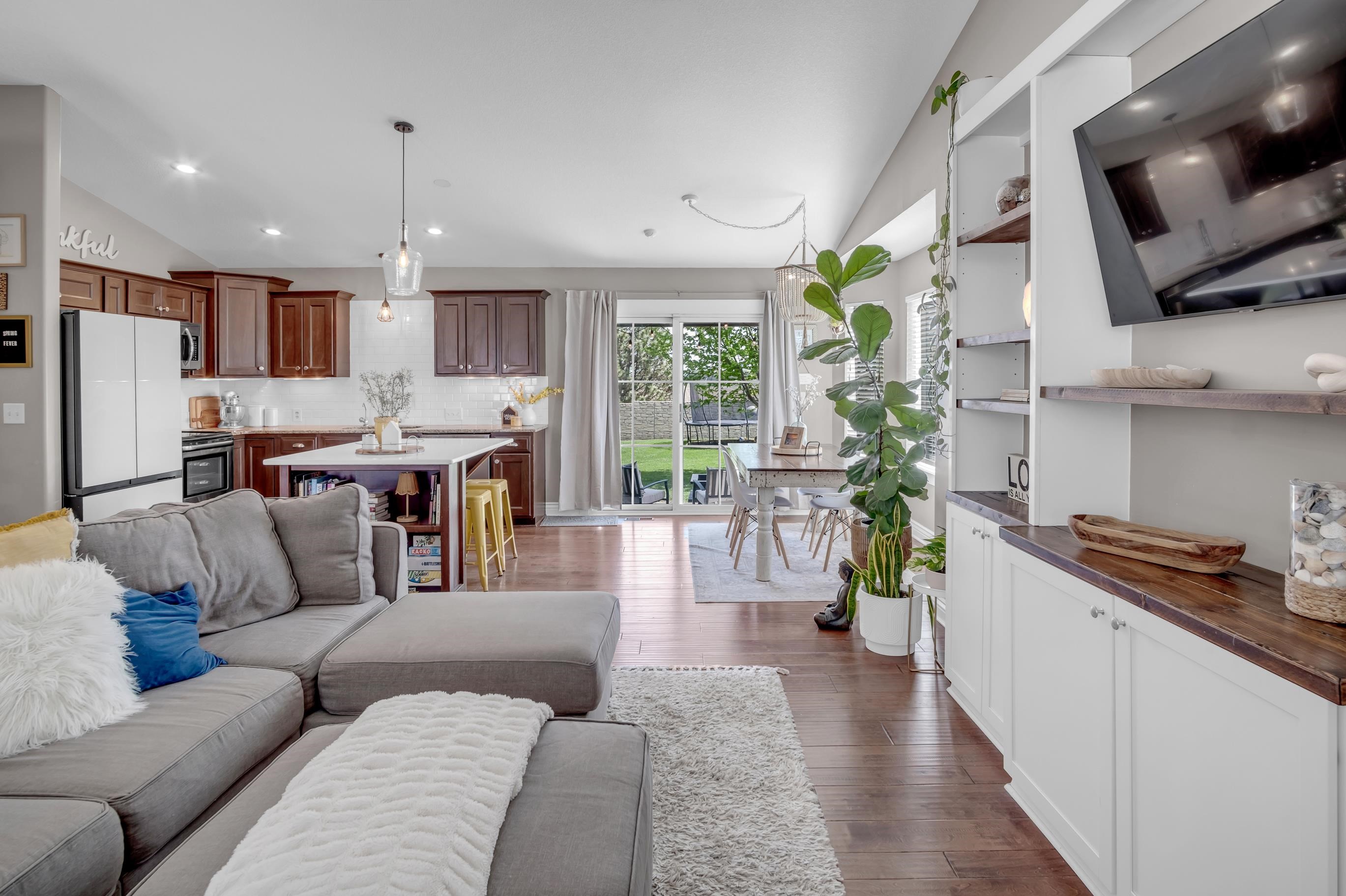 Tucked on a beautifully landscaped corner lot in Sand Creek Station, this well-maintained home offers space, comfort, and an unbeatable location. Mature trees, a lush lawn, a raised garden bed area, and a covered walk-out patio create an inviting outdoor setting, complete with a sprinkler system and irrigation well. Inside, the open layout is filled with natural light and features vaulted ceilings, hardwood floors in the main living and dining areas, and a stylish built-in bookcase/media center that anchors the living room. The kitchen opens to the living space and includes an island, newer appliances, and a layout perfect for gathering and staying connected. A separate main floor laundry room offers additional storage, with washer and dryer included. The primary bedroom features a private ensuite bath with double vanity and nice storage as well as a spacious walk-in closet. The fully finished basement expands your living space with a large rec room, cozy gas fireplace, fourth bedroom, full bath, and generous storage. Additional highlights include a 3-car garage and major updates with a NEW roof, NEW HVAC, and NEW water heater in 2024, along with a water softener and reverse osmosis system. Best of all***NO SPECIAL TAXES! Enjoy all that Sand Creek Station has to offer, including a community pool, clubhouse, nearby golf course, walking paths, and easy access to the hospital, YMCA, shopping, and Hwy 135.