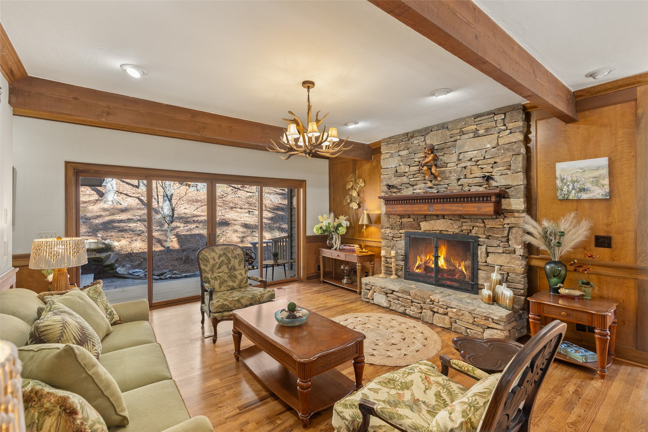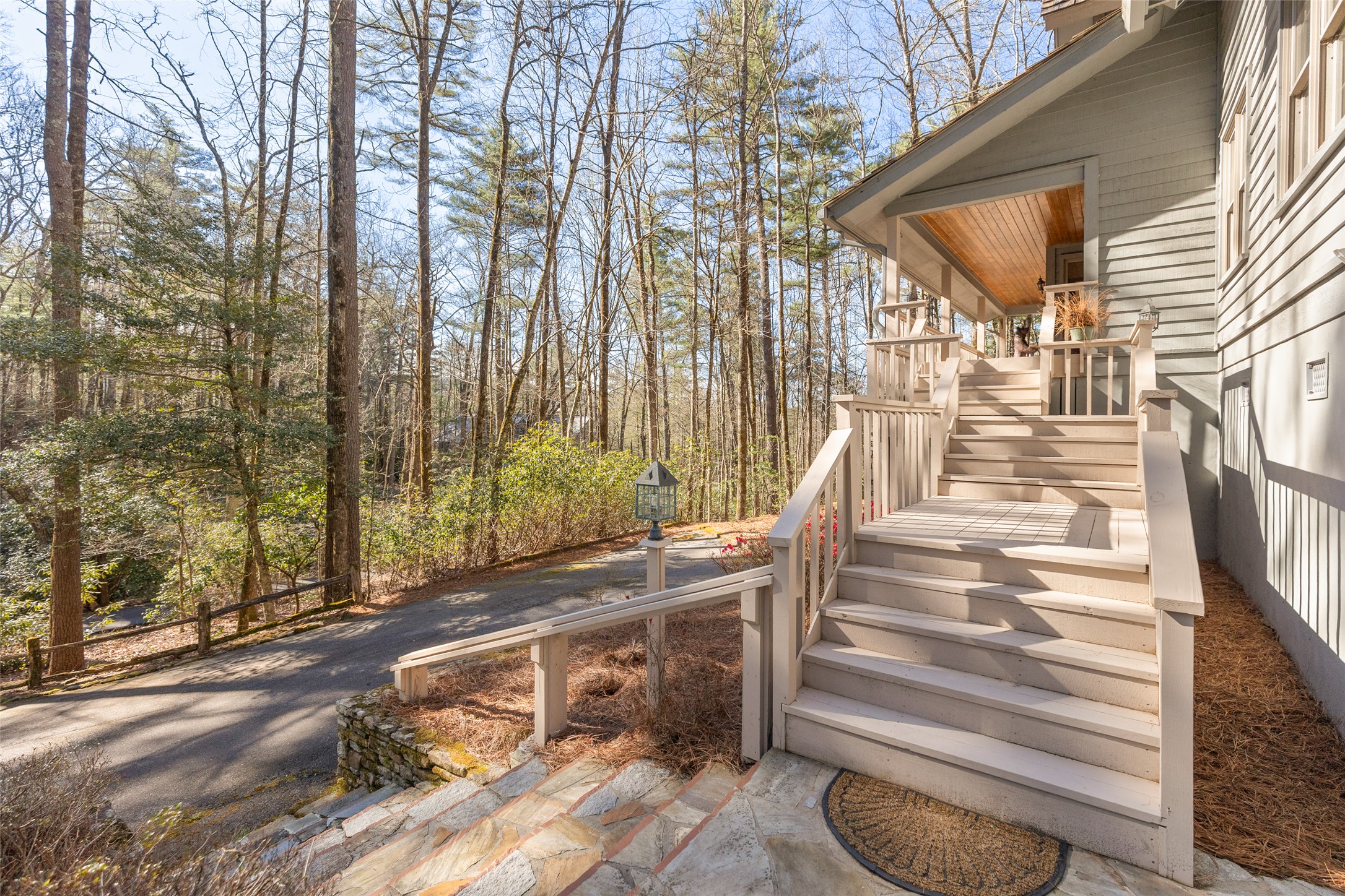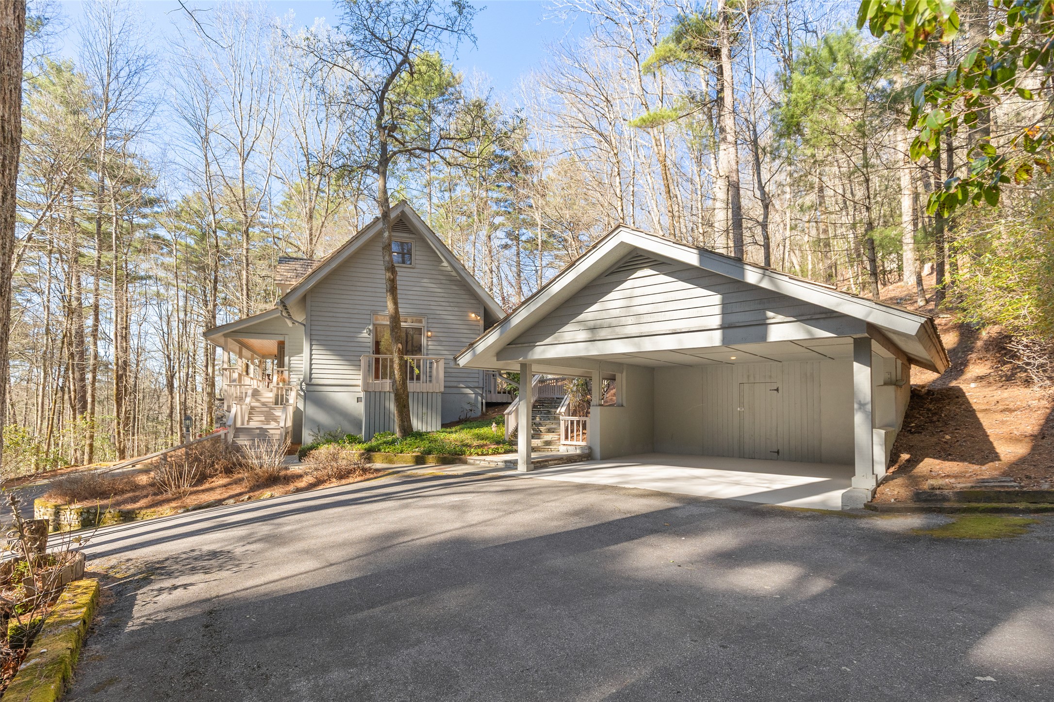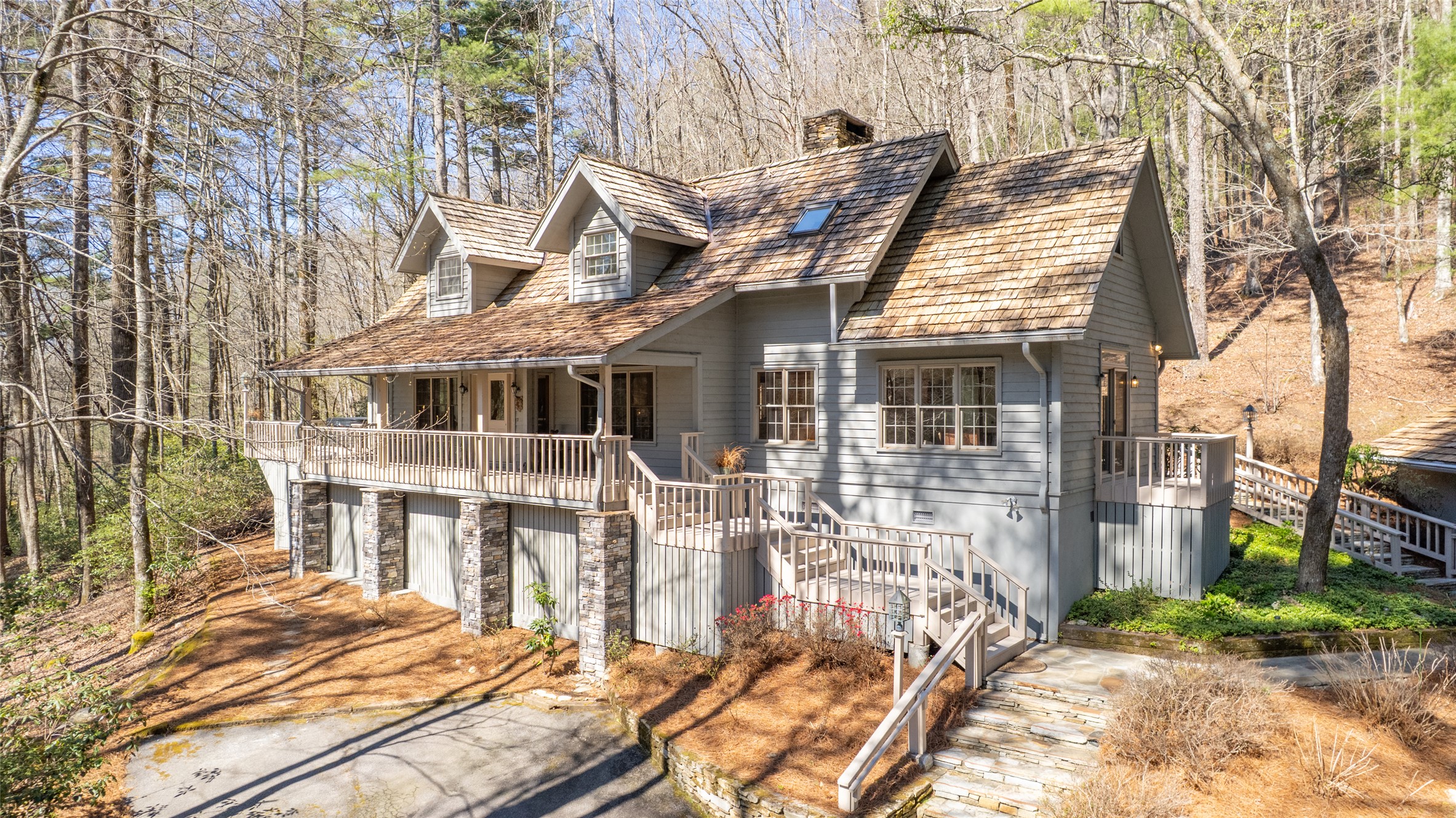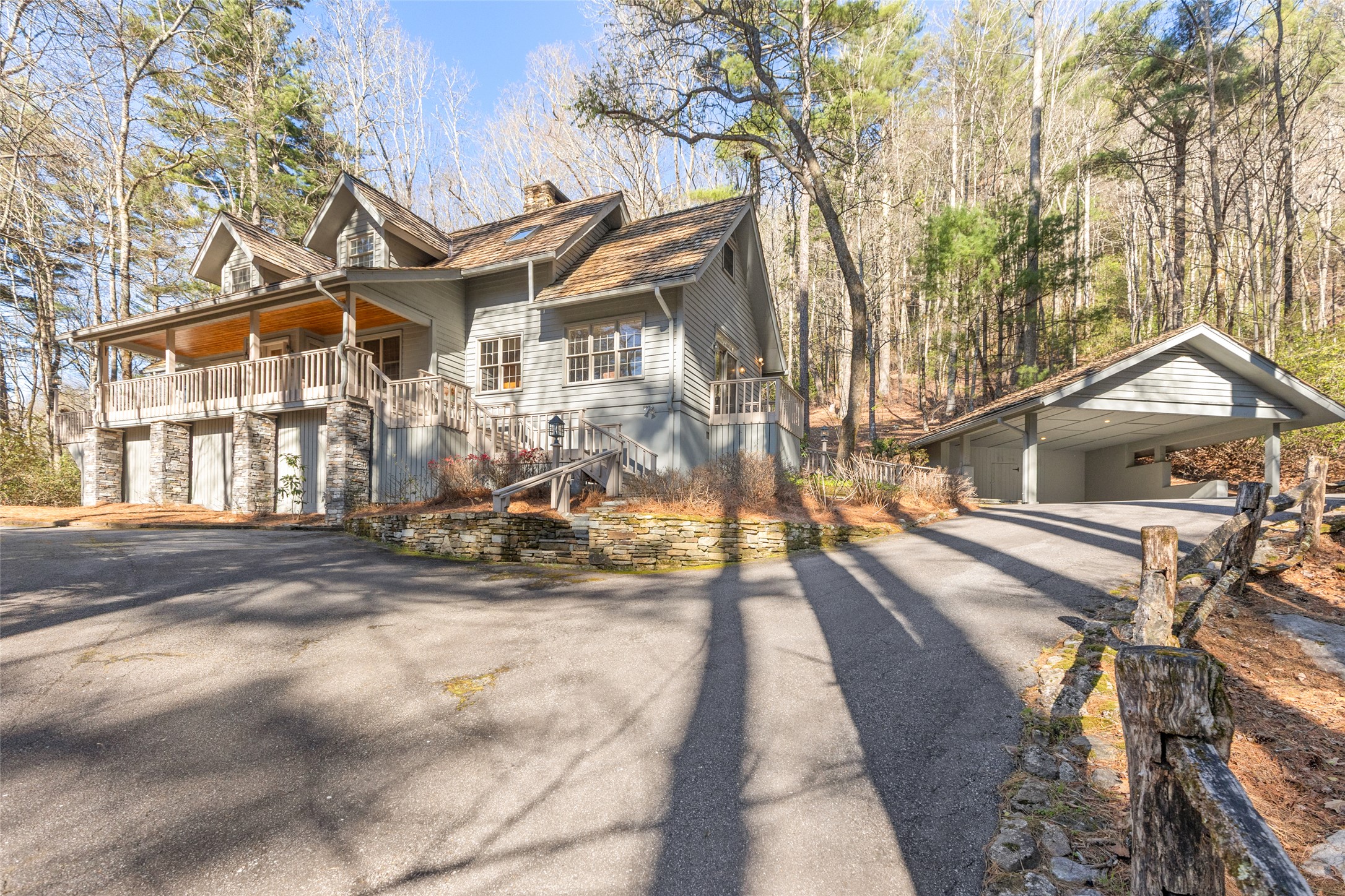 Located in sought-after Cedar Ridge Estates neighborhood, this expansive and inviting home sits on 3.96 private acres, just minutes from the heart of Cashiers. Recently updated, the home features three ensuite bedrooms, a beautifully updated kitchen, renovated bathrooms, and beautiful flooring thru out. The main level offers a spacious primary bedroom, while upper level includes two additional bedrooms ensuite bedrooms- one one with a large bonus room ideal for an office, den or extra sleeping area. In total, the home offers three full bathrooms and a convenient powder room. Enjoy the charming rustic character through out, including striking fireplace and wooden staircase that anchors the entry. The sunny dinning room just off the kitchen opens to a large deck, perfect for outdoor dinning and entertaining. At the rear of the home, a newly updated three-season room provides a peaceful retreat with lush natural surroundings and a dramatic rock face. A 2-car carport and expansive easy-access driveway provides ample parking. set at a cool 3710 feet elevation, this home offers privacy, space, and serenity, along with modern conveniences like fiber optic internet and newly paved neighborhood roads. This beautifully furnished home is being sold with furnishing included, hot tub and generator. Don't miss this opportunity to enjoy mountain living in one of the area's most desirable communities.