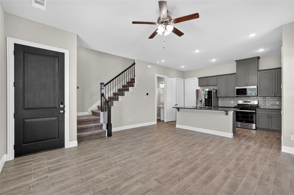 Experience the pinnacle of sophisticated urban living in this pristine end-unit townhome, perfectly positioned to offer the ultimate blend of style and convenience. From the moment you step inside, the extensive wood-look tile flooring and elegant wrought iron spindles set a tone of modern luxury that flows throughout the open-concept floor plan. The chef in your family will love the sleek kitchen showcasing quartz countertops, stainless steel appliances, an island with a breakfast bar, and chic gray cabinetry that perfectly complements the contemporary aesthetic. Rare and highly sought-after, this layout boasts two full primary suites, providing unparalleled flexibility for multi-generational living or a high-end guest retreat. Unwind in the third-floor penthouse-style primary suite, where you can step out onto your massive balcony to enjoy the fresh air and sunset views. Outside your door, the Windermere community features a resort-style lifestyle with access to a sparkling swimming pool, playground, dog park, and greenbelt. Complete with a spacious two-car garage and a prime location near major highways and DFW Airport, this home offers the connected, low-maintenance lifestyle you have been searching for. Take a first-person look at this gorgeous home! Click the Virtual Tour link to see the 3D Tour!