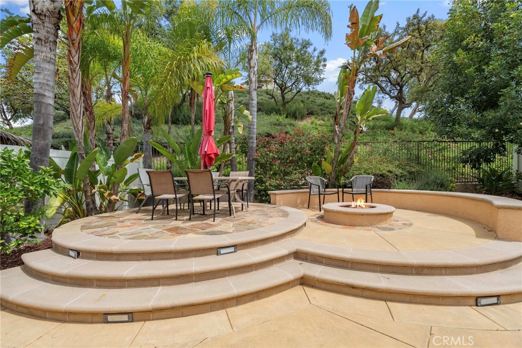 Nestled at the end of a double cul-de-sac in the highly sought-after Las Flores community of Rancho Santa Margarita, this warm, inviting, move-in ready 5-bedroom, 2.5-bath home offers flexible living space with rich hardwood floors, solid wood cabinetry, and updated finishes throughout. From the moment you enter, elevated ceilings and a distinctive octagonal tray ceiling detail set the tone for the charm and elegance found throughout. The bright, inviting open-concept kitchen and family room features granite counters, a beautiful mosaic backsplash, and picturesque views of the backyard oasis and lush greenbelt. A downstairs bedroom provides ideal flex space for a home office or guest room. Upstairs, the primary suite is a true retreat with a private balcony, an updated bath with separate soaker tub and shower, dual sinks, and generous closet space. Three additional bedrooms share an updated hall bath with shower and dual sinks, and the laundry room is conveniently located on the same level. Your private backyard oasis features a spa, built-in BBQ with outdoor kitchen, fire feature, and plenty of room to entertain on your own sunny slope under the California sky. Thoughtfully upgraded throughout, this home includes a whole-house PEX repipe, an American Standard Platinum heating and cooling system with updated ductwork and heat pump, and an EV-ready garage with an electric vehicle charger. The prepaid solar lease transfers to the new owner - no monthly payments, with service and maintenance included - providing energy efficiency and long-term savings. Located in the heart of Las Flores, you're just moments from resort-style community amenities including a Jr. Olympic-sized pool, spa, splash pad, playgrounds, and scenic hiking and biking trails. Residents also enjoy pickleball, tennis, and sport courts, plus year-round community events. A dedicated community path leads directly to top-rated Las Flores TK-8, complete with a newly approved crossing guard at Meandering Trail. Award-winning Tesoro High School is just about a mile away. Welcome home.