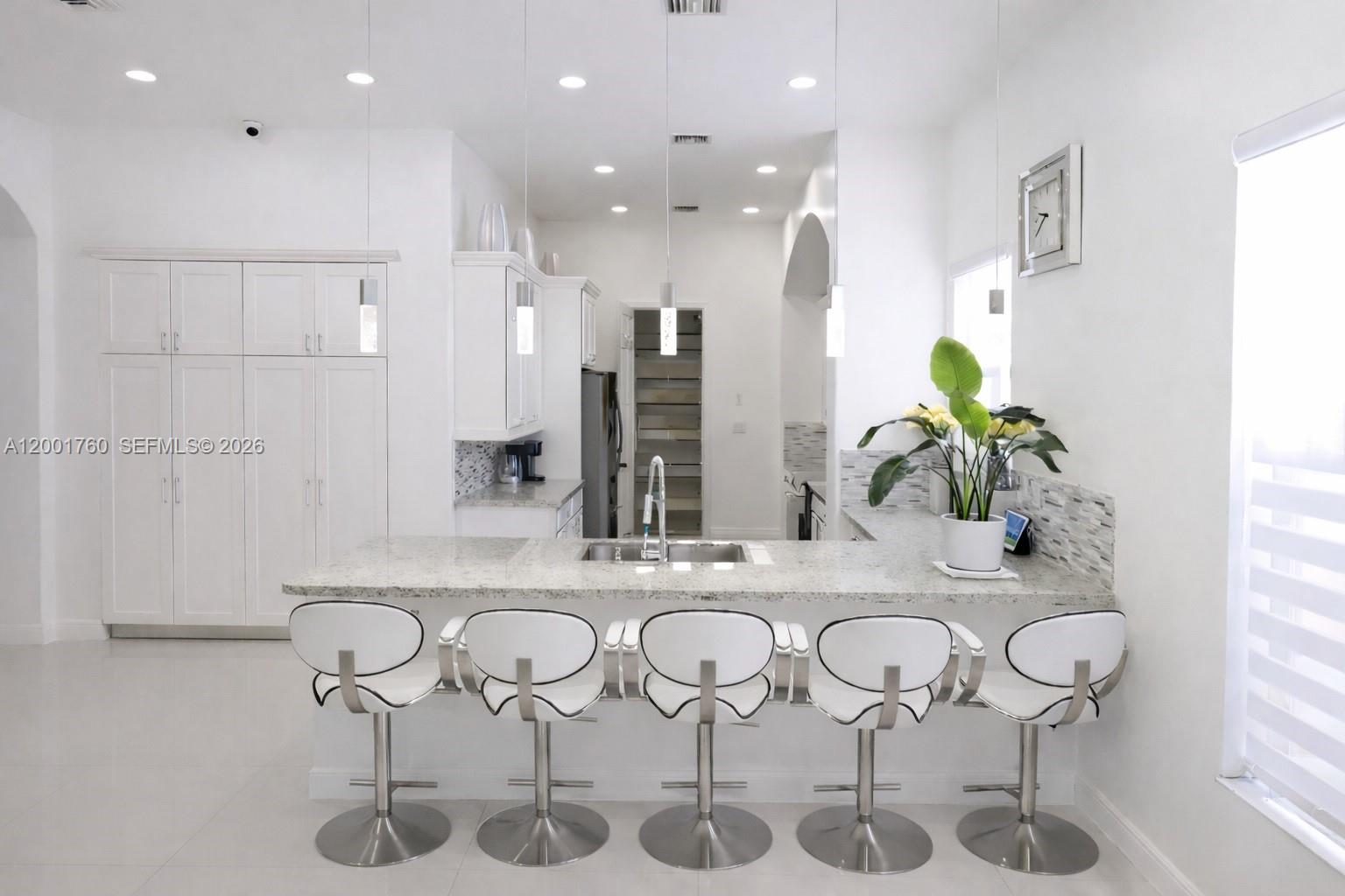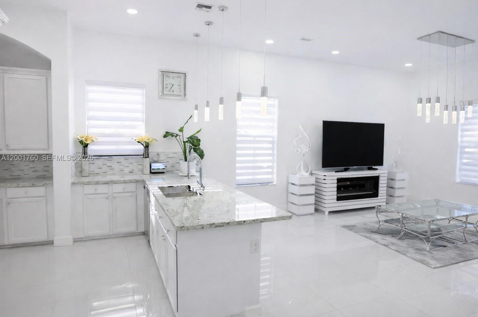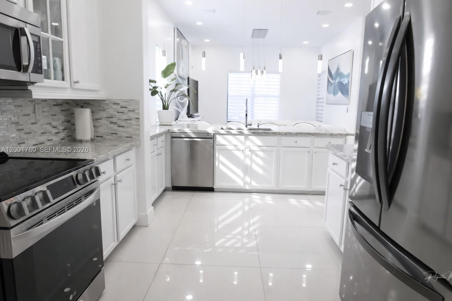 Welcome to Cooper City's premier gated community, Monterra - renowned for its resort-style amenities and exceptional family-friendly lifestyle. This corner-lot Montecito model offers 4 bedrooms, 3 full baths, and a 2-car garage. The open-concept layout features high ceilings, porcelain white flooring, and abundant natural light. The chef's kitchen includes a spacious island with seating for six, ideal for entertaining. The home is impeccably maintained with a fully upgraded garage. Step outside to a private backyard oasis with a heated pool and lush landscaping, offering the ultimate in privacy and outdoor living. Residents enjoy tennis and basketball courts, a state-of-the-art fitness center, parks, and serene walking trails. Located near A-rated schools, shopping, dining, and major highways.