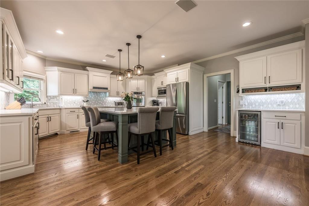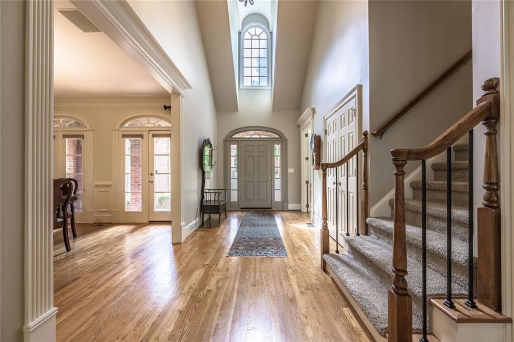 Welcome to 3601 Cape York Trace in Alpharetta, a thoughtfully updated brick home in Glen Abbey with three finished levels, refined custom upgrades, and direct backyard gate access to neighborhood trails, green space, pavilion, and community lake. With 5 bedrooms, 4.5 baths, a main-level primary suite, upstairs bonus room, and finished daylight terrace level with a second kitchen, this home offers the space and flexibility for a multigenerational lifestyle if needed. This executive home is a must see! The covered front porch welcomes you into the expansive main level with soaring ceilings, hardwood floors throughout and includes a two-story foyer, private office with French doors, a separate dining room, and light filled great room plus kitchen and primary owners suite. The impressive luxury kitchen is designed for both everyday living and entertaining. It has stainless appliances, custom cabinetry, a stunning quartz island, beverage center, plus a customized walk-in pantry. The kitchen and breakfast area flow into the light filled two-story great room, where custom built-ins frame the fireplace and create a polished focal point. Not to be missed is the renovated laundry room on the main which adds function with built-in cabinetry, a multifunction sink area with small dog wash, and exterior access to the driveway. The main-level spacious primary suite, with sitting area, is tucked away for privacy and luxury touches including a classic feature wall, custom bath including soaking tub, separate shower, upscale cabinetry and well designed closet. Hardwood floors extend to the upstairs hall and bedrooms. The three upstairs bedrooms have walk in closets, two share a Jack 'n Jill bath and one has en-suite bath. A bonus room connected to one bedroom is versatile as a sitting room or teen suite. An added plus is the walk in attic storage! Storage abounds in this home. The terrace level is open and well designed for relaxing and entertaining. In addition to a full kitchen, it has bedroom, full bath, second family room, game room, fitness area, media room, and generous storage. Outdoor living spaces are just as impressive! The remodeled deck with under-decking has a covered patio below it, an additional custom patio, fenced backyard, and is professionally landscaped designed for year-round enjoyment. Come enjoy the Glen Abbey lifestyle with including multiple tennis courts, pickleball, community pool, walking trails, community lake, clubhouse with fitness center and on site community manager. Coveted location in a top Fulton County school district and convenient access to Avalon, downtown Alpharetta and GA 400. This is a rare opportunity to own a move-in ready luxury home in one of Alpharetta's most established amenity-rich communities.