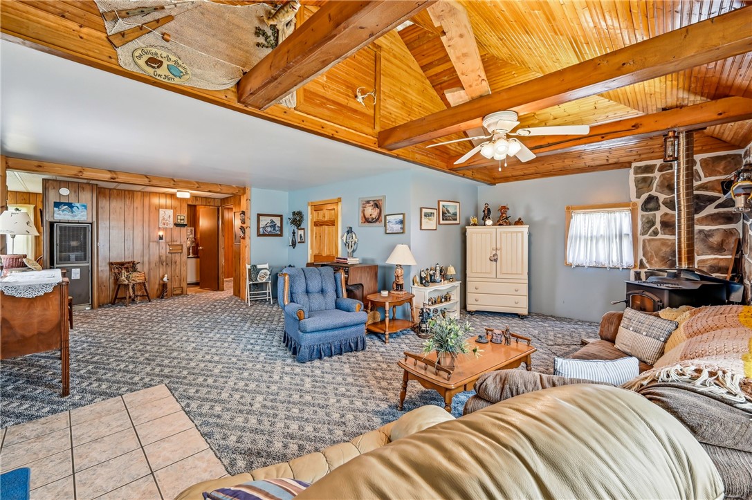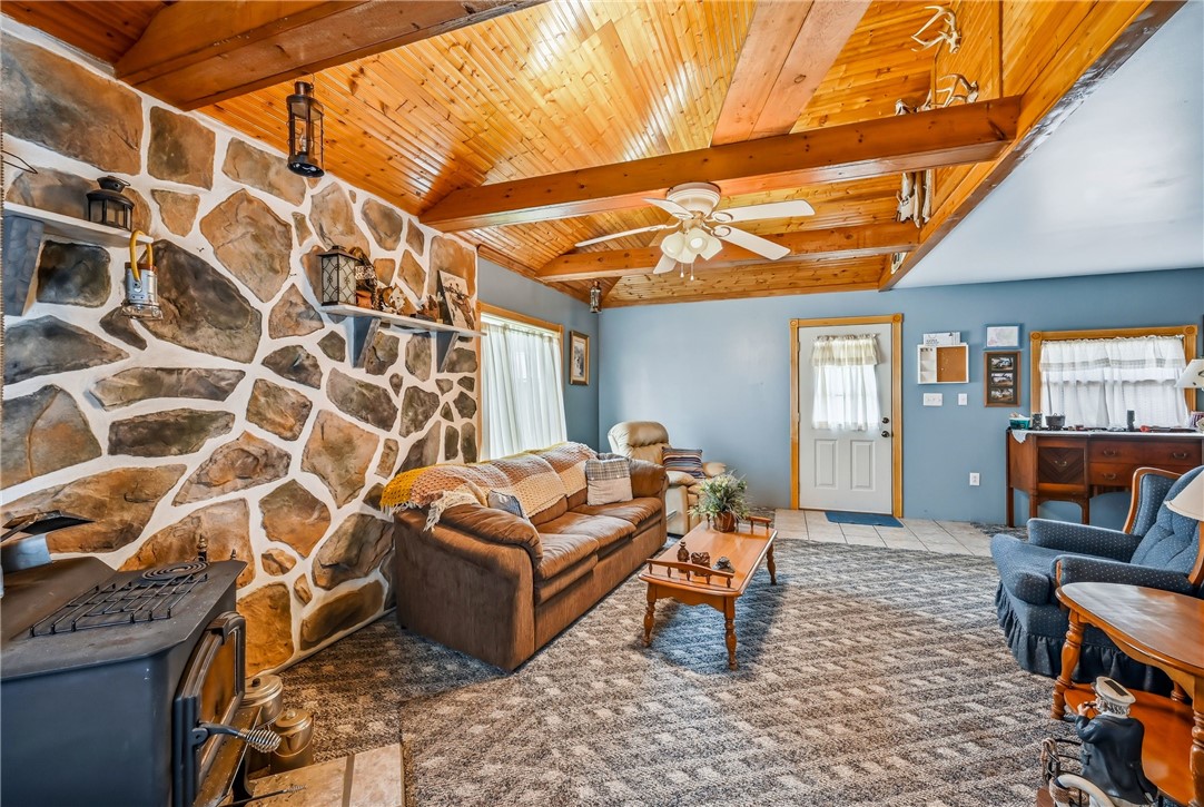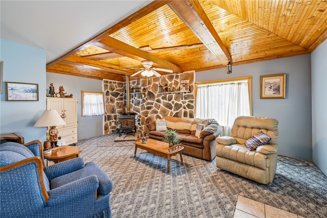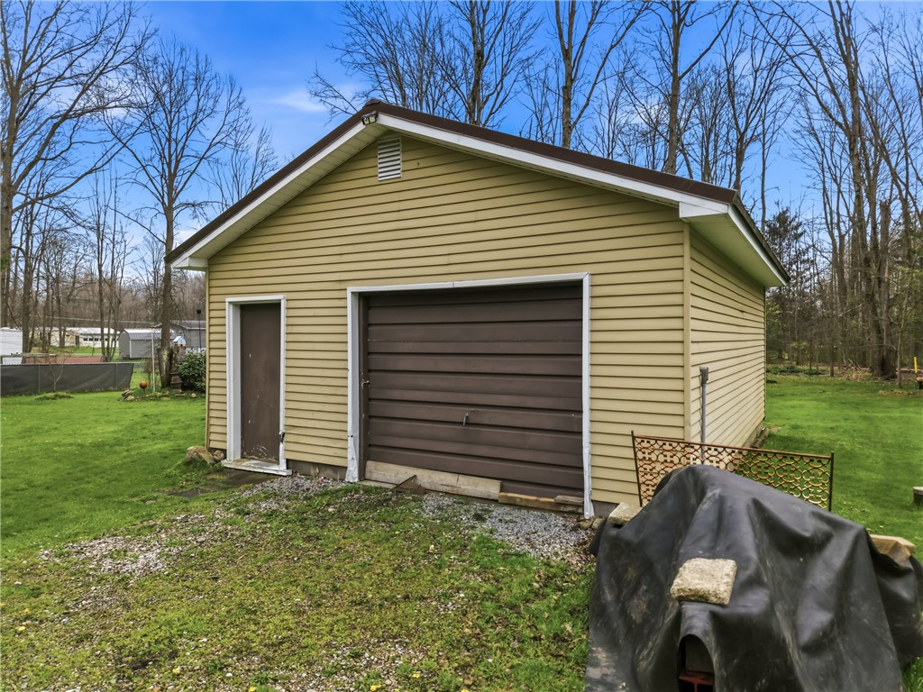 Lake Life is waiting! Unique opportunity this home hosts 2 bedrooms, the primary suite offers a half bath. Bonus features are the 2002 family room addition with high knotty pine ceiling & wood burning stove that expands the living space. Additionally a large 1st floor laundry room with bonus step in shower. Rounding out the home is the living room, kitchen, 2nd bedroom and full bathroom with tub/shower combo. Perfect for all stages of life, this home offers a gradual-entry front ramp and a generous laundry area. The step-in shower located in the laundry room is an ideal secondary bath option, providing easy access after a day of fishing or boating. Getaway retreat just 1 mile from Pymatuning Lake, 1.5 miles from Espyville boat launch. Outdoor lovers delight- hunting, fishing, water activities, wineries, & more with an oversized single car garage & bonus shed to store all your outdoor toys! The serene property drive is located on Alden & the back of the property has frontage on Ross. Lastly- all furniture and appliances remain for convenience & ease for a turn key retreat!