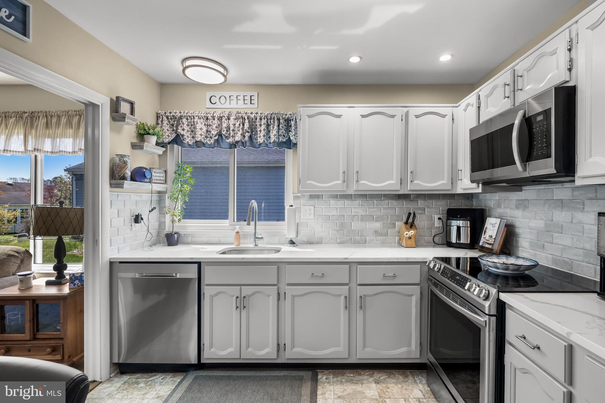 Move right in to this beautifully updated Ardmore model in one of South Jersey's most desirable 55+ communities - Leisuretowne. This bright, open 2-bedroom, 2-bath home offers approximately 1,400 sq ft of comfortable, thoughtfully upgraded living space. Since 2019 the property has been extensively renovated, including a new roof, new gutters, new garage door, heat pump, water heater, replacement windows in the kitchen and bedrooms, new flooring throughout, and fresh interior and exterior paint. The kitchen updates include gorgeous quartz countertops and a stylish tile backsplash - ideal for entertaining or everyday living. An attached garage provides convenient parking and storage. Leisuretowne delivers an exceptional active-adult lifestyle with two pools, multiple clubhouses, a fitness center, library, tennis courts, putting green, driving range, shuffleboard courts, picnic areas, dozens of clubs and activities, transportation services, and on-site 24/7 security. Easy access to shopping and dining, and only about 45 minutes to the Jersey Shore. Low-maintenance living with resort-style amenities - schedule your showing today!