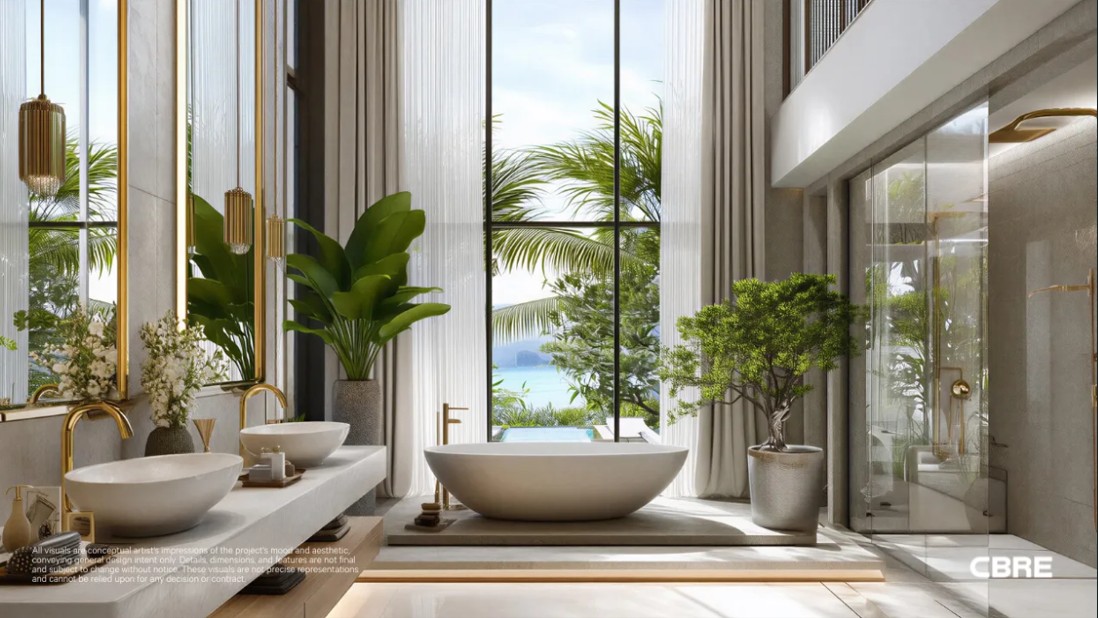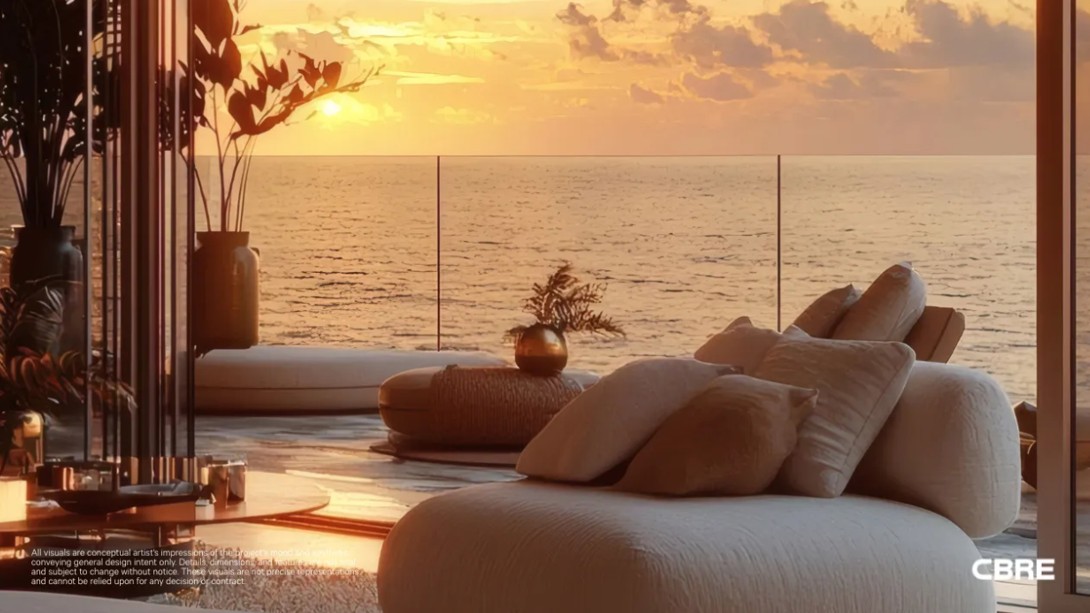 Spanning an expansive layout, the residence has been thoughtfully curated to balance contemporary comfort with a resort‑style atmosphere. Floor‑to‑ceiling glass doors invite natural light to flood the living spaces while seamlessly connecting the interior to the breathtaking seascape beyond. Every sunrise and sunset becomes a living artwork, enjoyed from the comfort of your own home.
