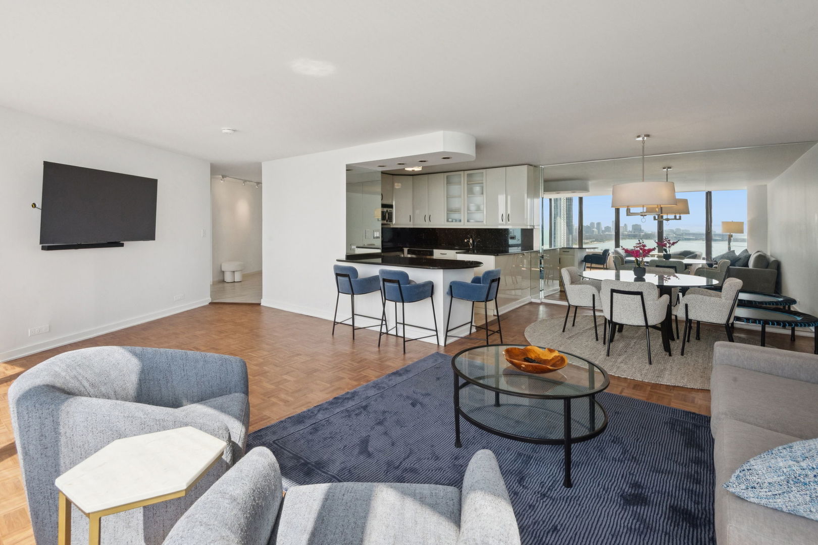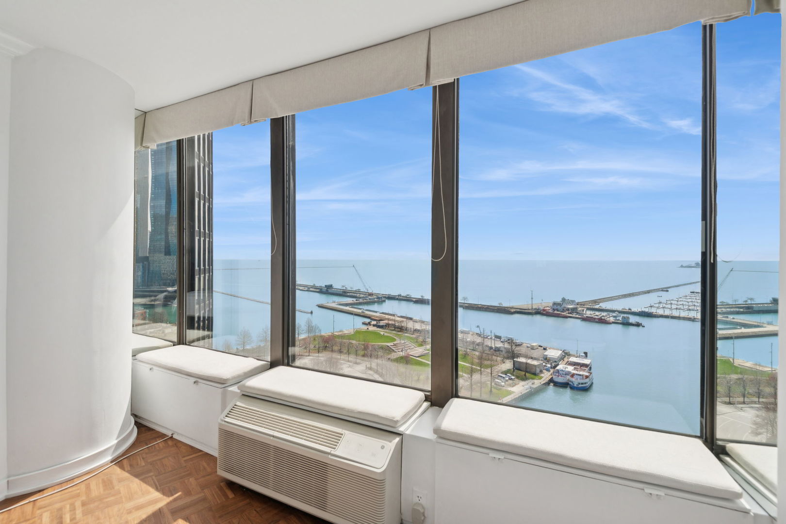 Most beautiful & elegantly upgraded 1 bedroom at the iconic Lake Point Tower, the only residential building east of the drive. Unobstructed & expansive views of dazzling Lake, Harbor, City with its incredible architecture and the most magnificent South, West & East views, Freshly painted with new window shades, new wood floors in Living room, newer ceramic floors in foyer, bathroom and kitchen, carpet in bedroom. Top of the line stainless steel appliances in Kitchen, beautiful Granit counter tops, custom soft close cabinets. Marble Bathroom. Large Master Bedroom with French Doors, spacious walk in closet. Elegant light fixtures throughout. In unit Washer/Dryer room. Newer HVAC units. updated water heaters. Lake Point Tower offers 5 star amenities; 24 hour Doorman, 2 pools, 2.5 acre park, racket ball court, children's play ground, community room, work out room, indoor children's play room, storage, dry cleaners, beauty salon, bike room & a lot more. A must see