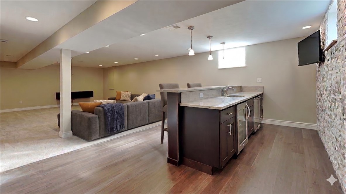 Simply Splendid In Seven Fields! This beautifully appointed 3-bedroom, 2.5-bath Colonial in the highly sought-after Northridge community. This inviting home perfectly blends elegant design with everyday comfort. The two-story entry welcomes you with bright, airy spaces and gorgeous hardwood flooring that flows seamlessly throughout much of the main level. To your left, elegant French doors open to a private den, while the formal dining room - accented with detailed moldings - sets the stage for stylish entertaining. The heart of the home is the spectacular eat-in kitchen, boasting granite countertops, a custom tile backsplash, glass-front cabinetry, and a gas cooktop. Just steps away, gather in the sunken family room, highlighted by a soaring vaulted ceiling and a cozy fireplace. Enjoy the convenience of a main-level primary suite. This spacious retreat features two walk-in closets and a luxurious en-suite bath with a dual-bowl vanity, a custom tile shower, and a relaxing soaking tub with a tile surround. A convenient powder room with a pedestal sink and a main-level laundry room with washer and dryer included complete the main level. A beautiful turned staircase leads to the upper level, where a versatile loft overlooks the family room. This level also offers two generously sized bedrooms and a full bath equipped with its own dual-bowl vanity. Downstairs, the expansive lower-level game room is an entertainer's dream! It features modern LVP flooring in the bar area and a magnificent granite-topped wet bar complete with built-in beverage and wine coolers. Step outside to your personal summer oasis: a spectacular two-tier deck with awning and a gas grill. Enjoy peaceful privacy on your 0.56-acre lot, as the rear yard backs directly onto a serene, wooded common area. For added peace of mind, the home also features an updated roof and an updated HVAC system. Situated in Butler County, this location offers wonderful amenities. The Borough of Seven Fields features a main park with a community center, an outdoor pool, sports courts, and playgrounds, while the Northridge neighborhood offers its own dedicated parklet. Ultra-convenient access to an abundance of shopping, dining, and entertainment options is offered and the area is served by the Seneca Valley School District.
