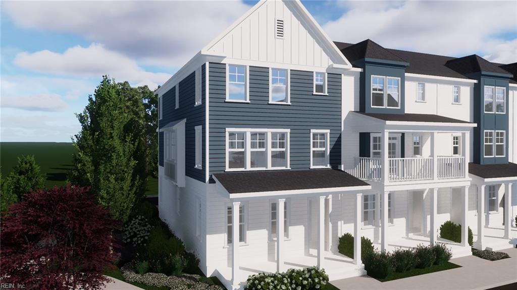 Home for holidays! Coveted award-winning builder unveils newest neighborhood with sophisticated row homes and upgrades galore! 10' midlevel ceilings, 9' other floors, oversized windows, and extensive hardwood flooring. First-floor bedroom w/ensuite bath (opt. kitchenette) - ideal for guests or multi-generational living. Midlevel seamlessly connecting Dining and Great Room w/fireplace, creating elegant space for entertaining extending to Covered Screened porch overlooking tree line. Chef's kitchen w/10' island, quartz counters, Custom kitchen hood, & GE Cafe appliance package. Luxurious primary retreat w/two custom closets, spa bath oversized tiled shower, dual heads & large niche, dual vanities, and private water closet. Large laundry room. Secondary petite suite w/huge closet and ensuite bath. Nat. Gas Tankless water heater and 2 car garage. Professional ground and management services. Minutes to Greenbrier. Sales center 910 Bernard Ln. Chesapeake S/S 12-4! Inquire for low rate loan!
