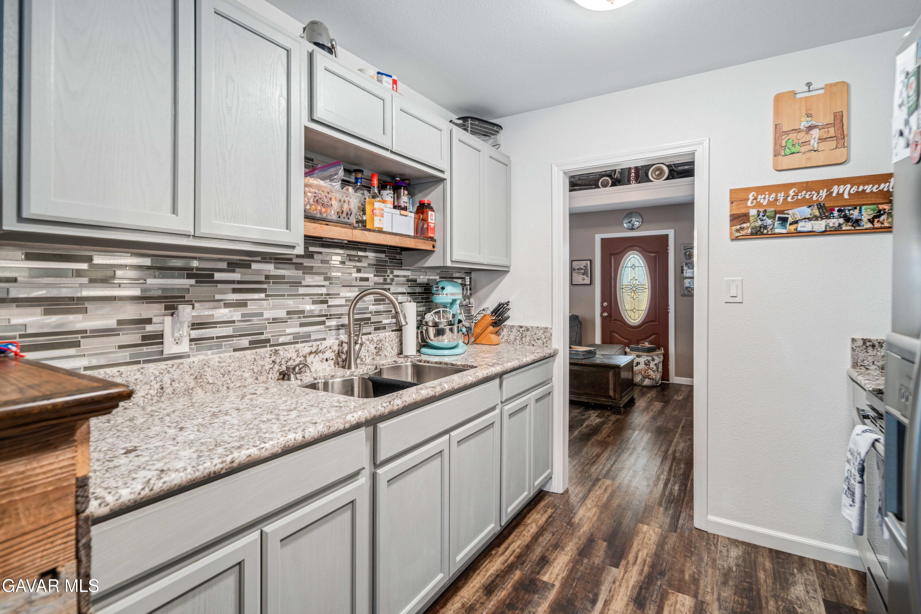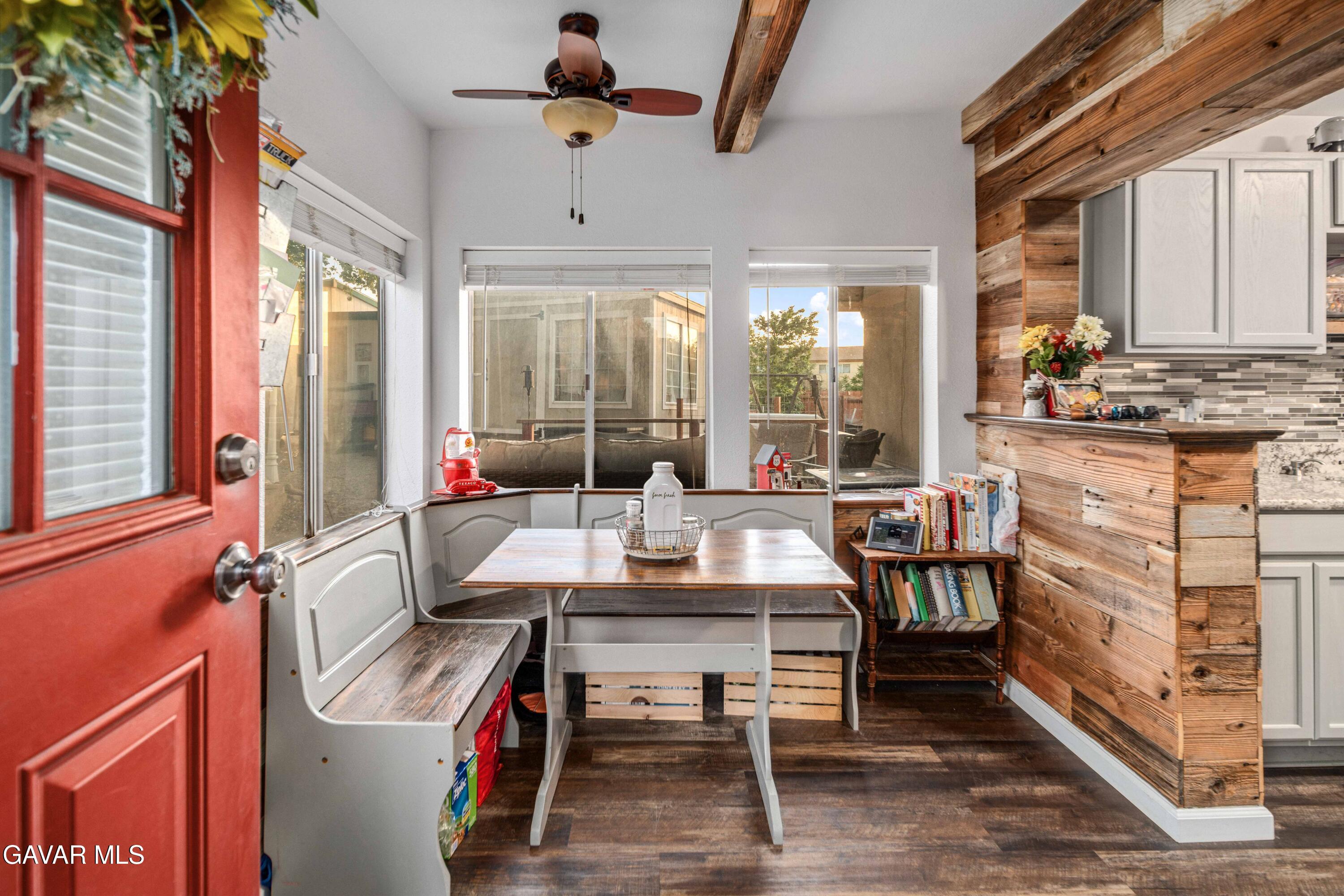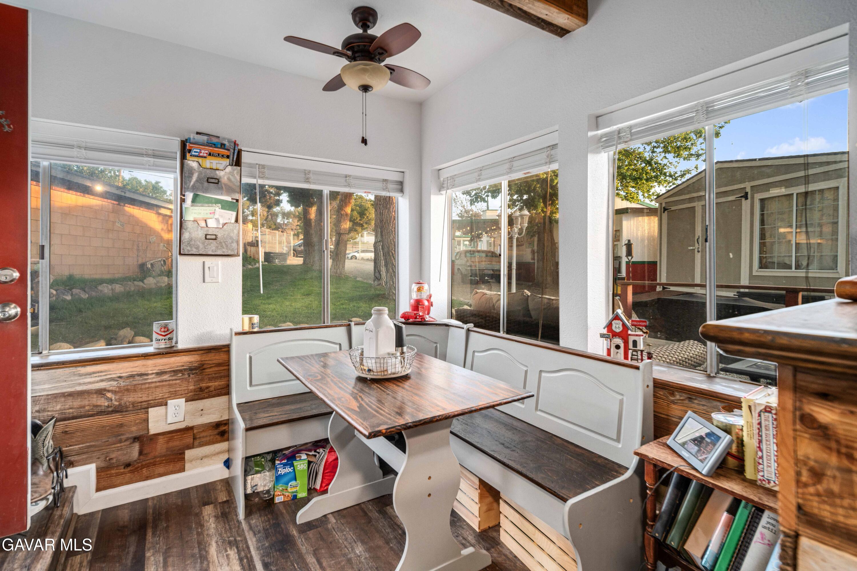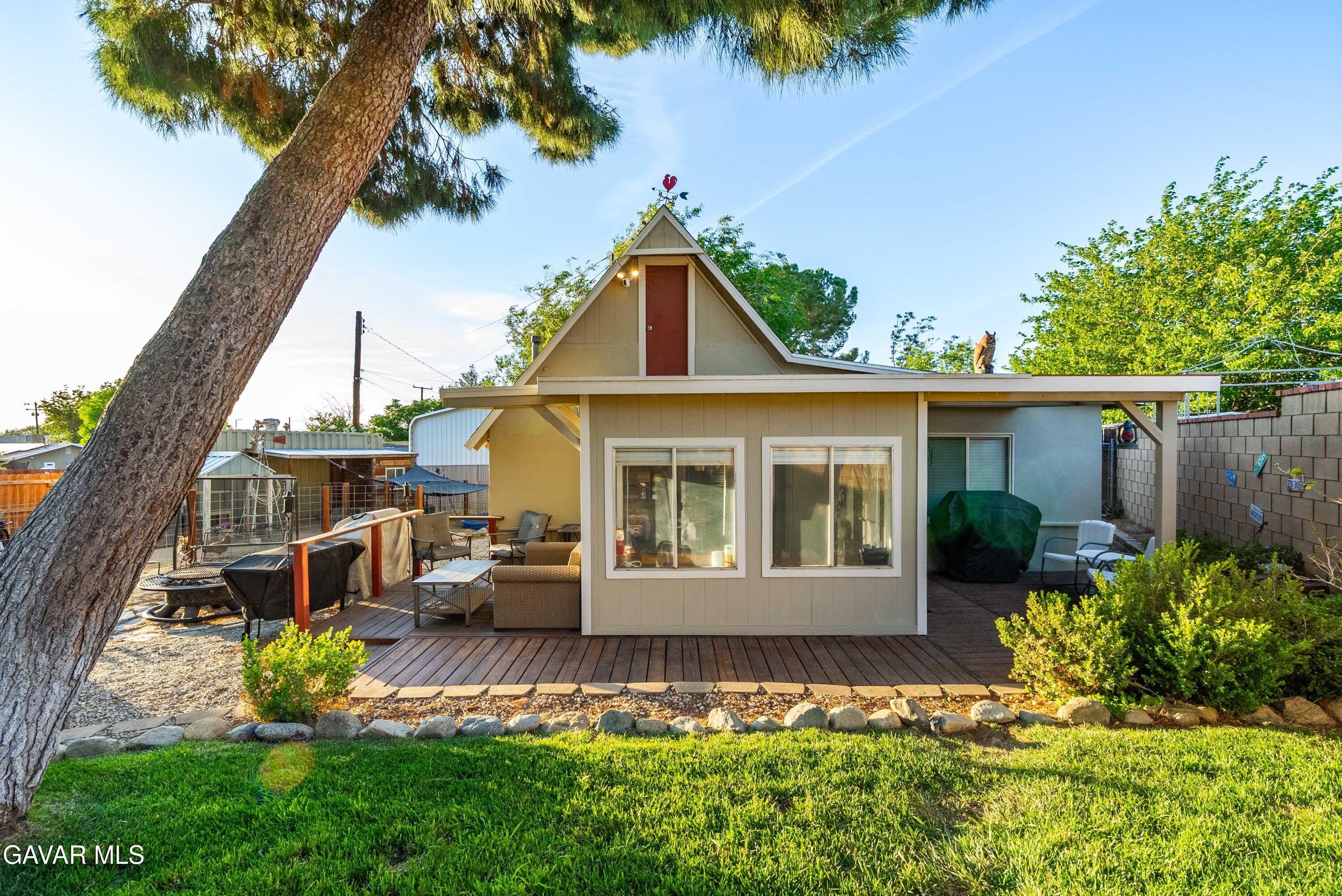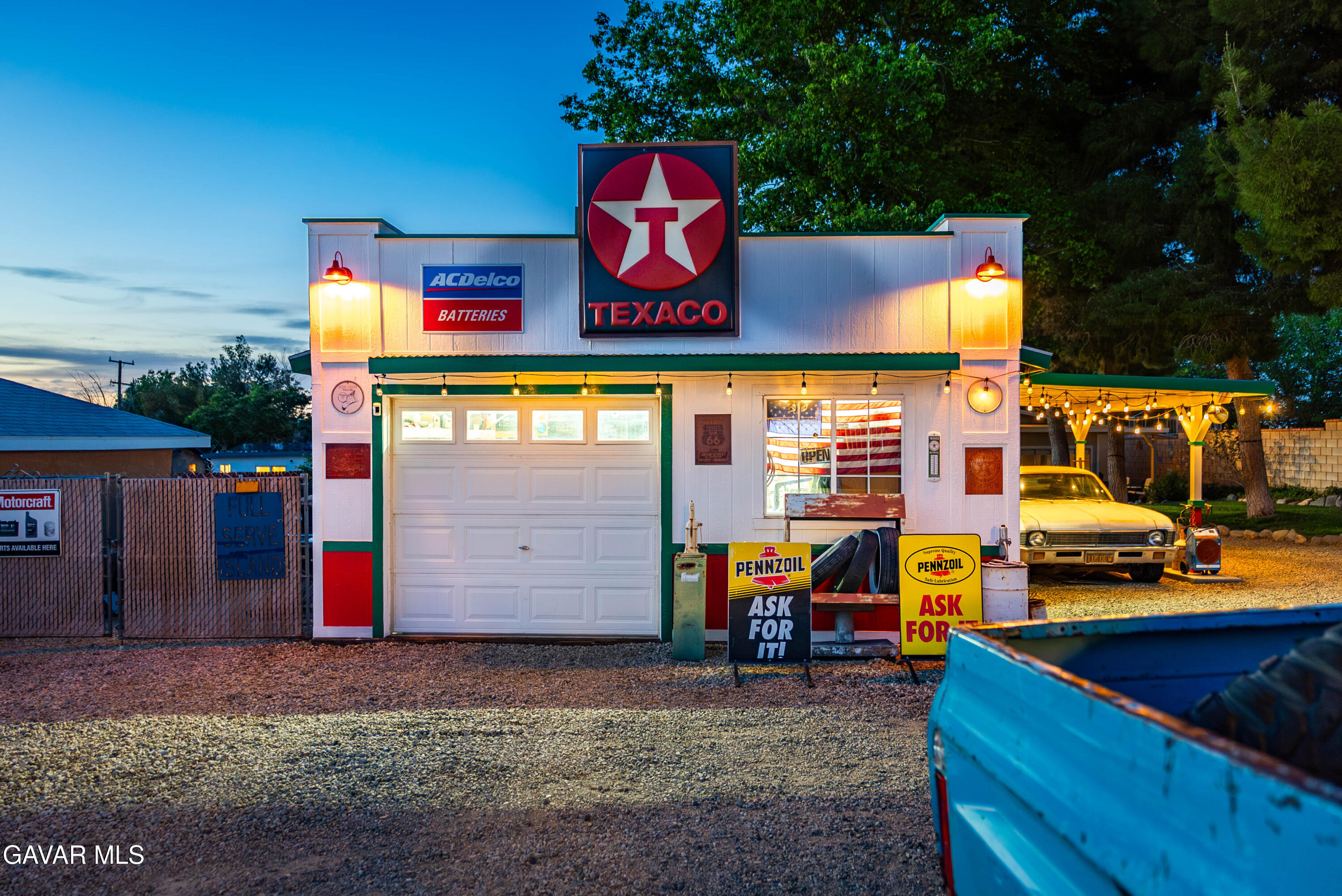 Now is the chance to live in one of the most unique homes, known as the ''Gas Station House'' in the heart of Quartz Hill! This awesome, updated 1-bedroom, 1-bathroom home is situated on .24 acres and within walking distance of the quaint town of Quartz Hill. As you approach the home, the intriguing vision of an early-1900s-era gas station stands out, with vintage yard art, signs, and a gas pump. The custom-built A-frame-style home greets you with a walkway and front porch. Step inside to appreciate some of the upgraded features, including LVP flooring, recessed lighting, updated plumbing, 2 split-units for efficient heating and cooling, and ceiling fans throughout. The kitchen offers granite countertops, multiple cabinets, and stainless steel appliances, including a refrigerator, and is adjacent to the dining room. The living room feels cozy yet has a vaulted ceiling offering plenty of natural lighting, and a ceiling fan. The bathroom is updated with modern features of a custom tile shower/tub enclosure and a pedestal sink. The bedroom includes neutral-colored carpet and a ceiling fan. The property offers RV access, a Connex unit, gated animal quarters featuring two pens one of which is insulated and has two windows, a shed that has been remodeled, and a detached garage and bar area with 50 amp for RV and 220V. Conveniently located near schools, a park, restaurants, shopping, and amenities. Schedule an appointment to view this home today!